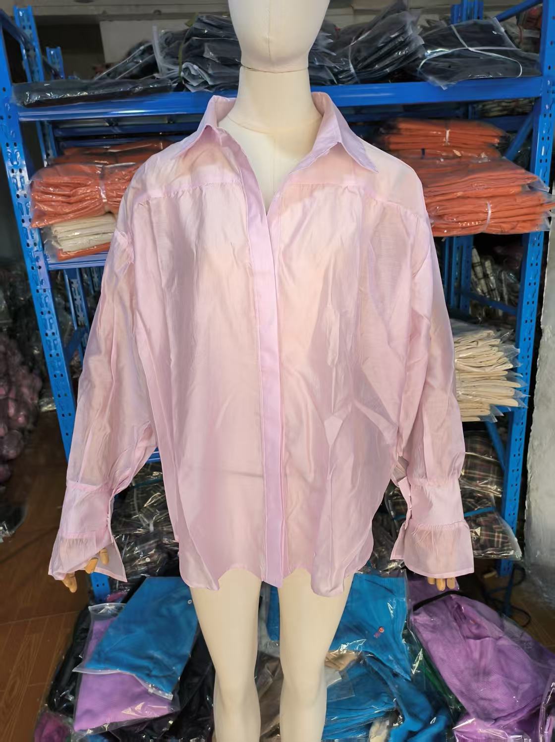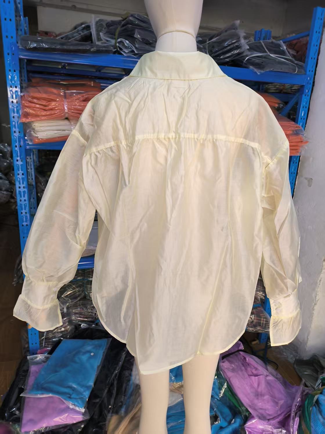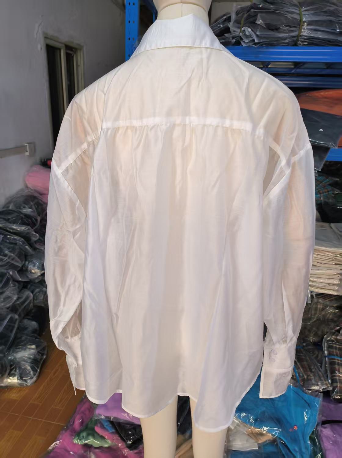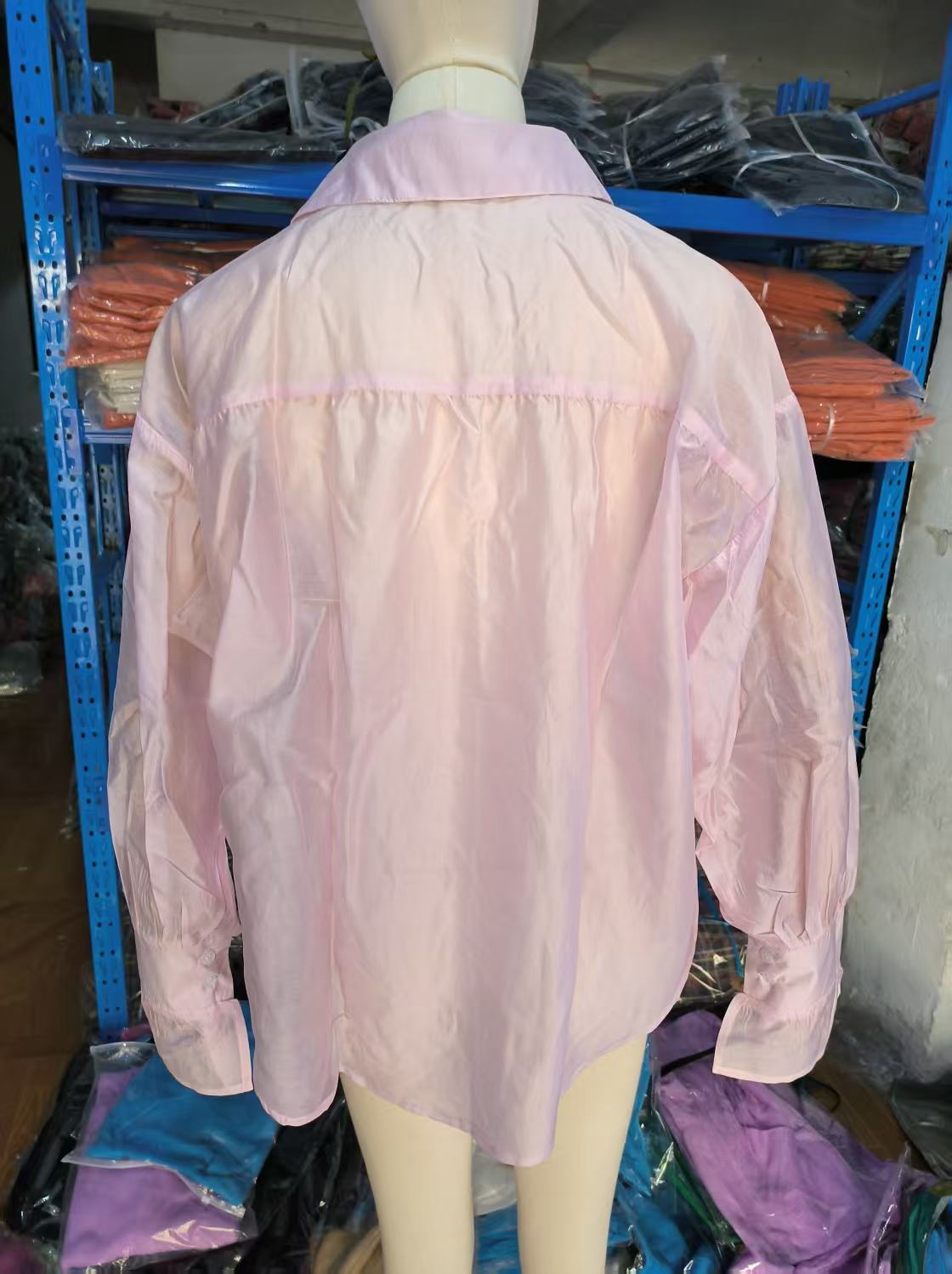 Ropa Europea y Americana 2024 Otoño Nueva Moda Elegante Suelta Solapa Color Puro Versátil Camisa de Manga Larga Tops de Mujer