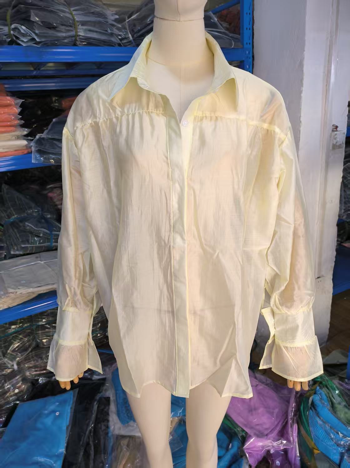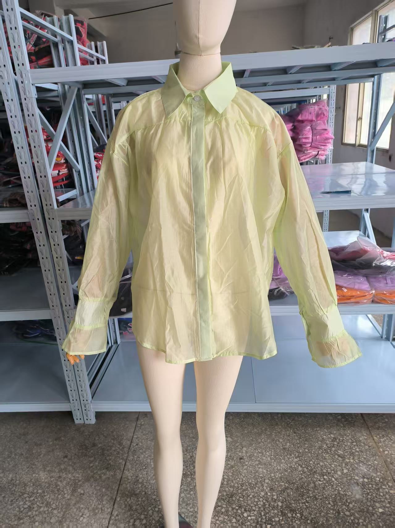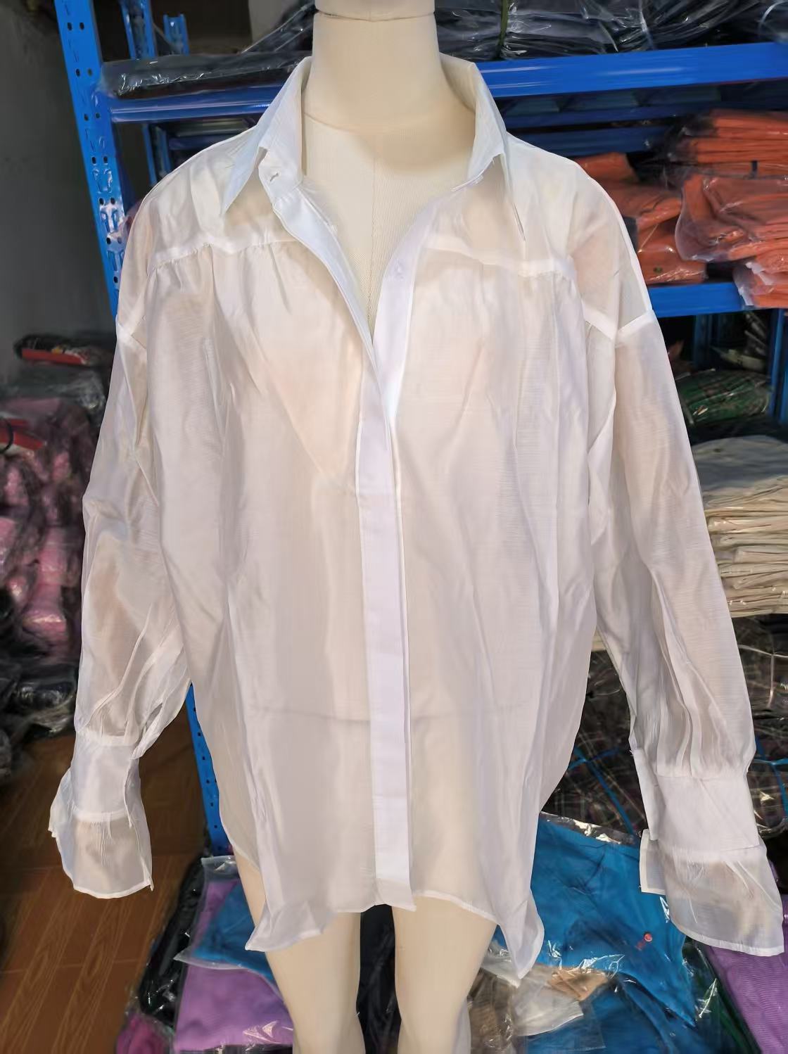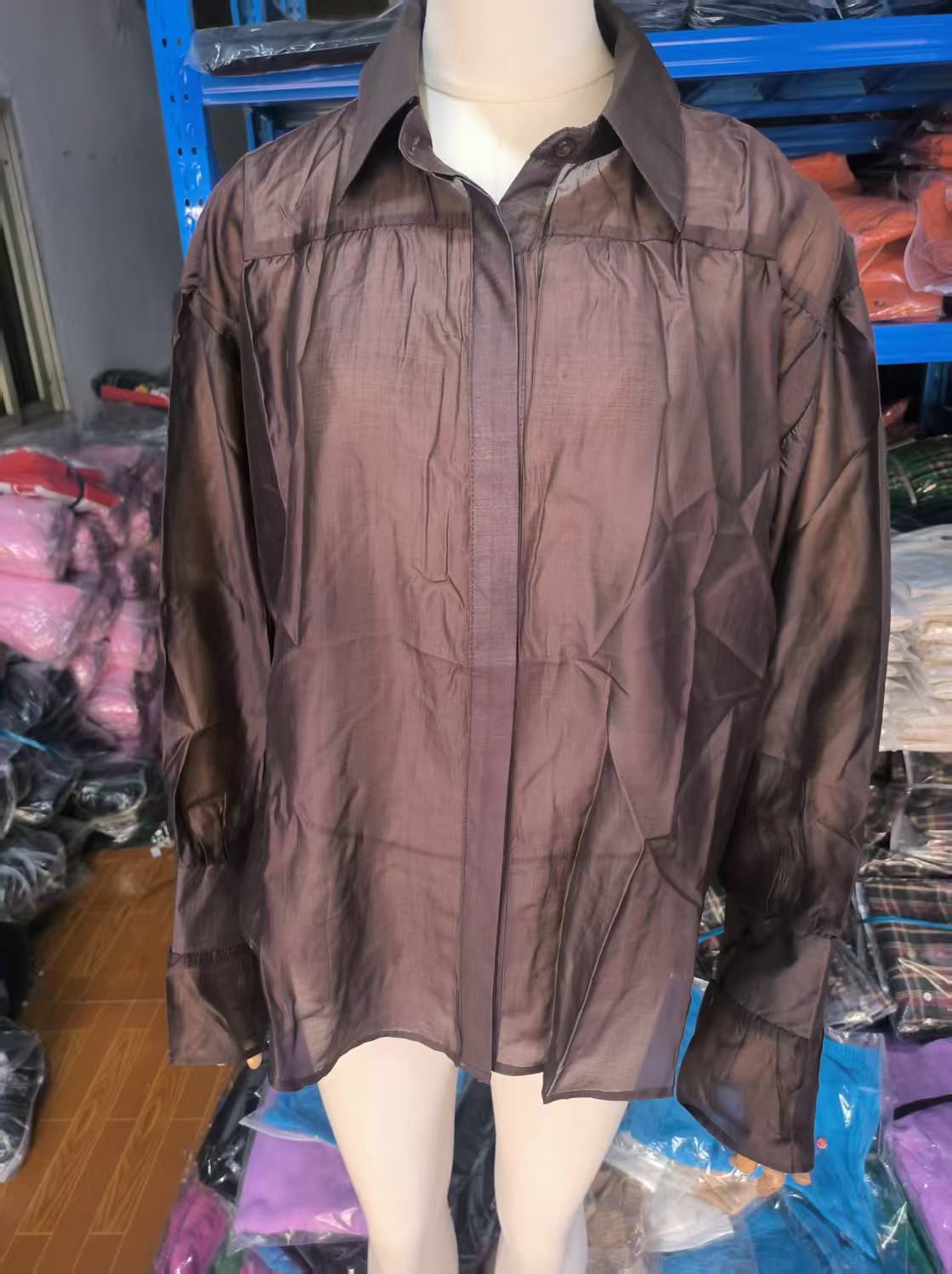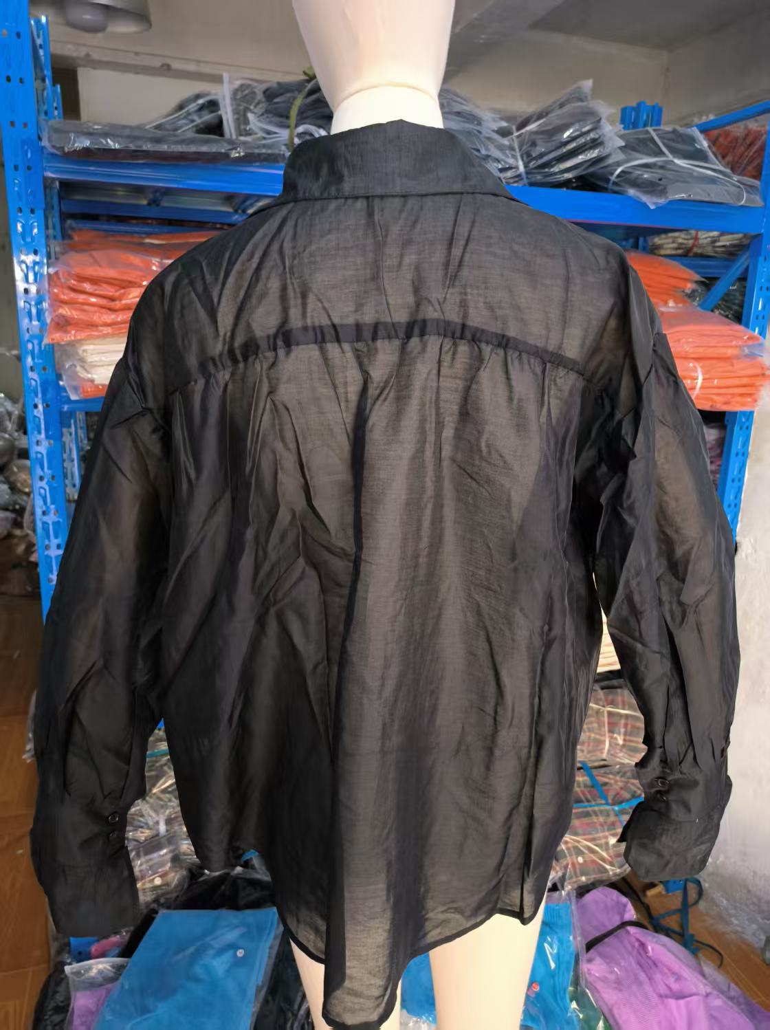 Ropa Europea y Americana 2024 Otoño Nueva Moda Elegante Suelta Solapa Color Puro Versátil Camisa de Manga Larga Tops de Mujer