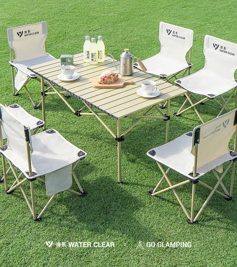 Beige extended long table + white extended folding chair * 6 + [seven-piece set of full storage bag]✓