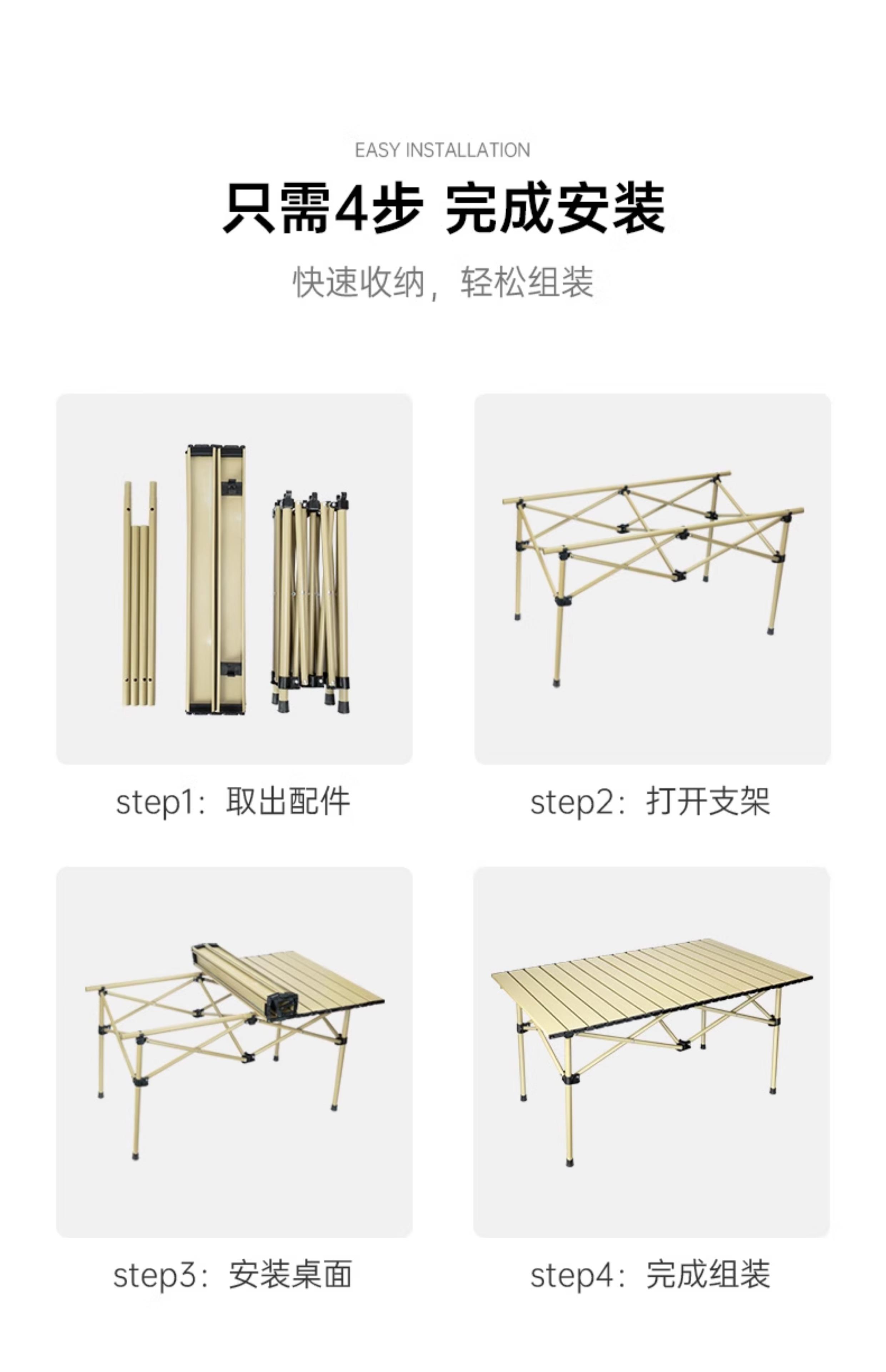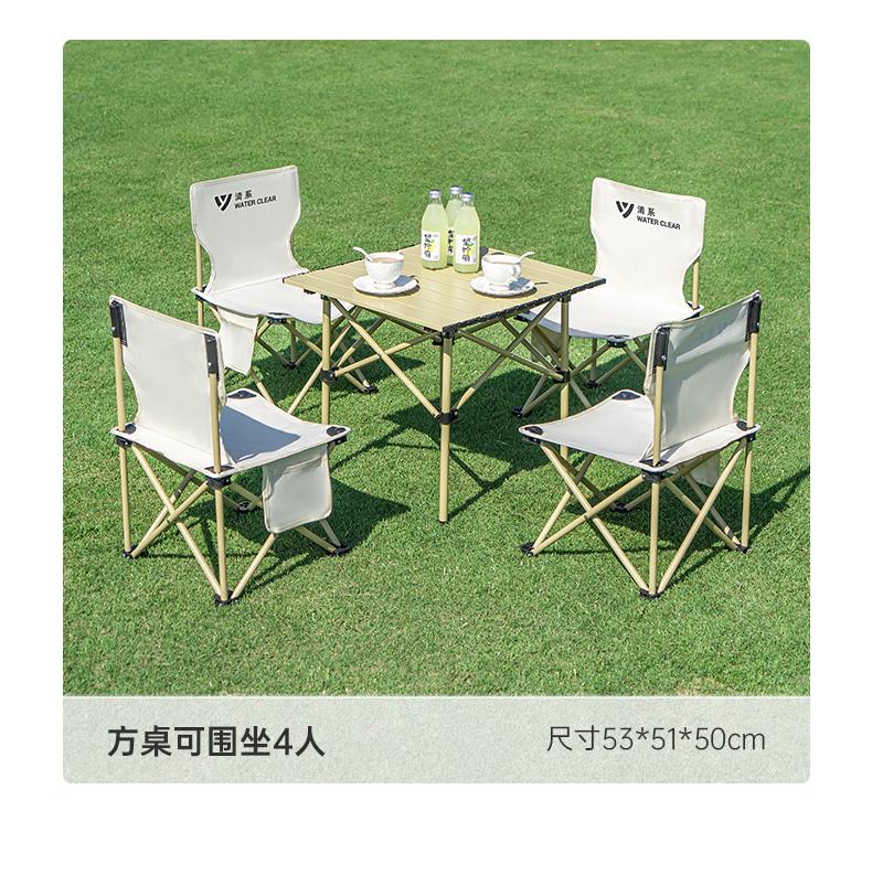 Beige extended long table + white extended folding chair * 4 + [five-piece set of full storage bag]✓