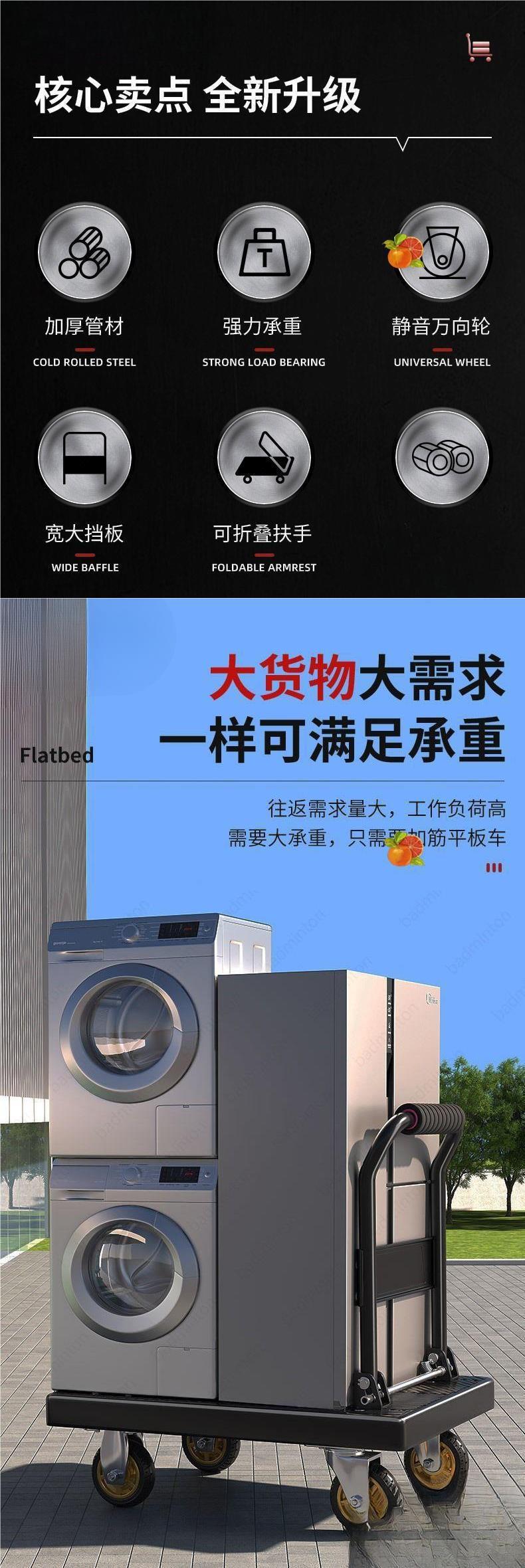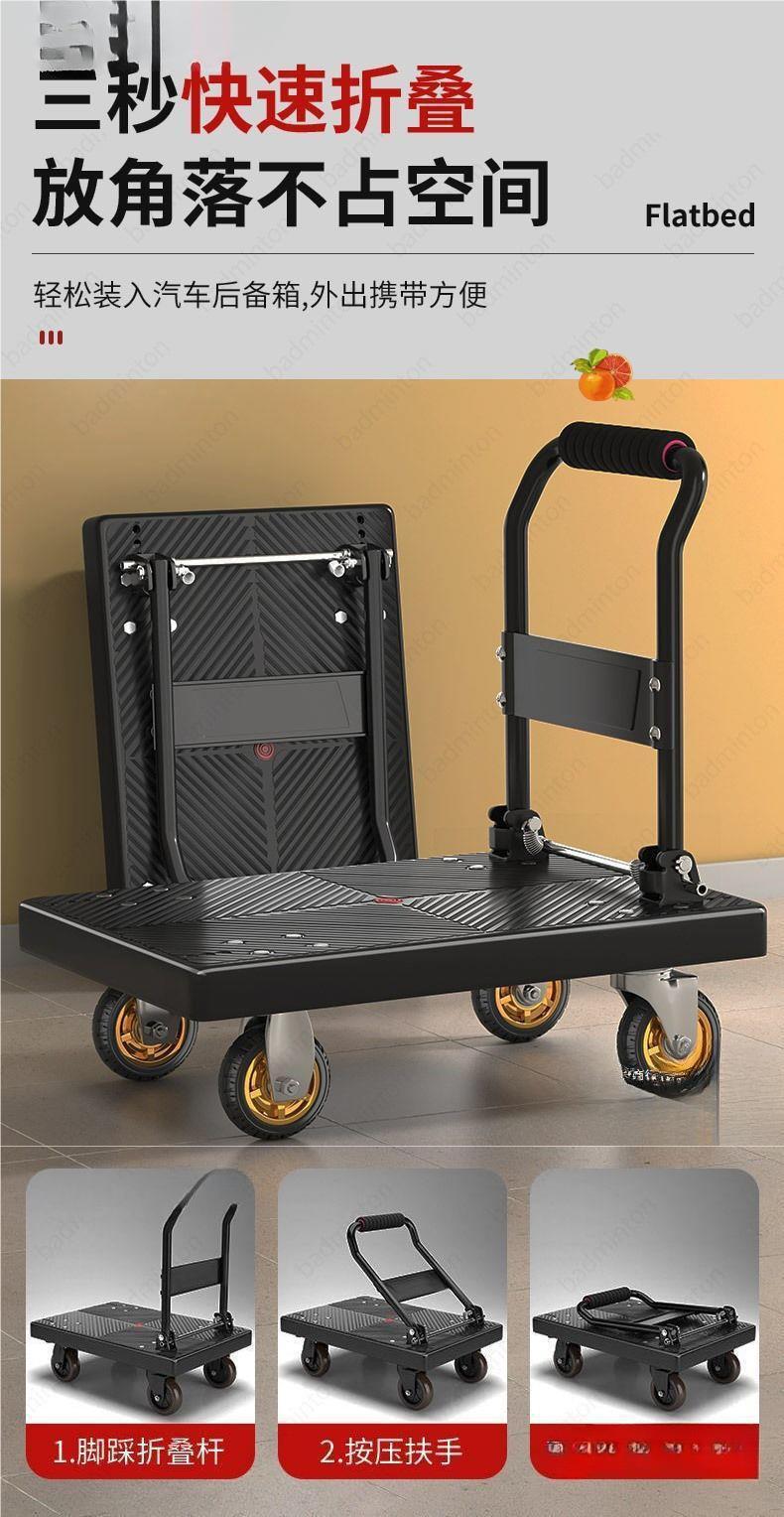 Carretilla de Cuatro Ruedas, Camión de Plataforma, Remolque de Camión de Tracción, Carretilla de Empuje Plegable Silenciosa para el Hogar, Camión de Transporte, Camión de Mudanzas