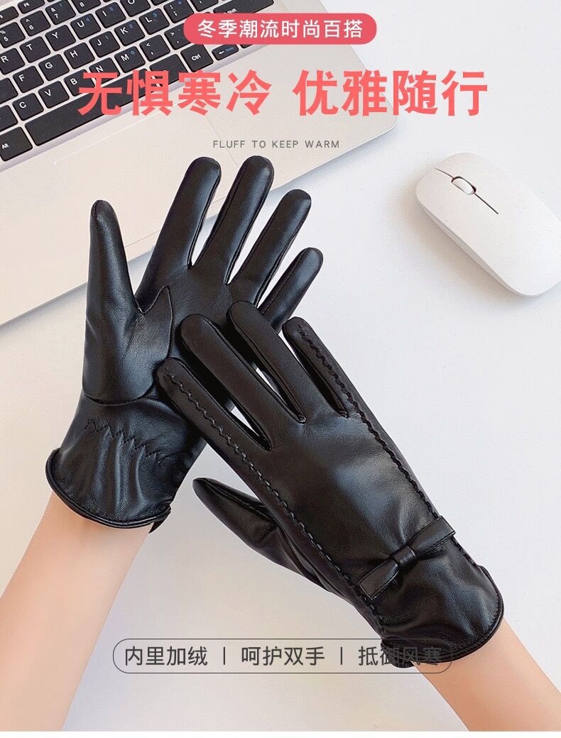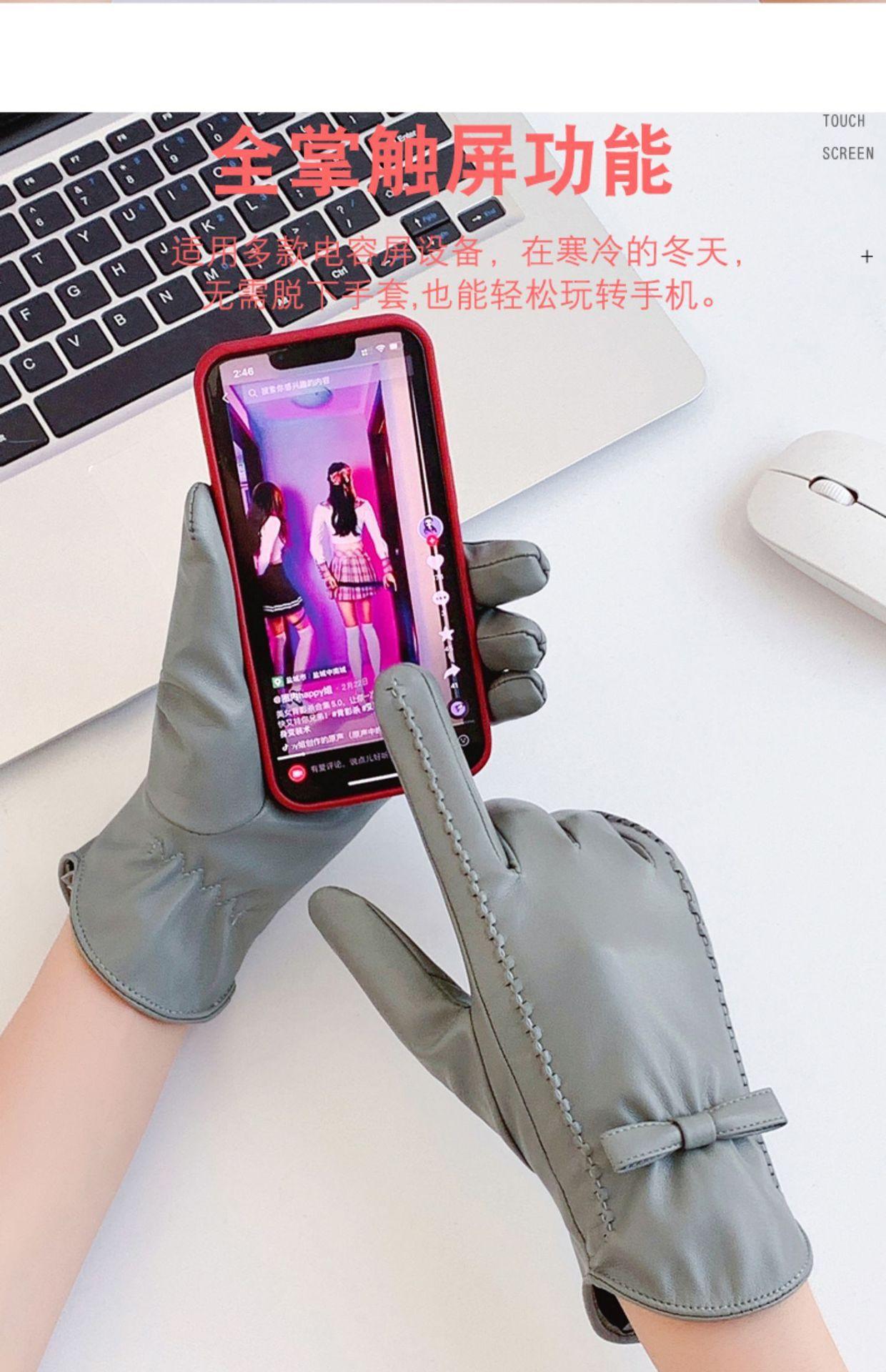 Guantes de cuero con pantalla táctil para otoño e invierno para mujer, coloridos, gruesos y cálidos, para conducir, moda de estilo coreano, comercio exterior al por mayor