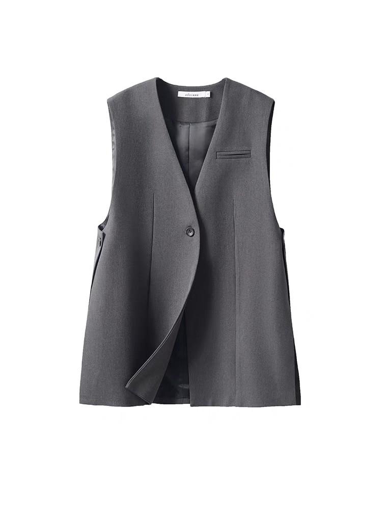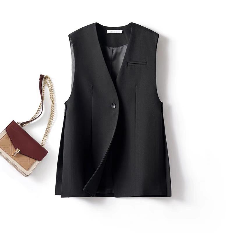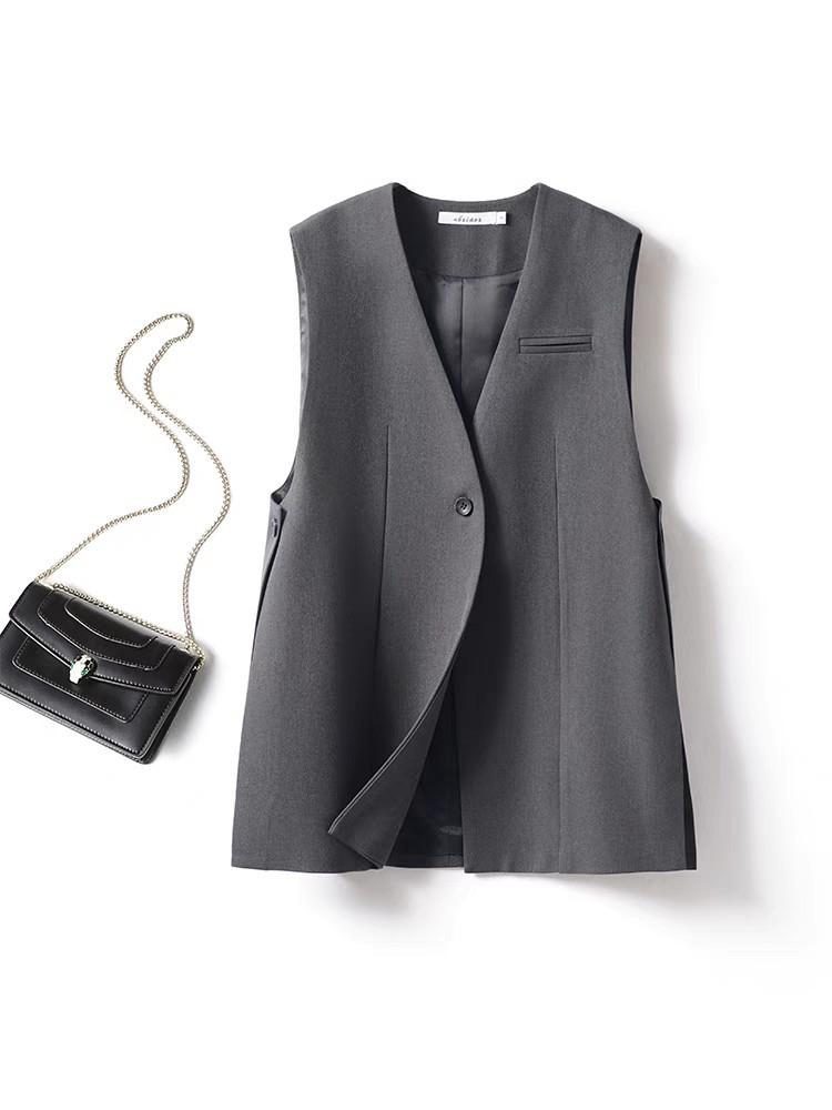 Chaleco de Traje con Abertura Lateral de Diseño Sense para Mujer Primavera y Otoño 2025 Nueva Moda Elegante Chaleco Apilado Chaqueta sin Mangas