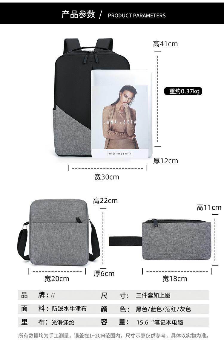 Black three-piece set + [shoulder bag + pencil case], Gray three-piece set + [shoulder bag + pencil case], Blu...