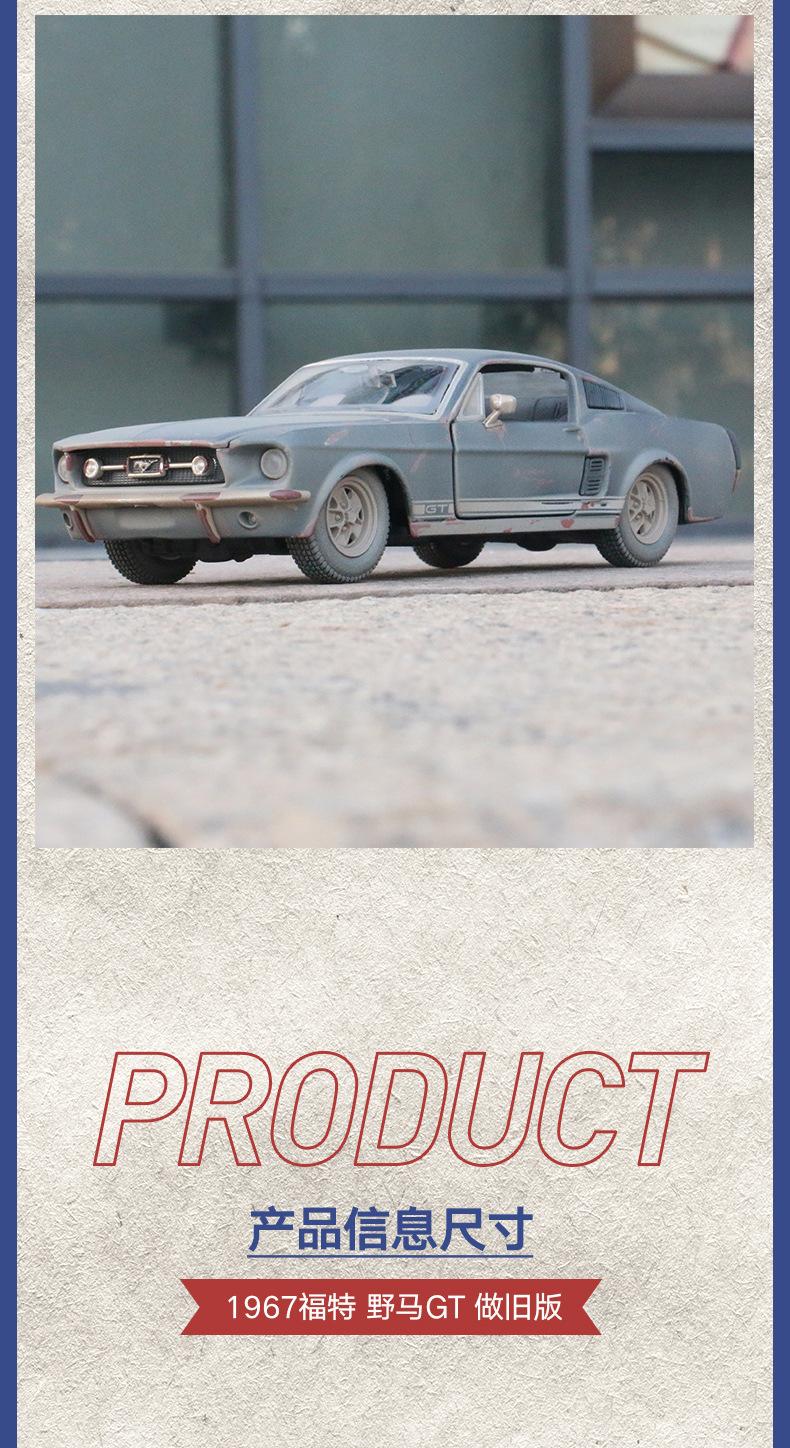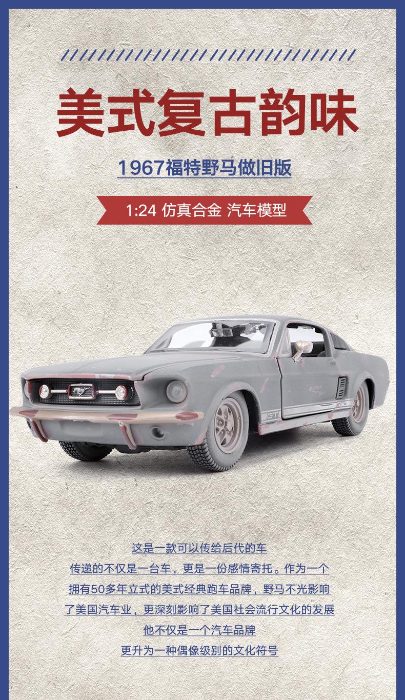 Meichitu 1967 Ford Mustang GT modelo de coche 1:24 Mustang do versión antigua de modelo de coche de aleación de simulación