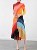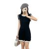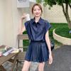 Traje de Temperamento Dulce Verano Petite Falda Plisada Color Contrastante Mangas Voladoras Cuello Redondo Top de Mujer Set Francés de Dos Piezas
