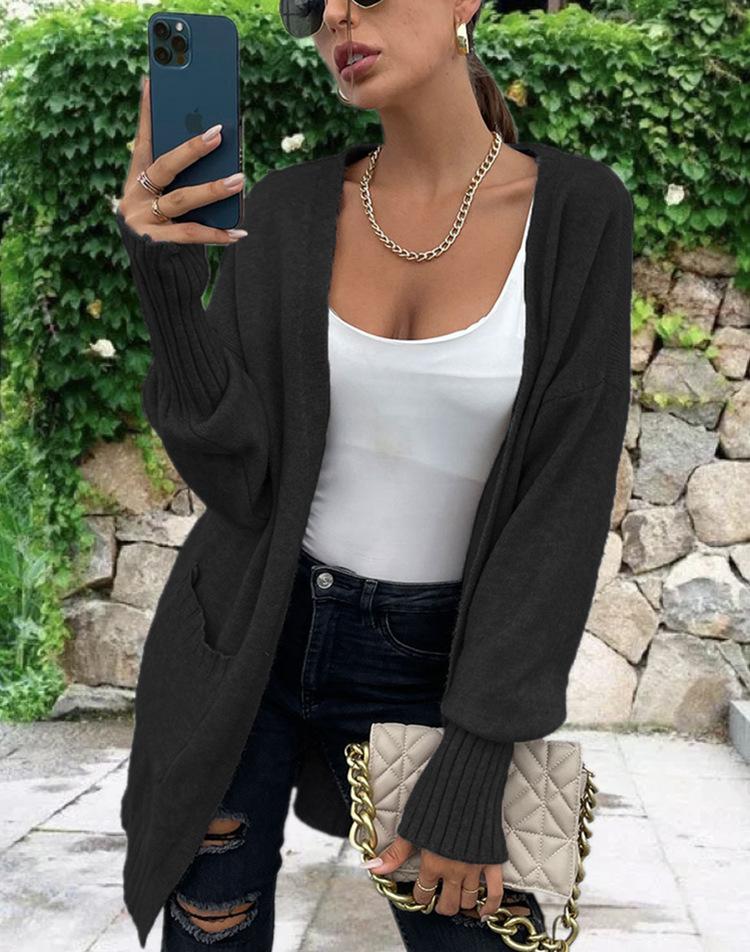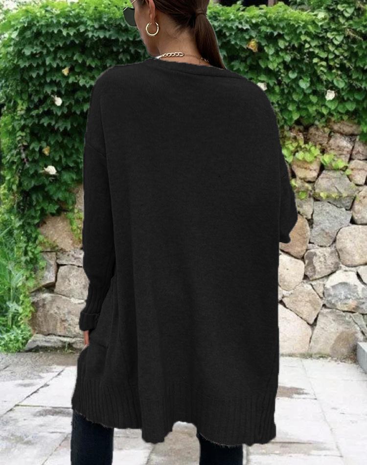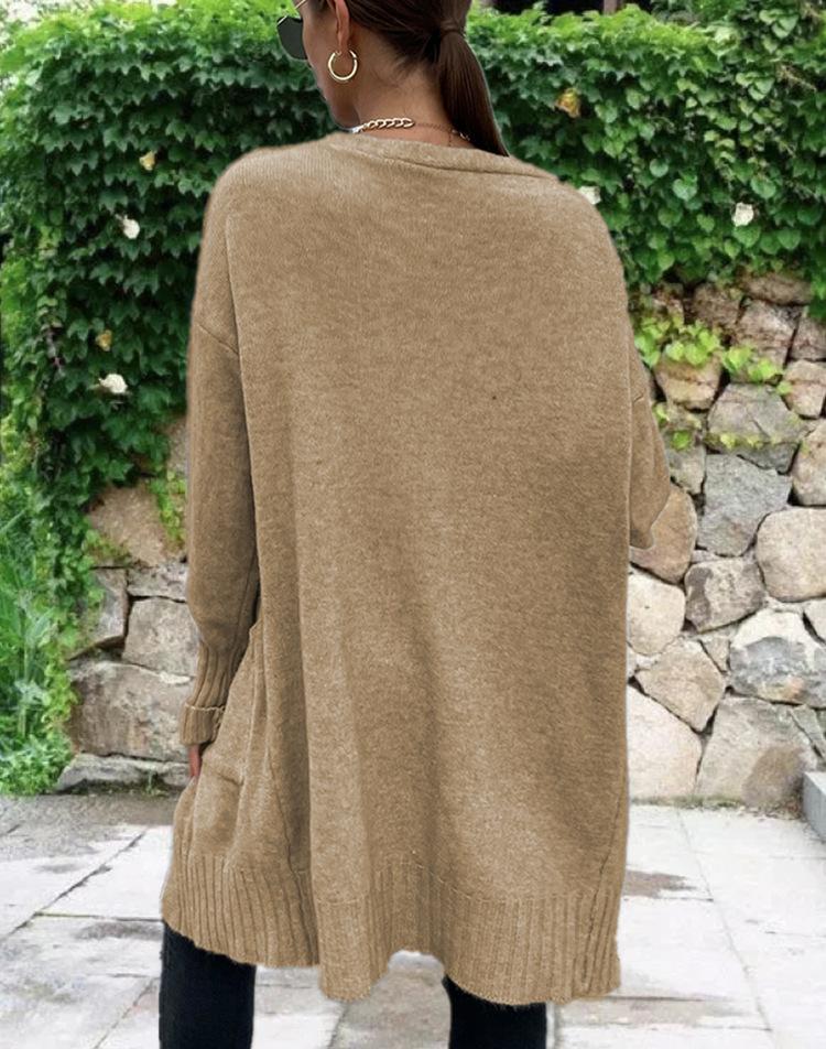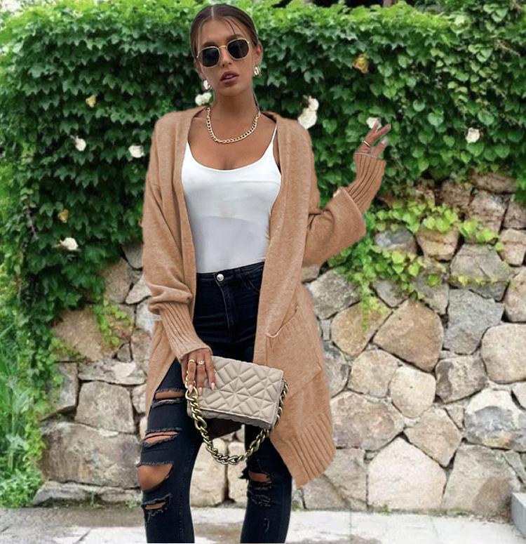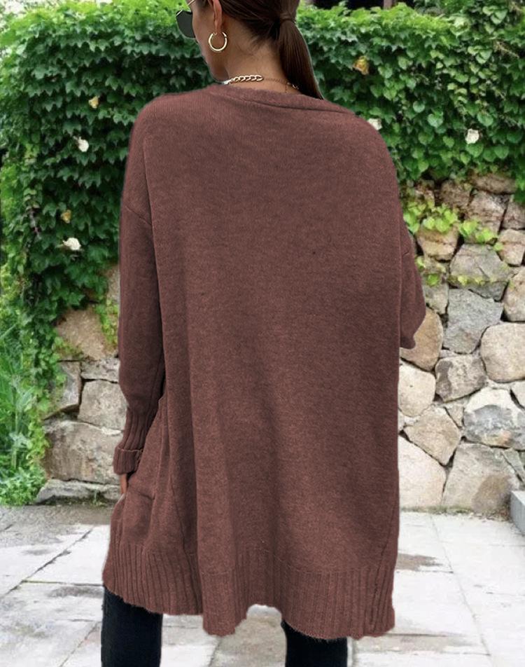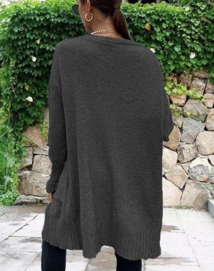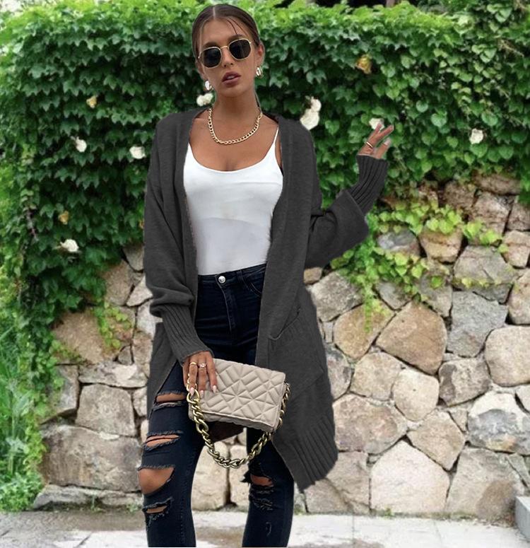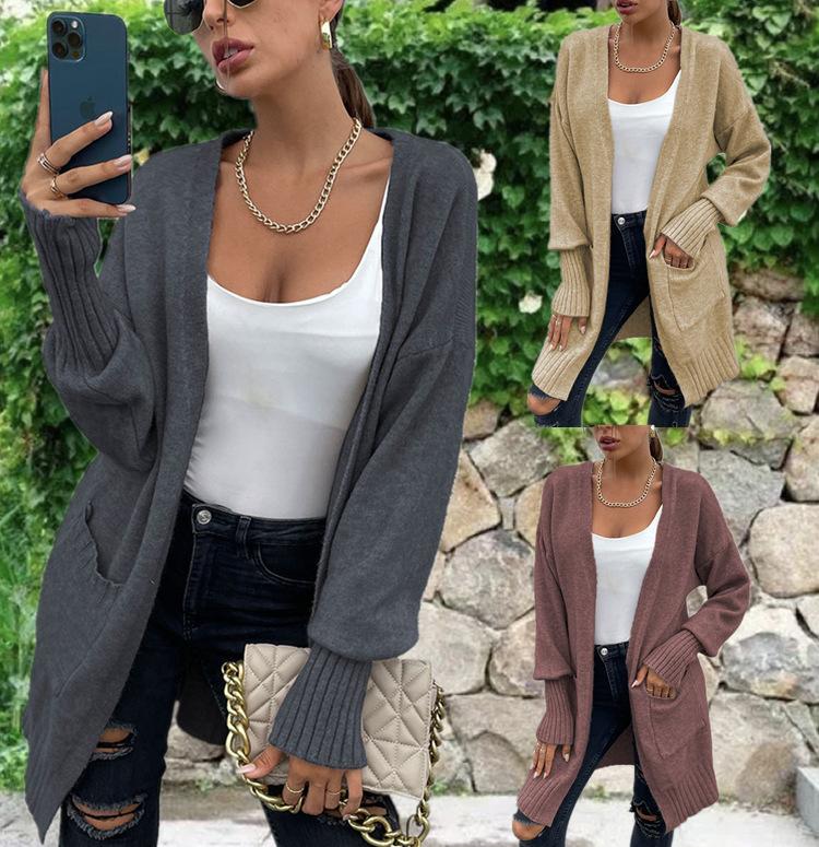 Comercio Exterior Nuevo wish Ropa de Punto para Mujer Europea y Americana Casual Suelto Bolsillo Abrigo Suéter Largo de Punto Mujer
