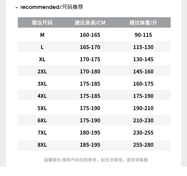 M, L, XL, 2XL, 3XL, 4XL, 5XL, 6XL, 7XL, 8XL