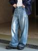 Otoño Nuevo Estilo Americano Jeans High Street Sueltos Rectos Versátiles Modernos Casuales Lavados Pantalones de Pierna Ancha