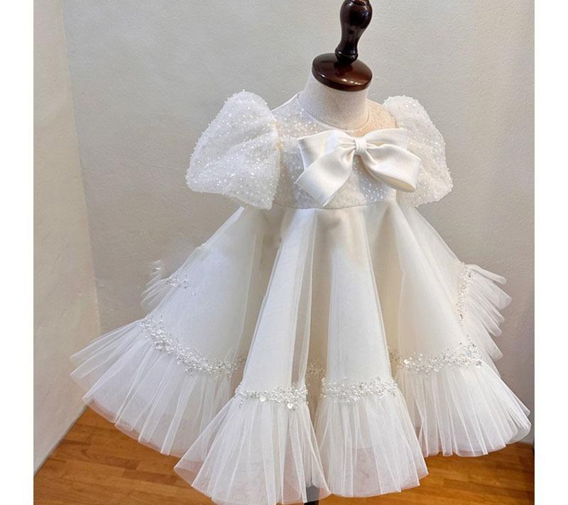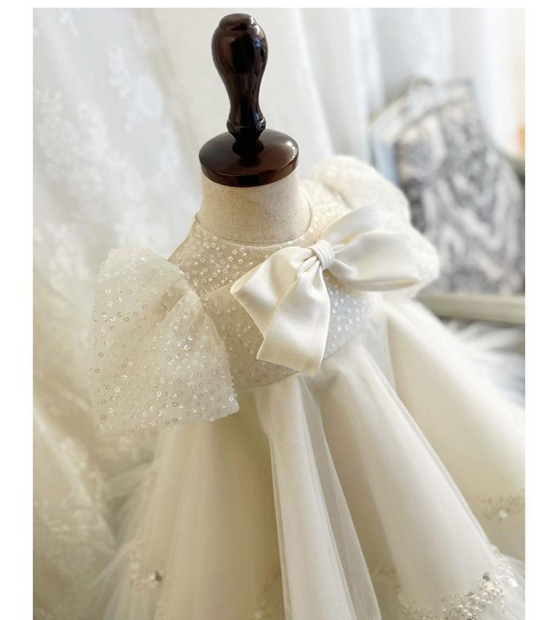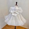 Vestido de un año Cintura alta 2025 Nueva moda Bebé niña Estilo coreano Cumpleaños Vestido de boda Niña de las flores Vestido de princesa Tul