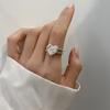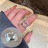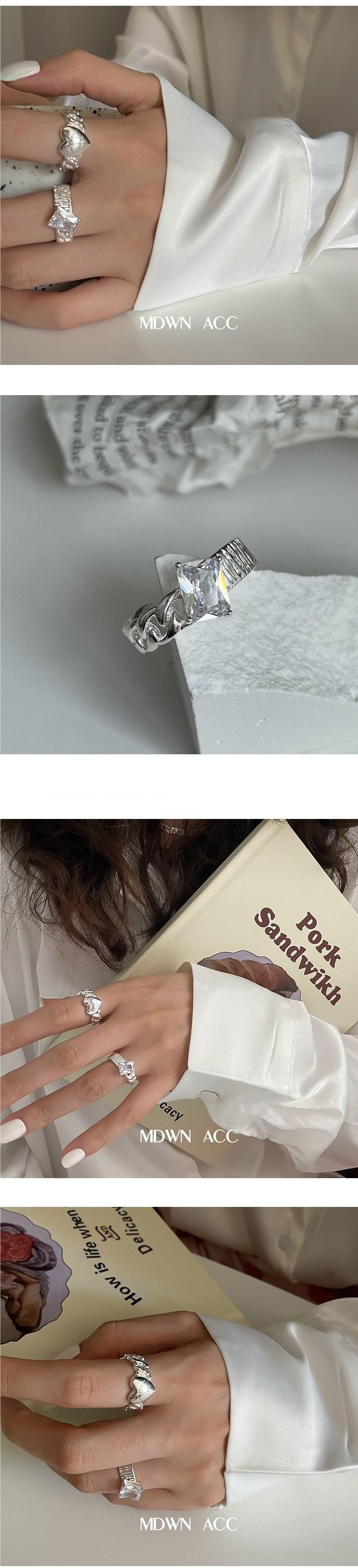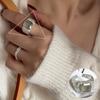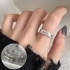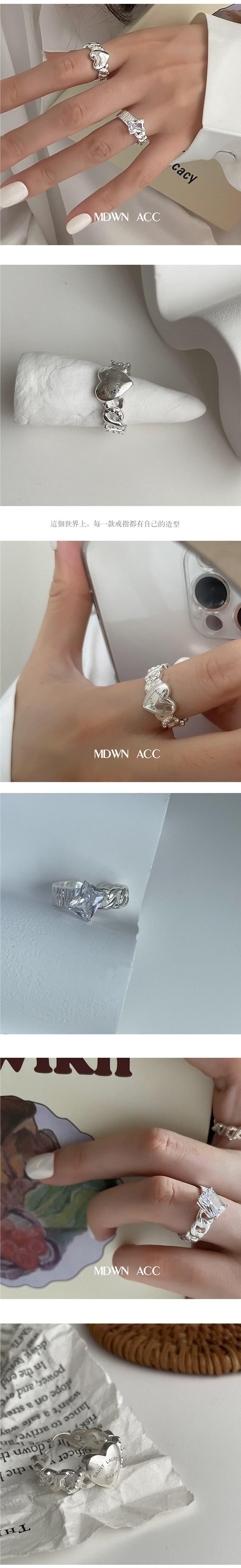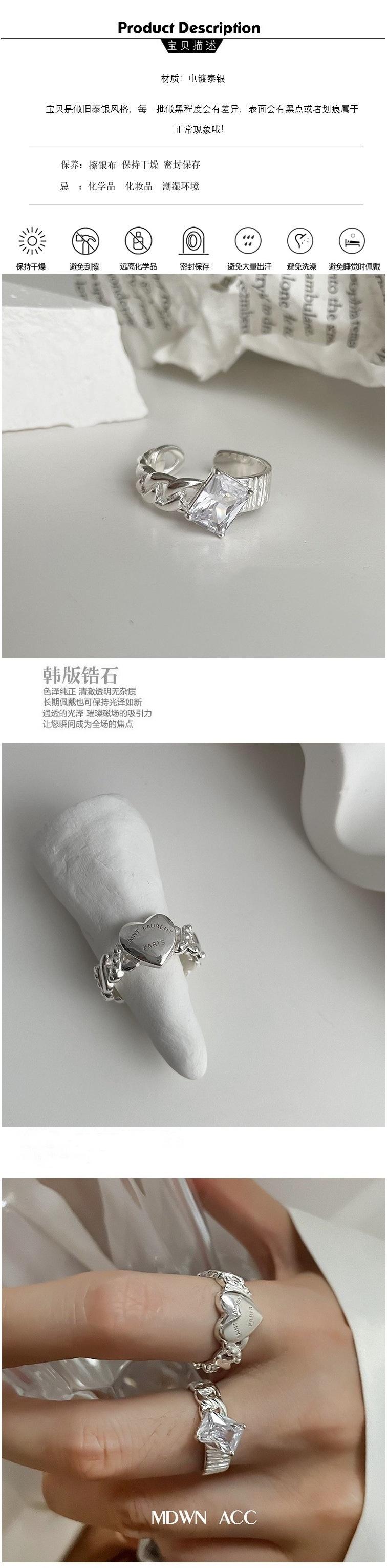 Anillo Coreano de Plata S925 Chapado en Oro con Dulce Corazón y Letra para Mujer, Anillo Abierto de Cadena Gruesa de Moda Retro, Anillo para Dedo Índice