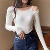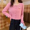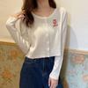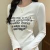 Suéter Delgado de Otoño Estilo Coreano Transfronterizo Nuevo Bordado de Letras Ajustado Corto Delgado de Manga Larga para Mujer