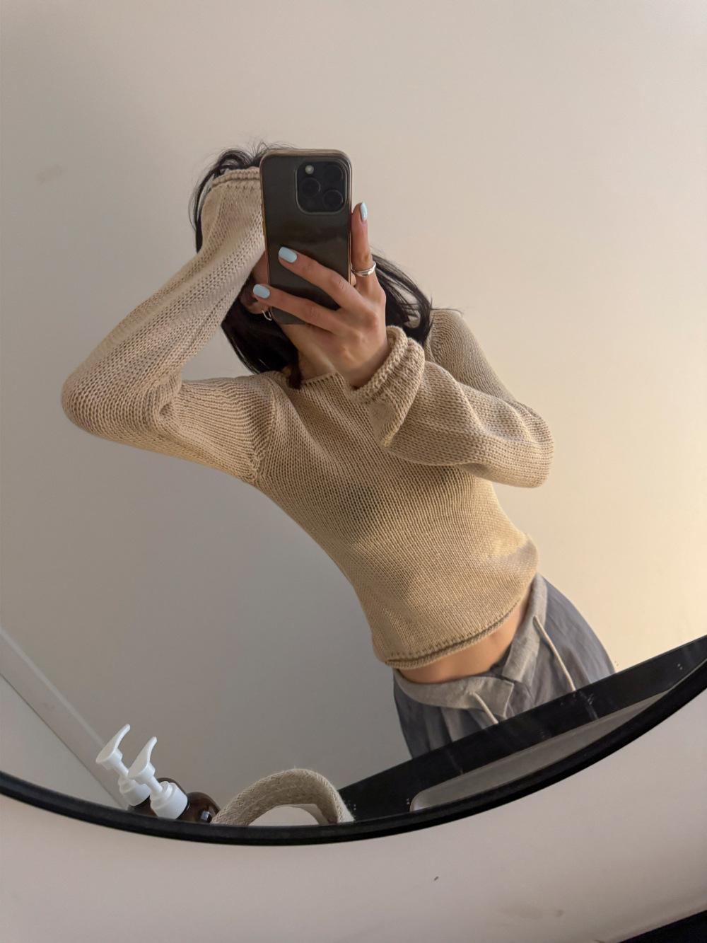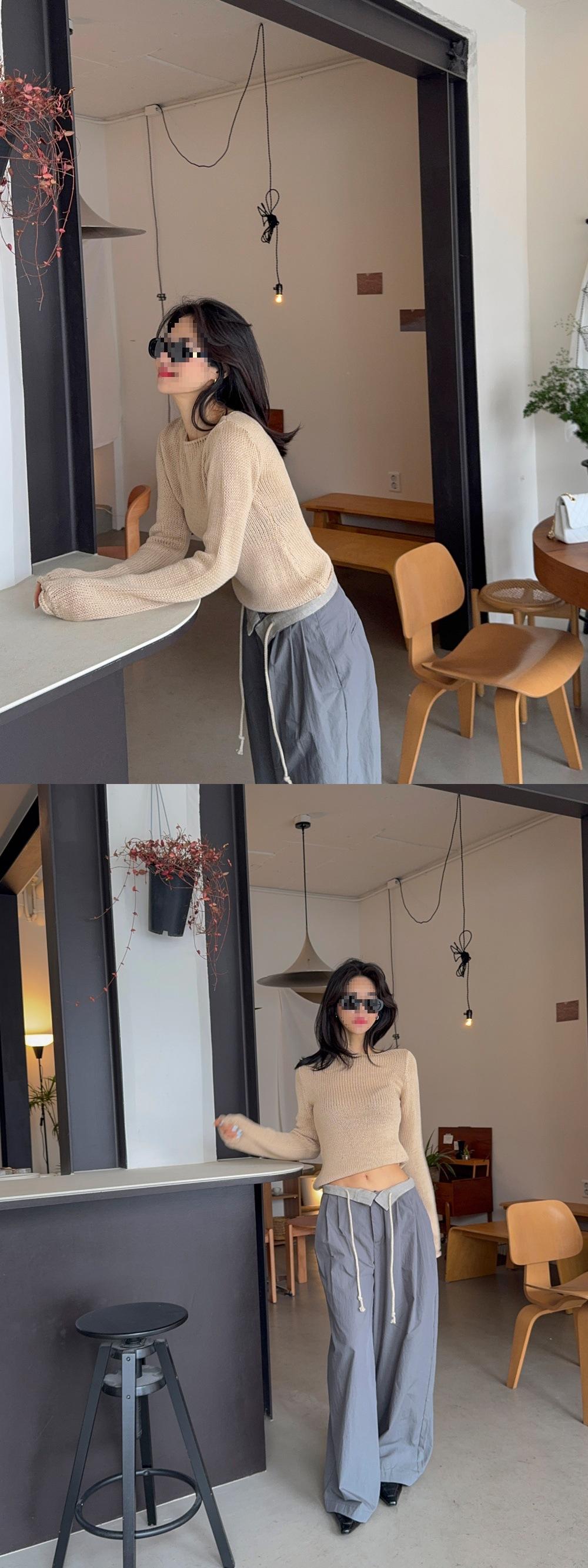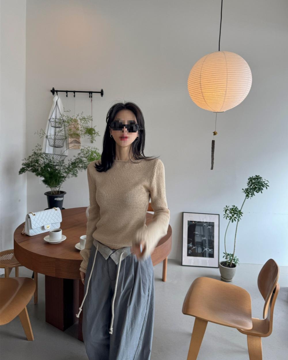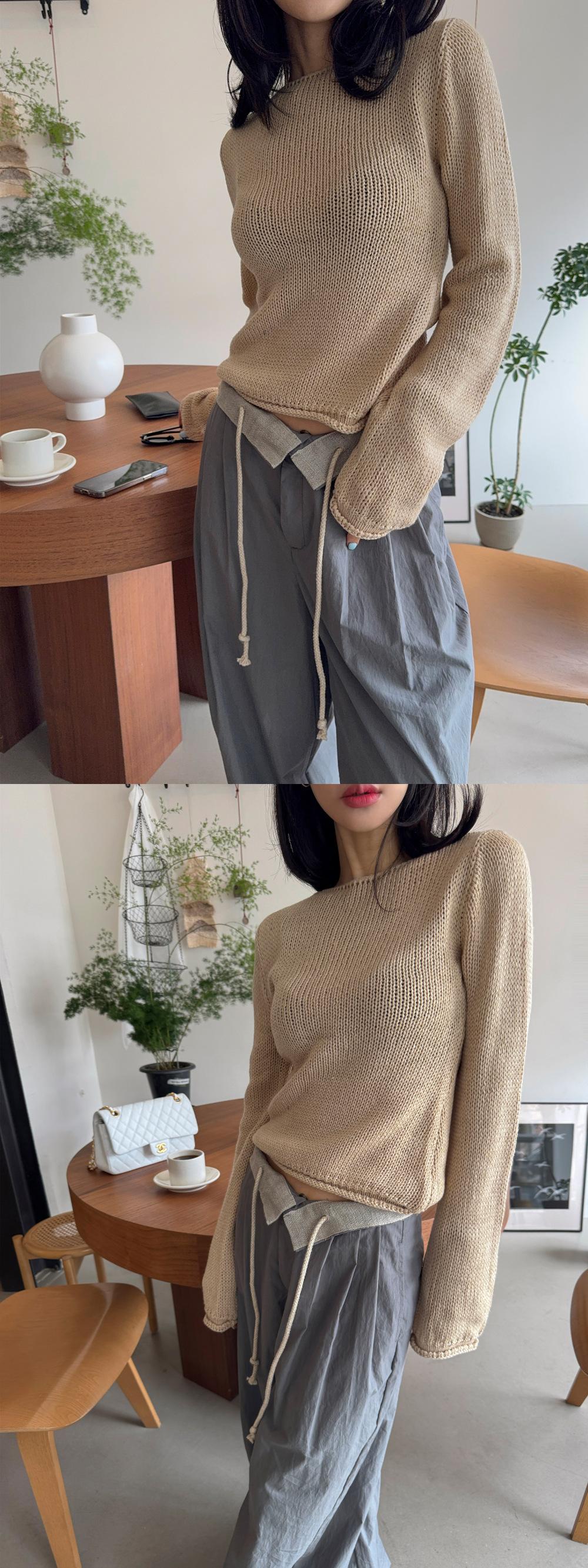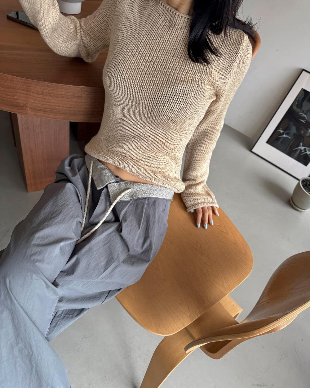 Top de Punto de Manga Larga con Aberturas Listo para Enviar