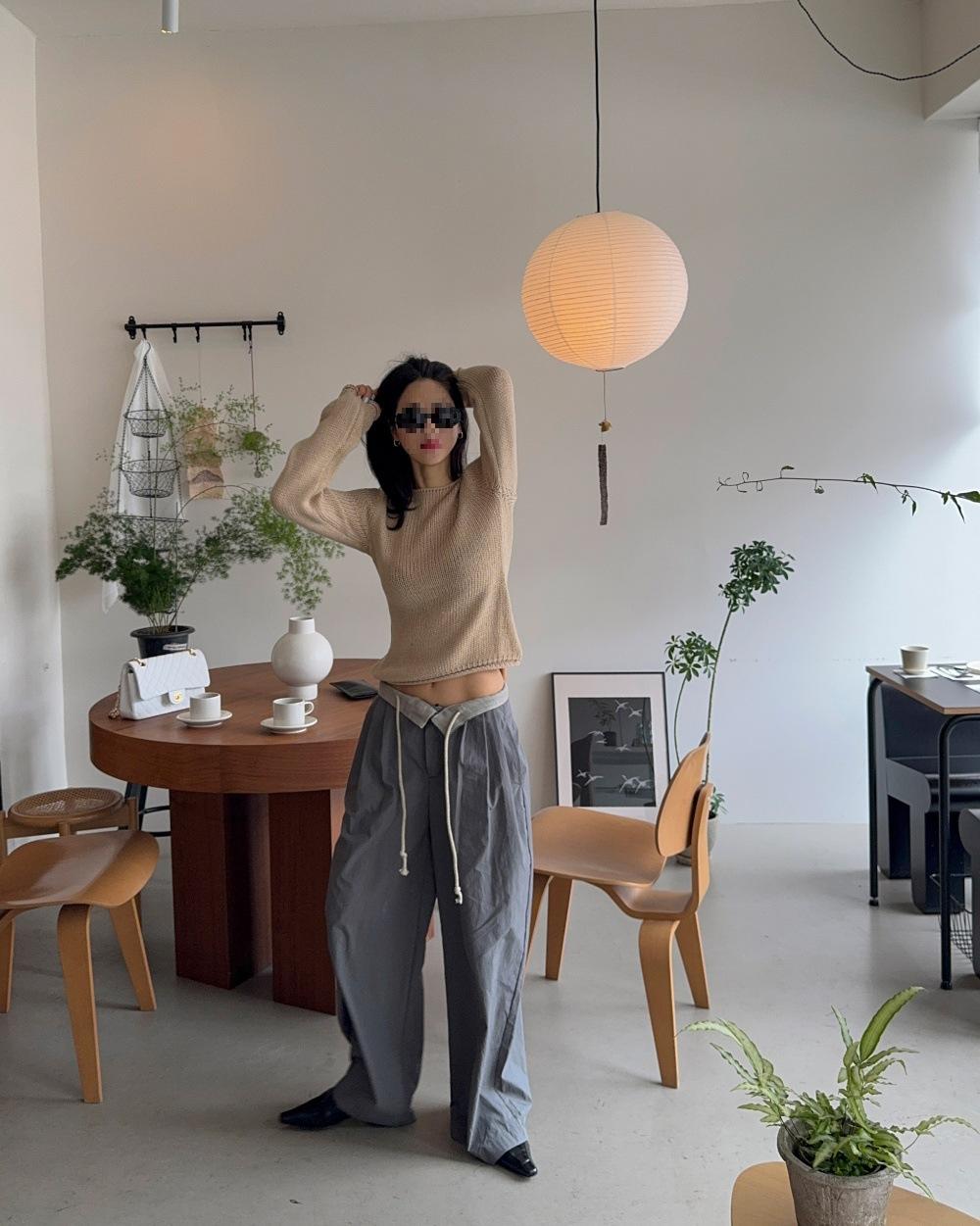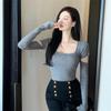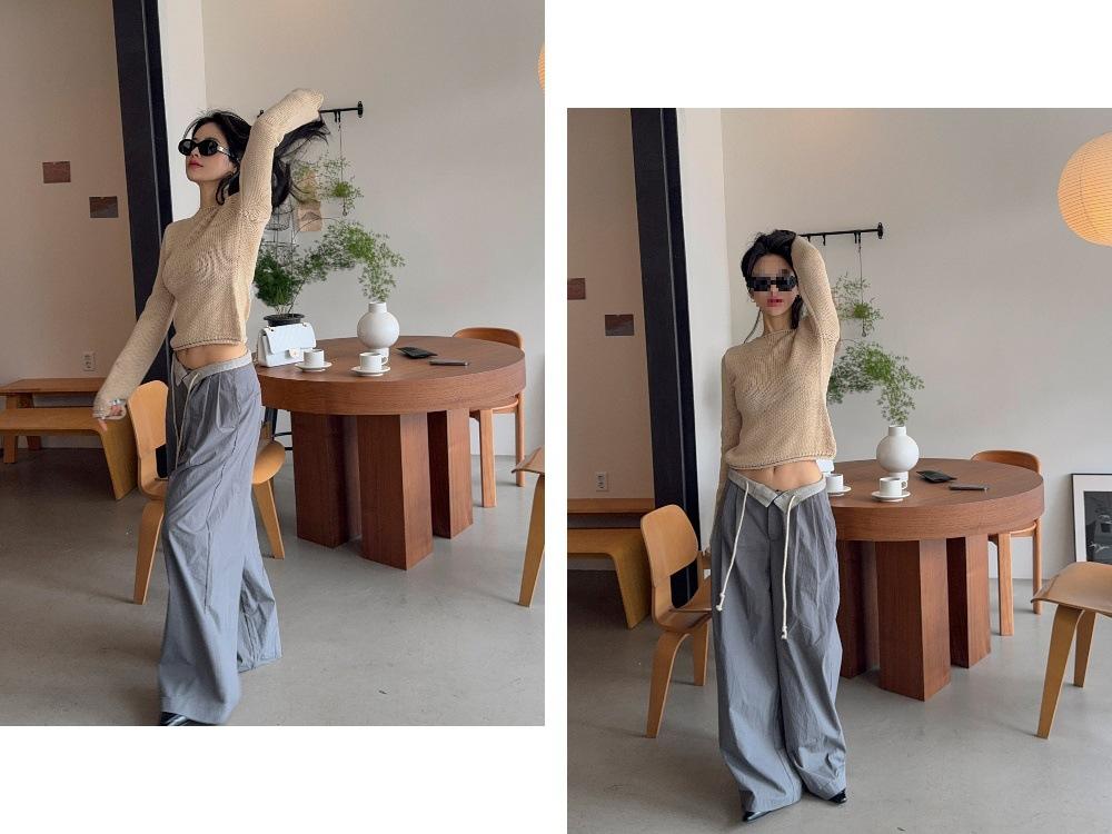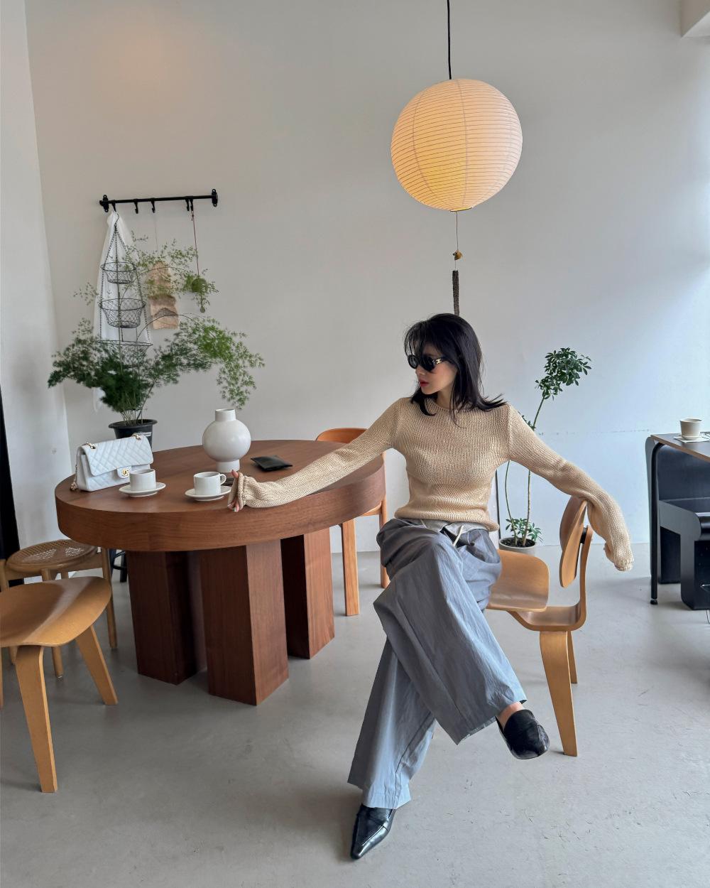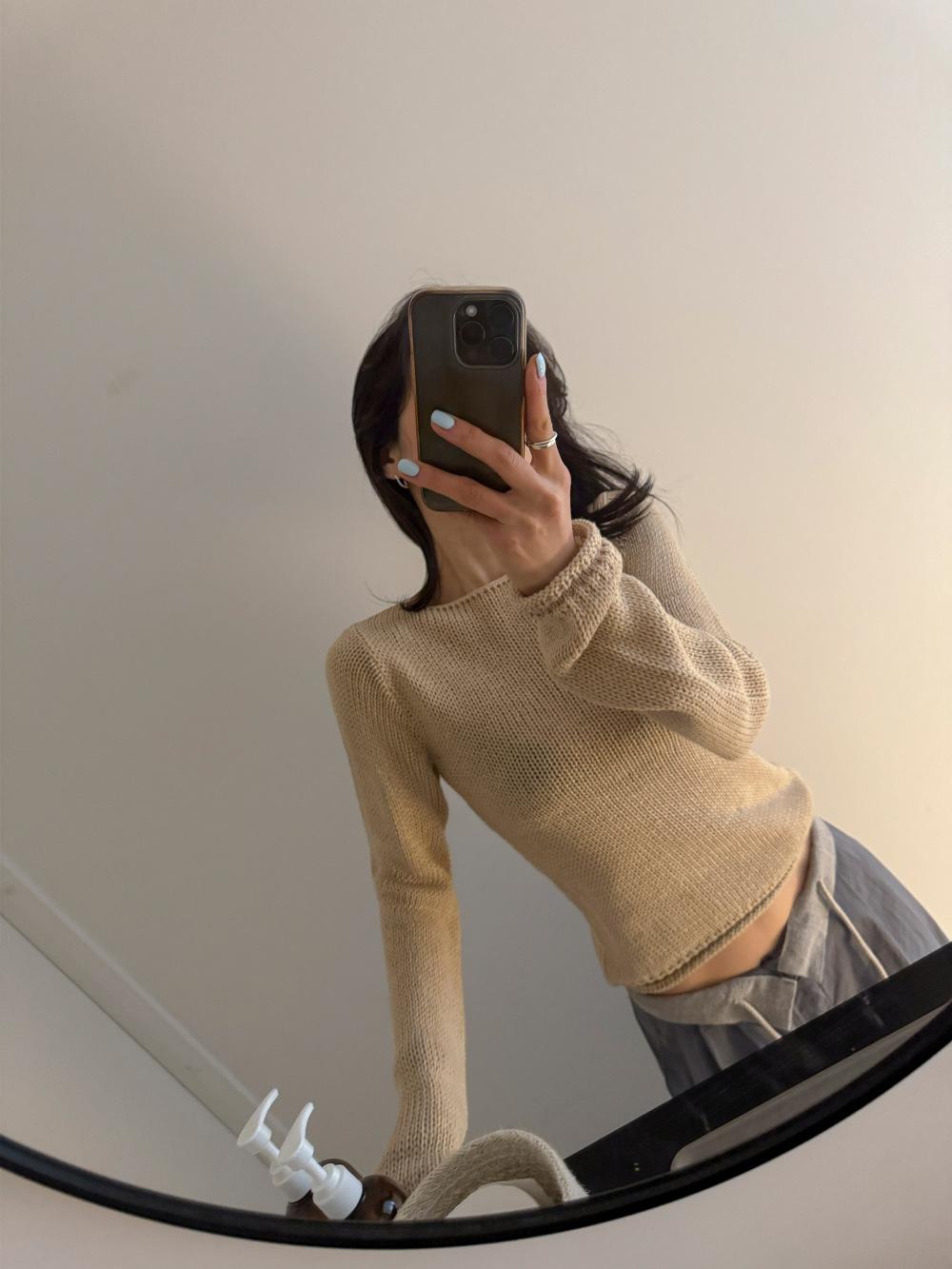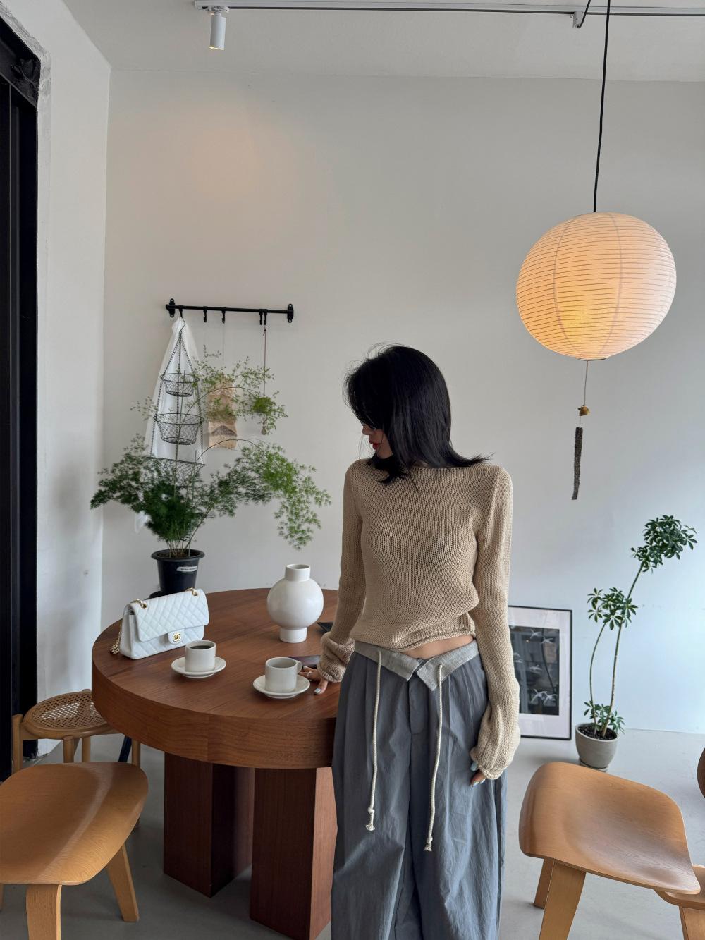 Top de Punto de Manga Larga con Aberturas Listo para Enviar