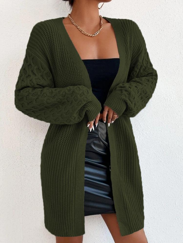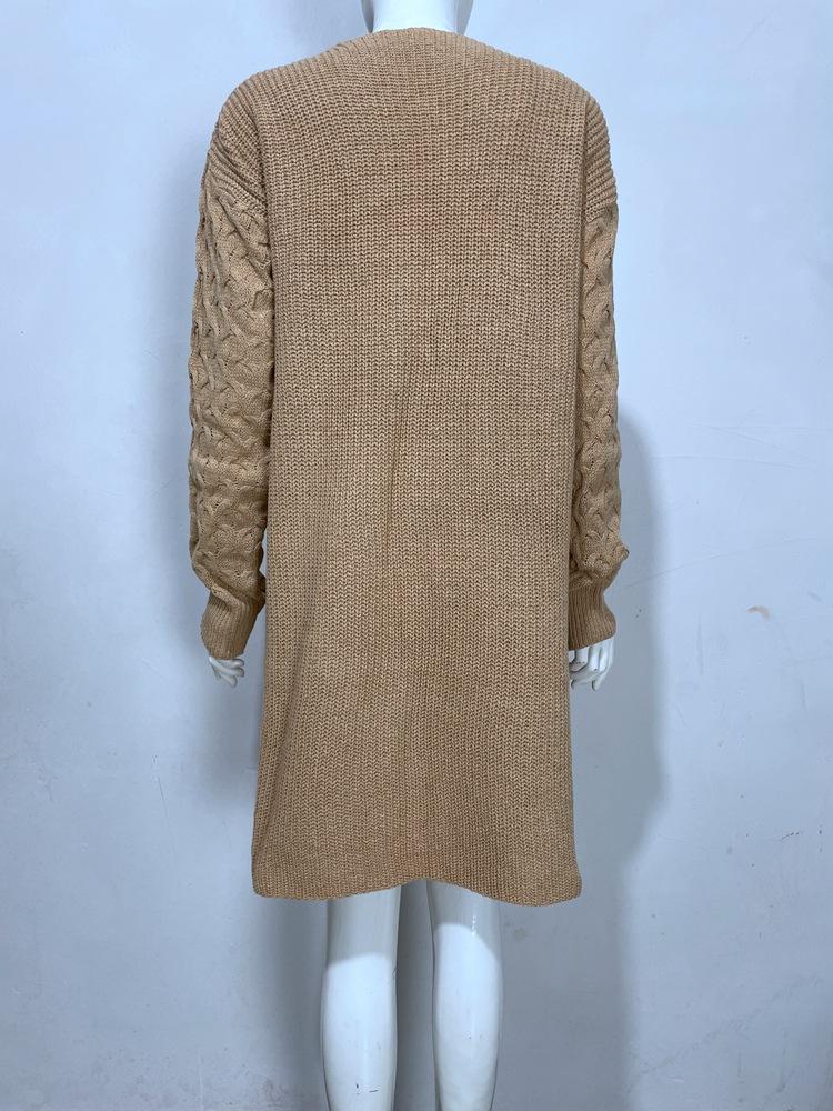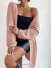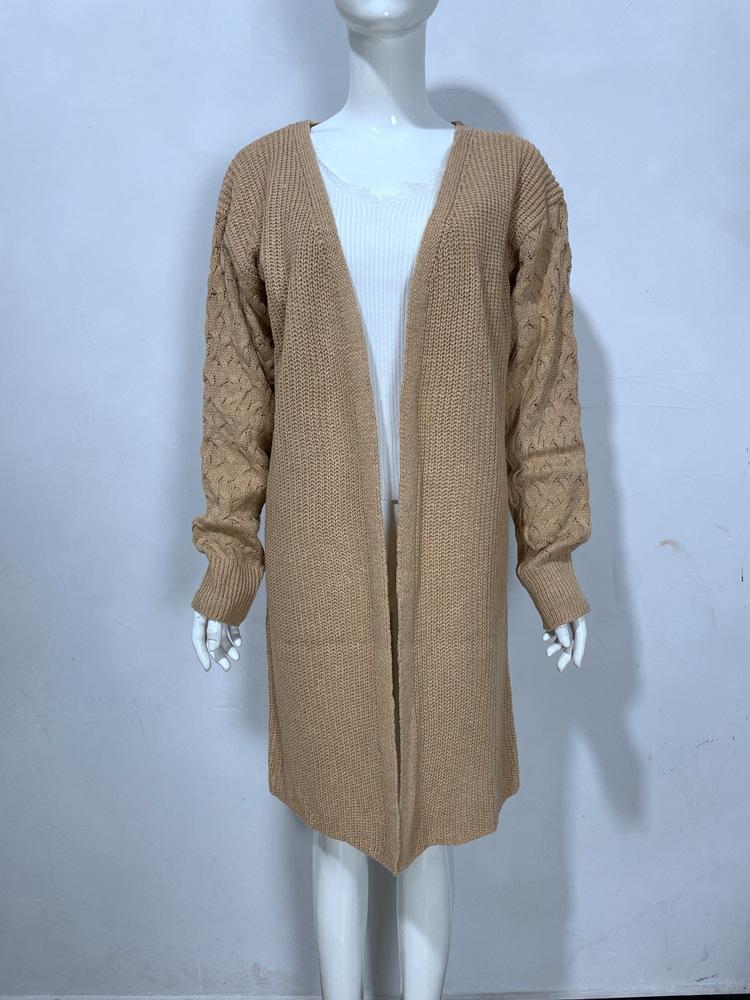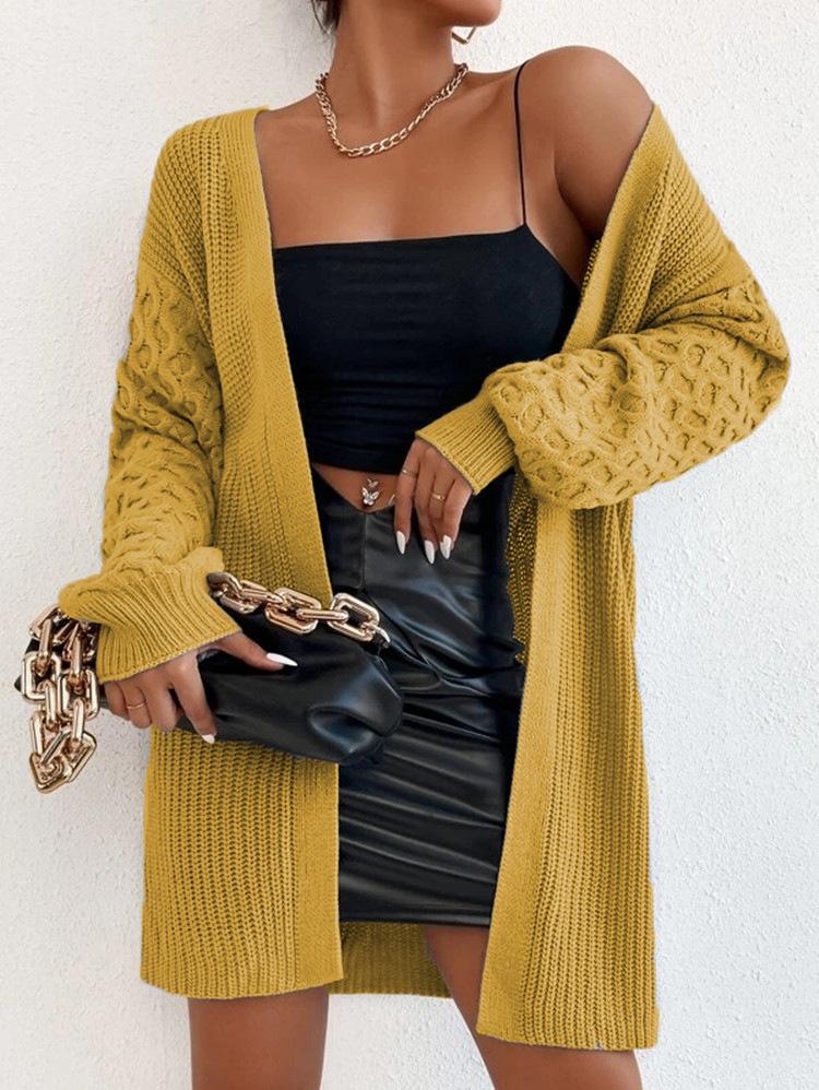 2025 Aliexpress Nuevo Cárdigan Casual Suéter de Punto Manga Larga Largo Medio Color Puro Suéter Holgado Chaqueta para Mujer