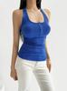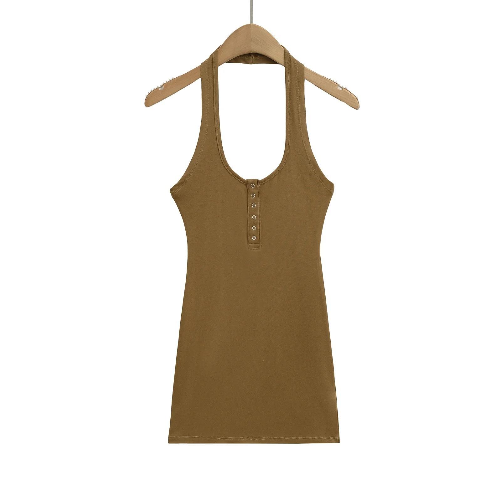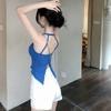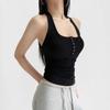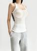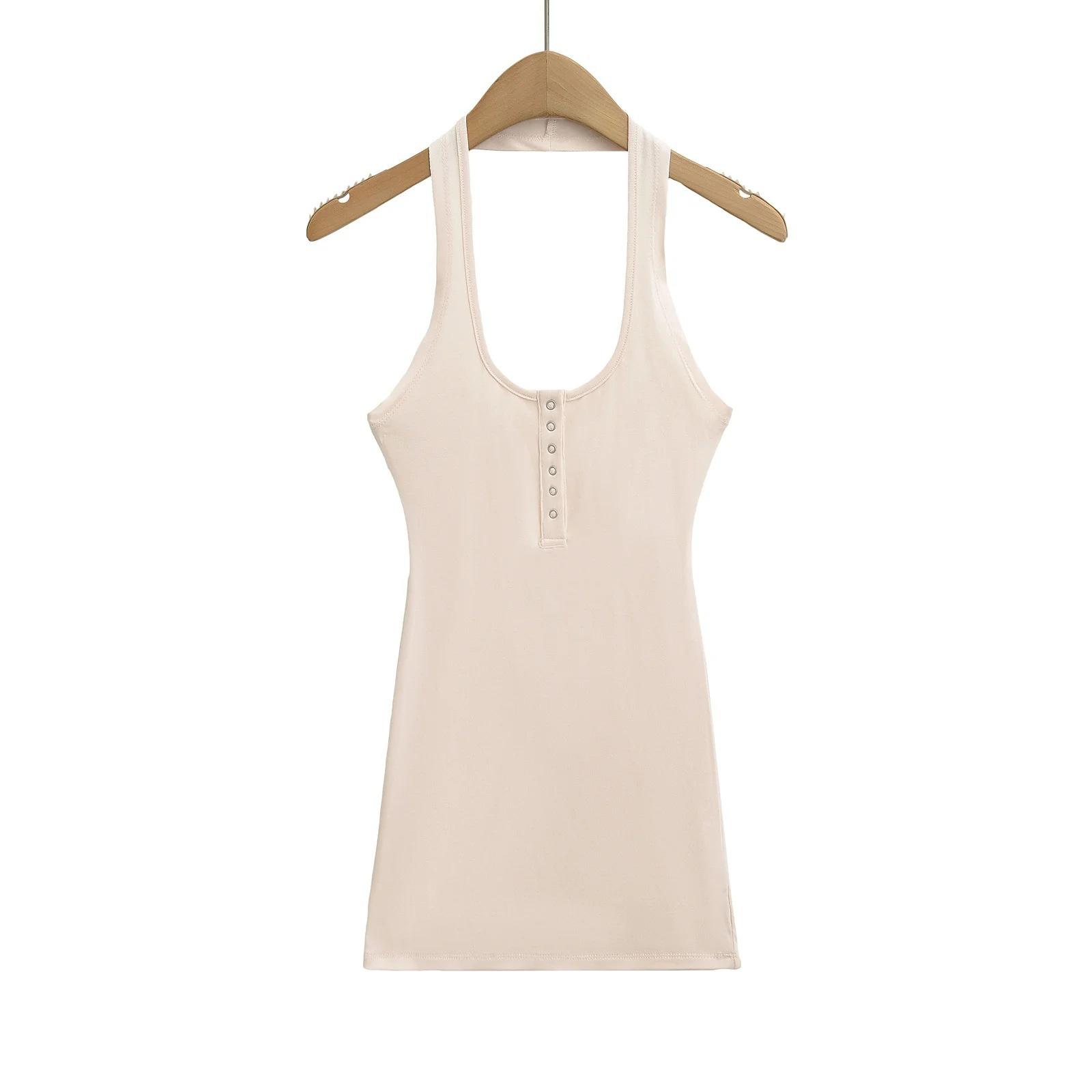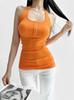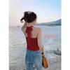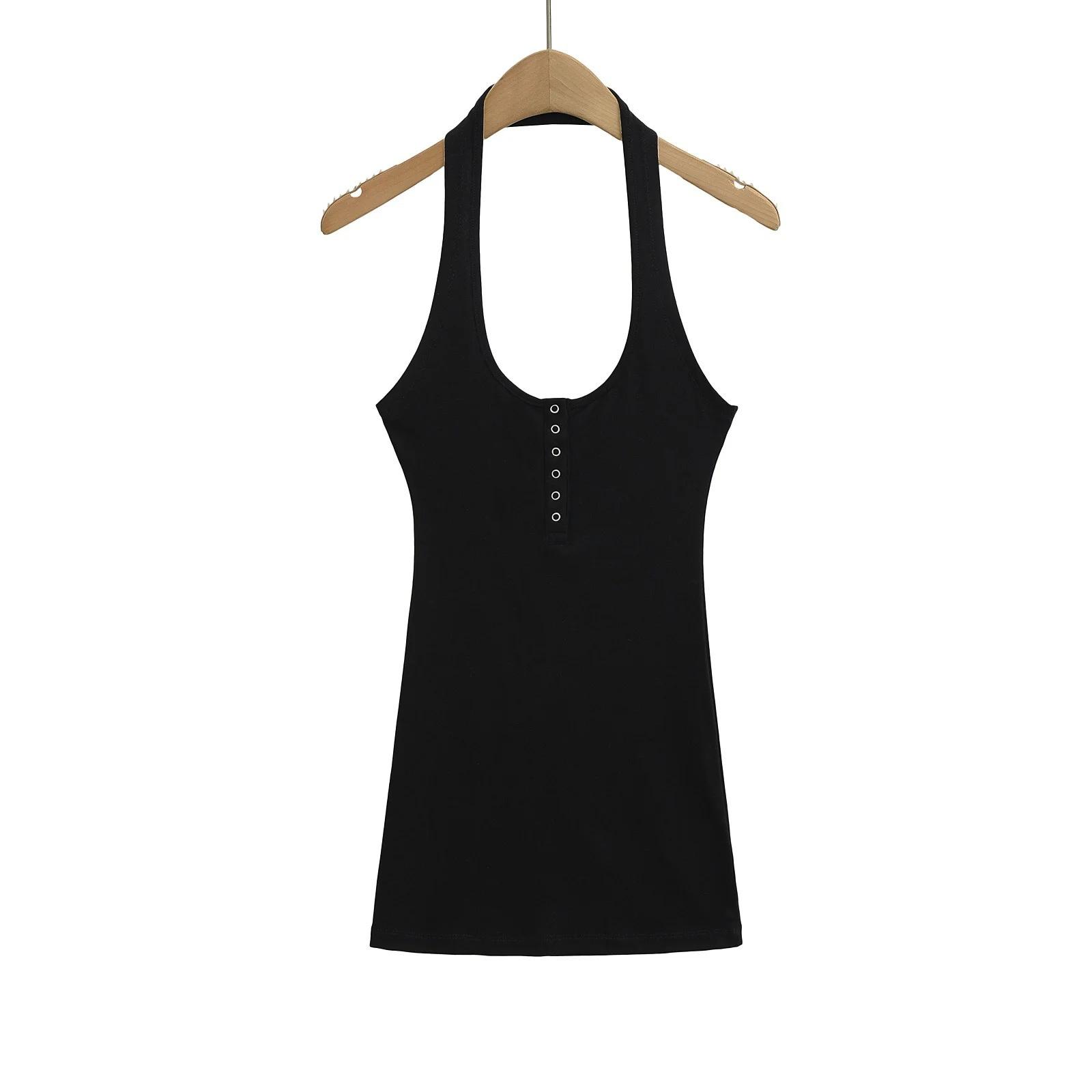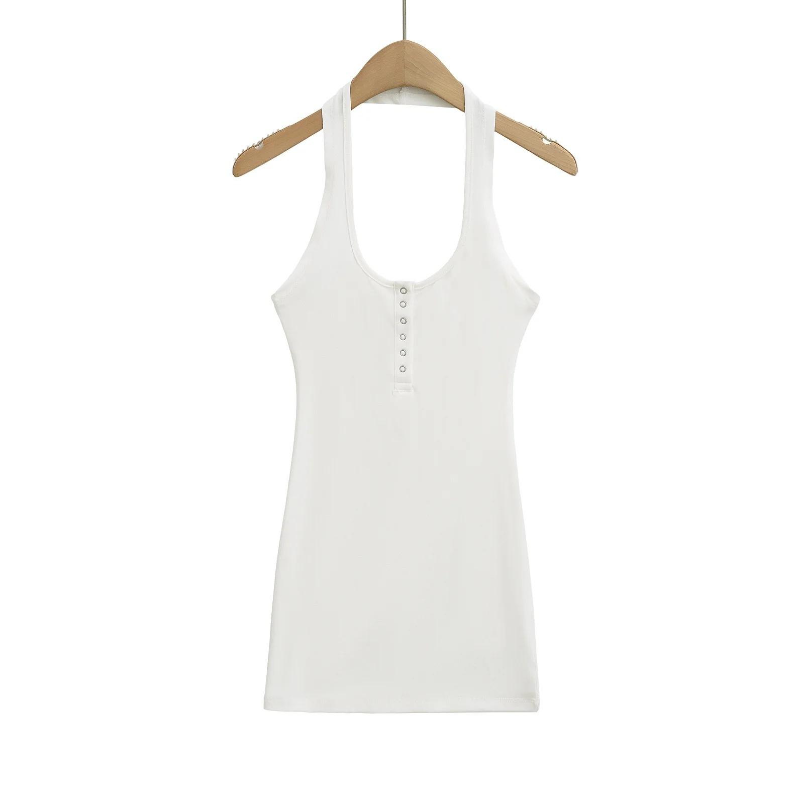 Camisola Halter Blanca Estilo Americano Chica Sexy Ropa Exterior para Mujer Verano Nuevo Slim Sin Espalda Camiseta Base Top de Largo Medio