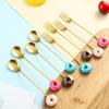 Cucharas de Plástico de Grado Alimenticio Tenedores Cucharas Soperas para Niños Cucharas de Postre Tenedores para Fruta Entrenamiento 6 Piezas