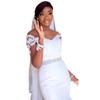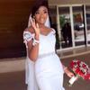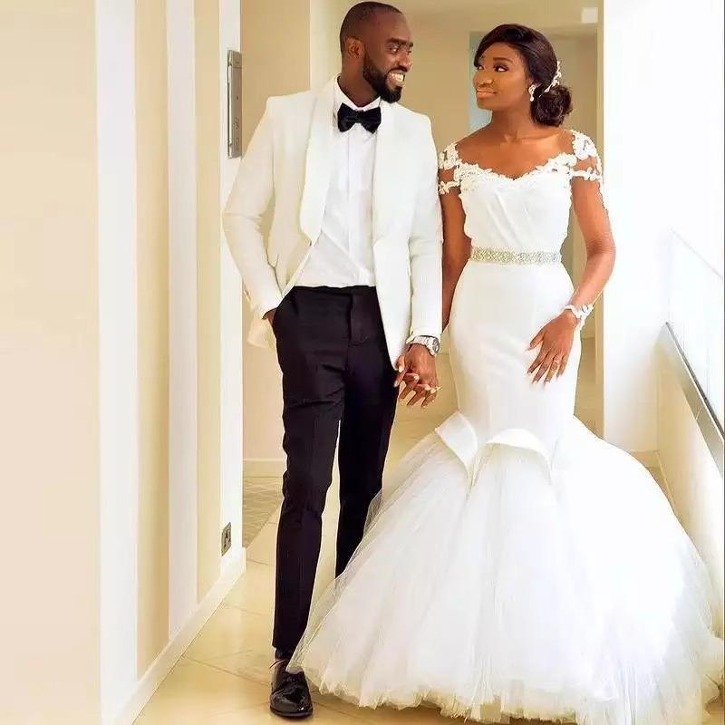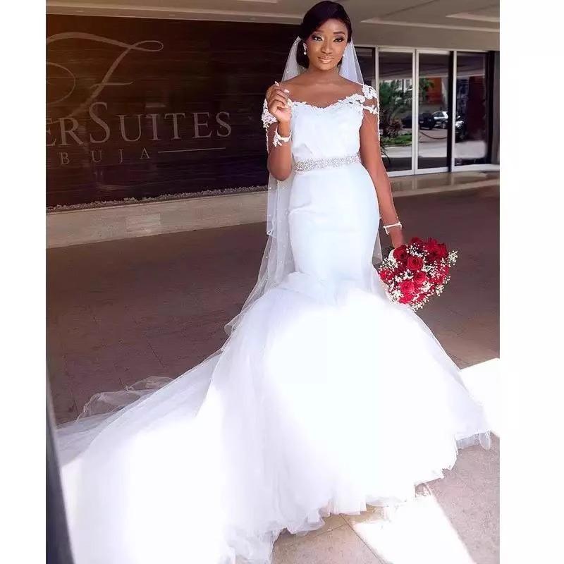 Vestido de novia africano de cuello redondo color piel corte sirena ajustado cinturón de diamantes vestido de novia de cola larga
