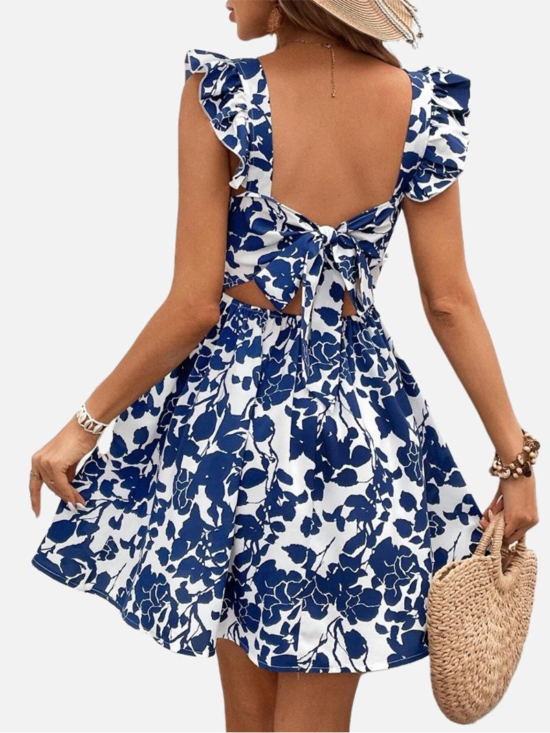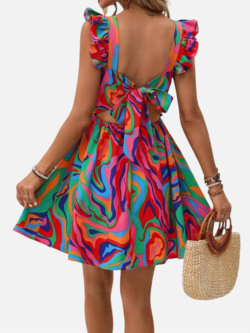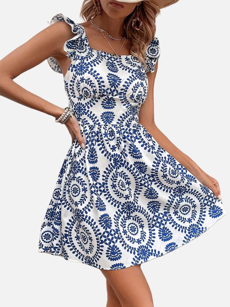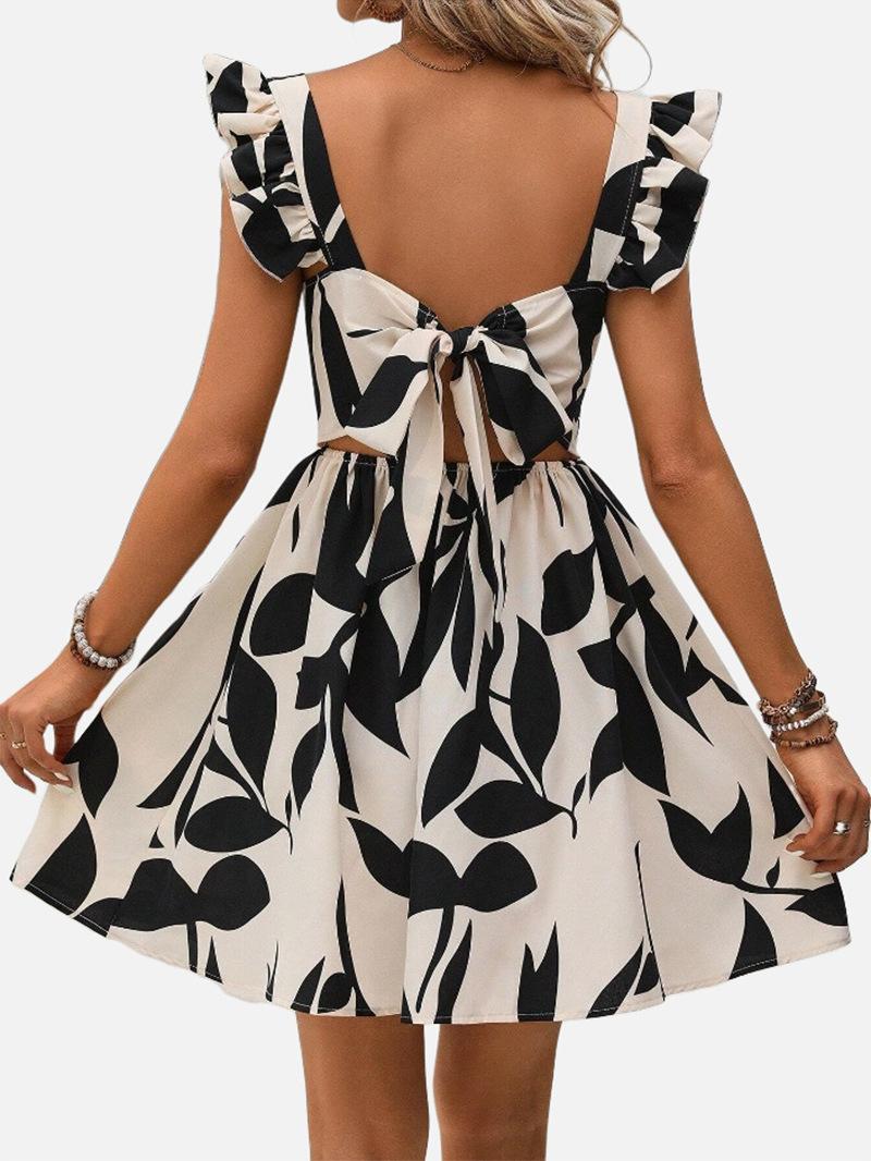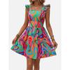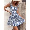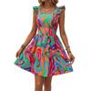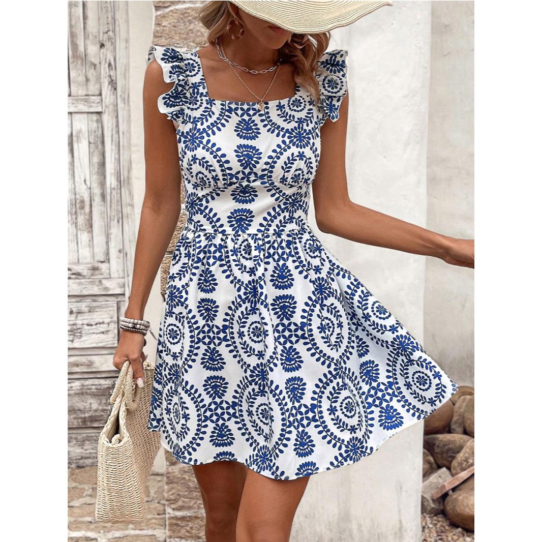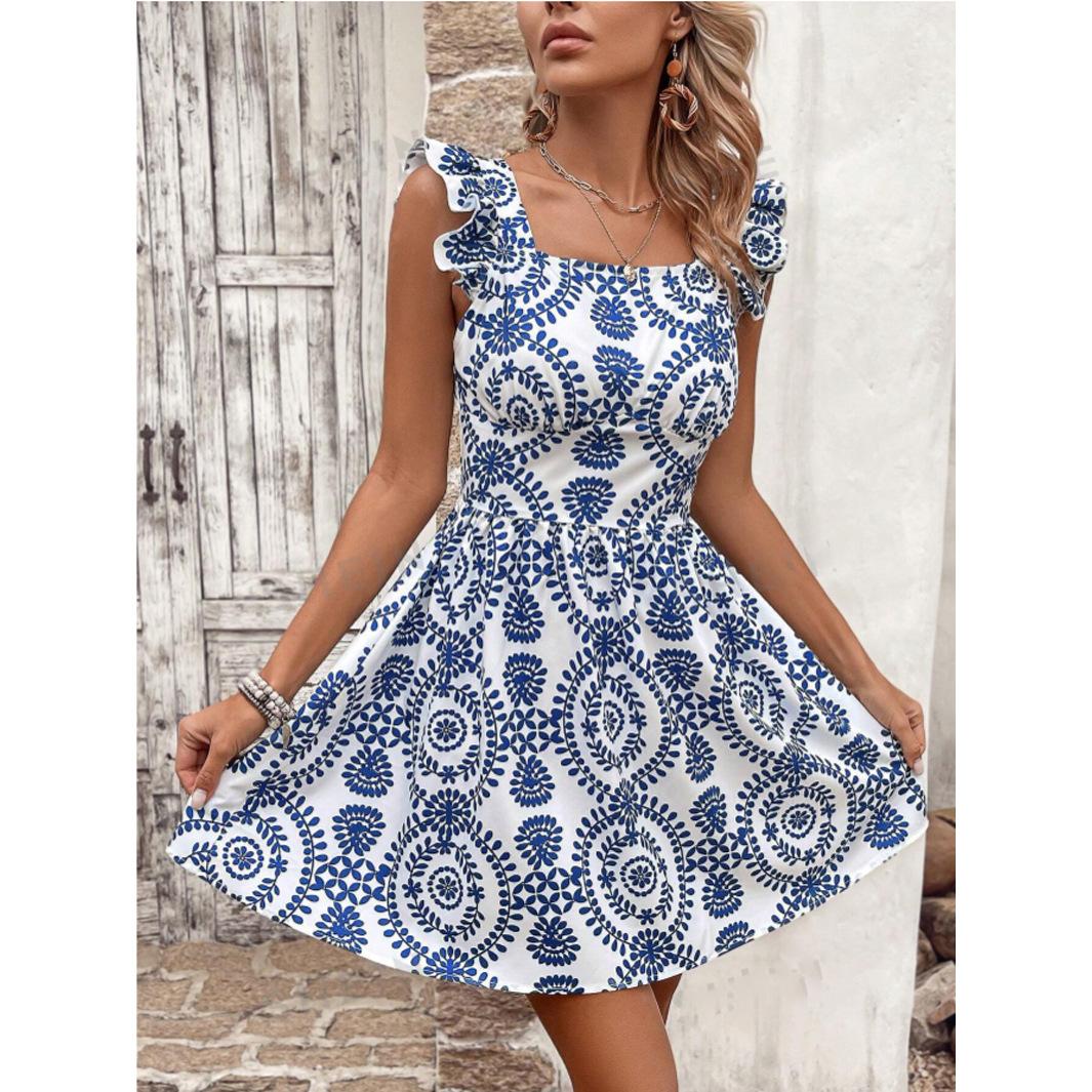 Transfronterizo 2025 Primavera y Verano Nuevo Europeo y Americano Casual VCAY Vestido de Tirantes con Volantes para Mujer Estampado Completo con Cordones
