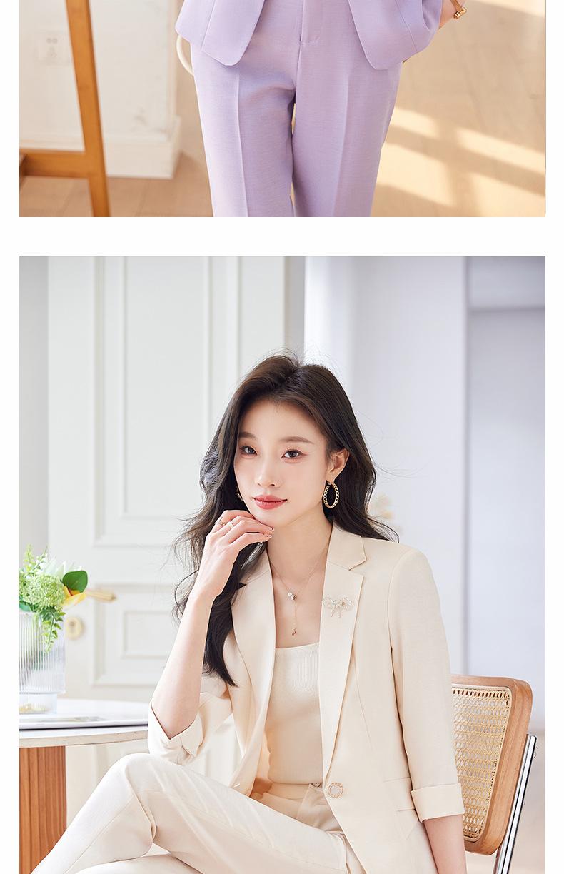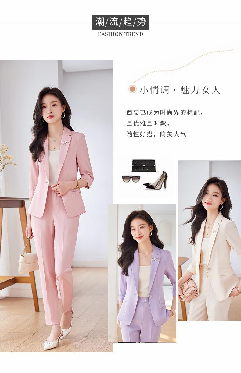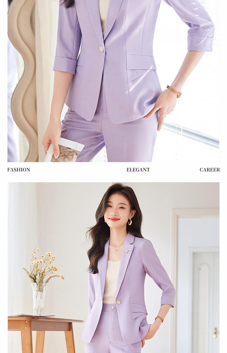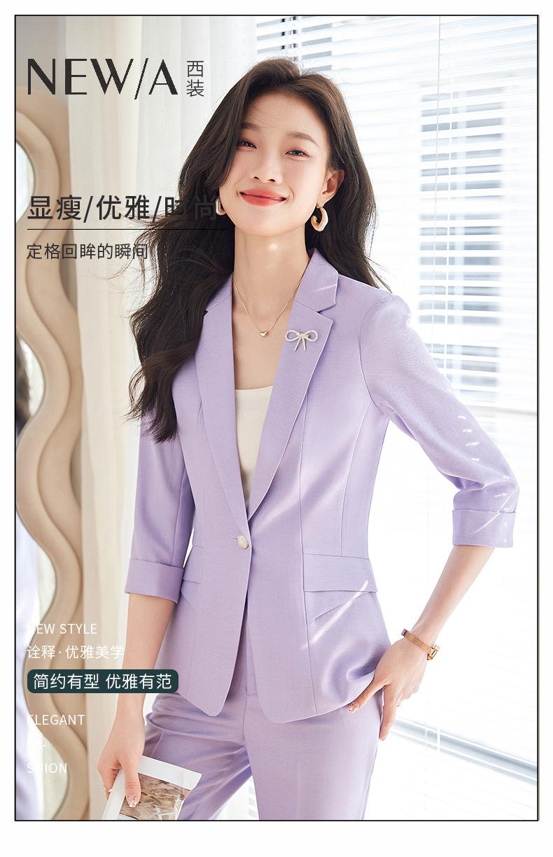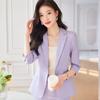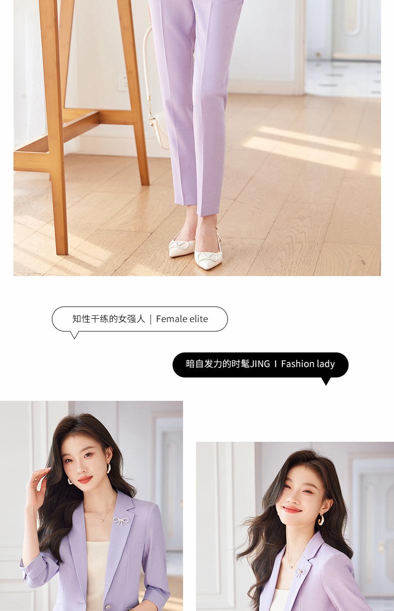 Traje pequeño profesional de manga 3/4 morado nuevo de primavera y otoño 2024, chaqueta con cuello, traje de dos piezas con pantalones para mujer, temperamento