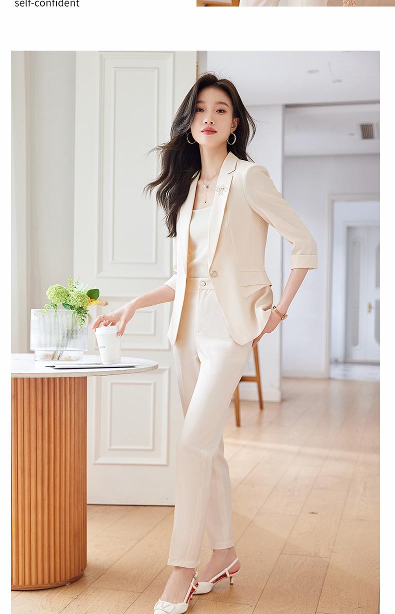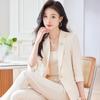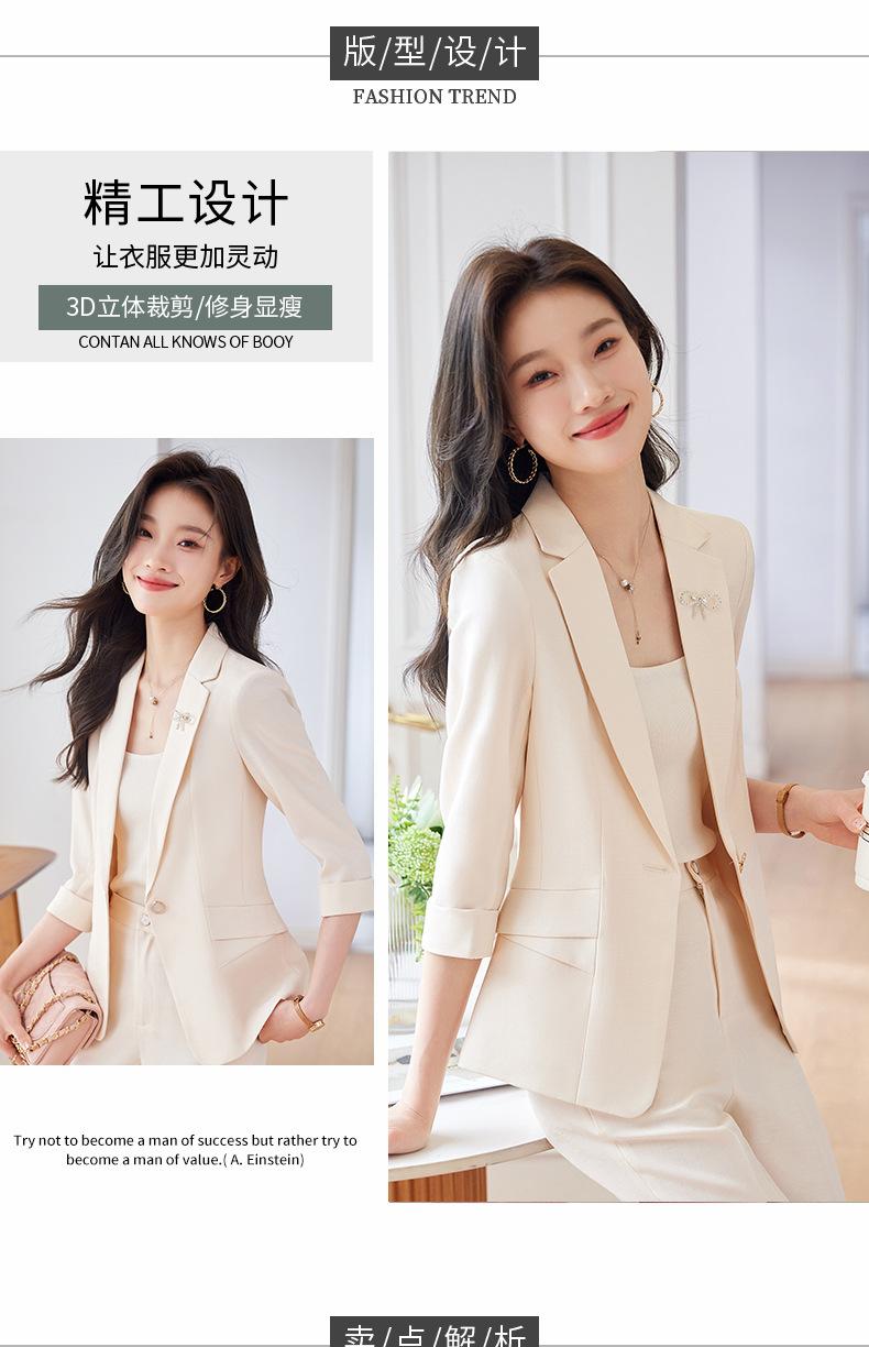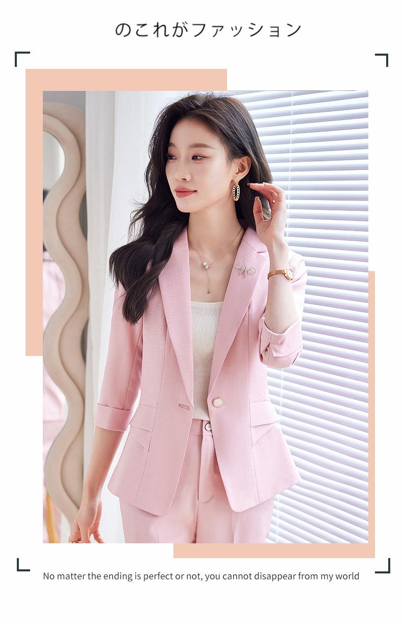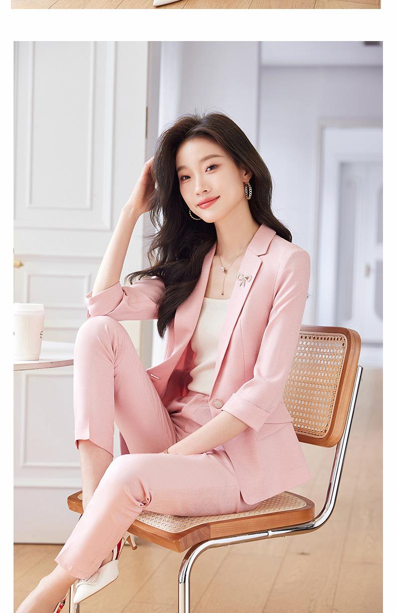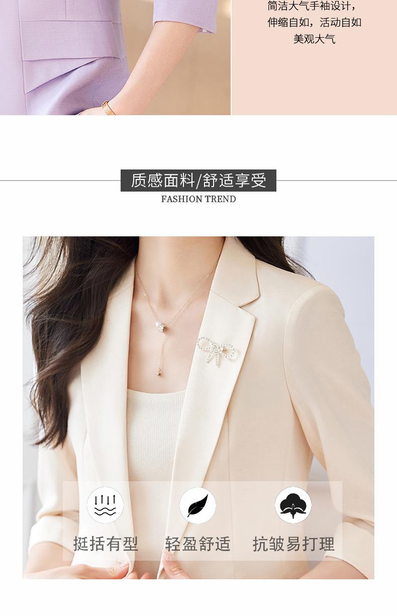 Traje pequeño profesional de manga 3/4 morado nuevo de primavera y otoño 2024, chaqueta con cuello, traje de dos piezas con pantalones para mujer, temperamento