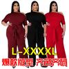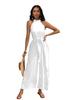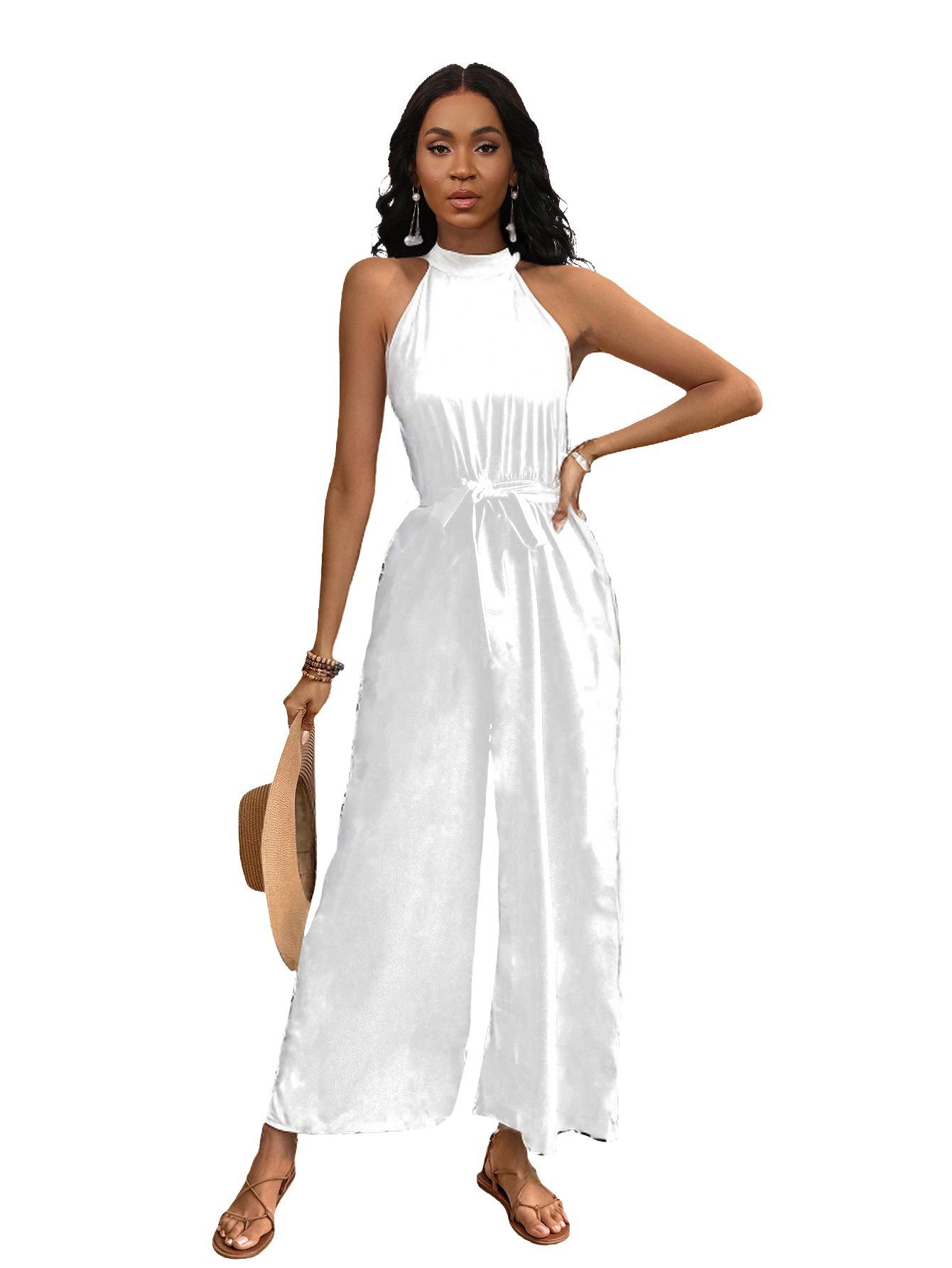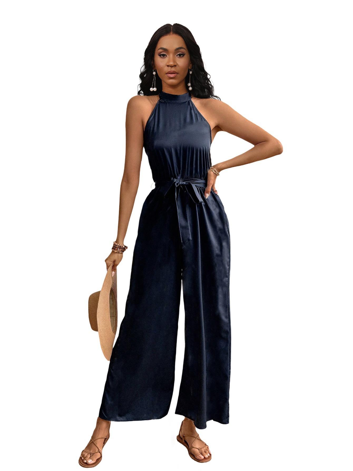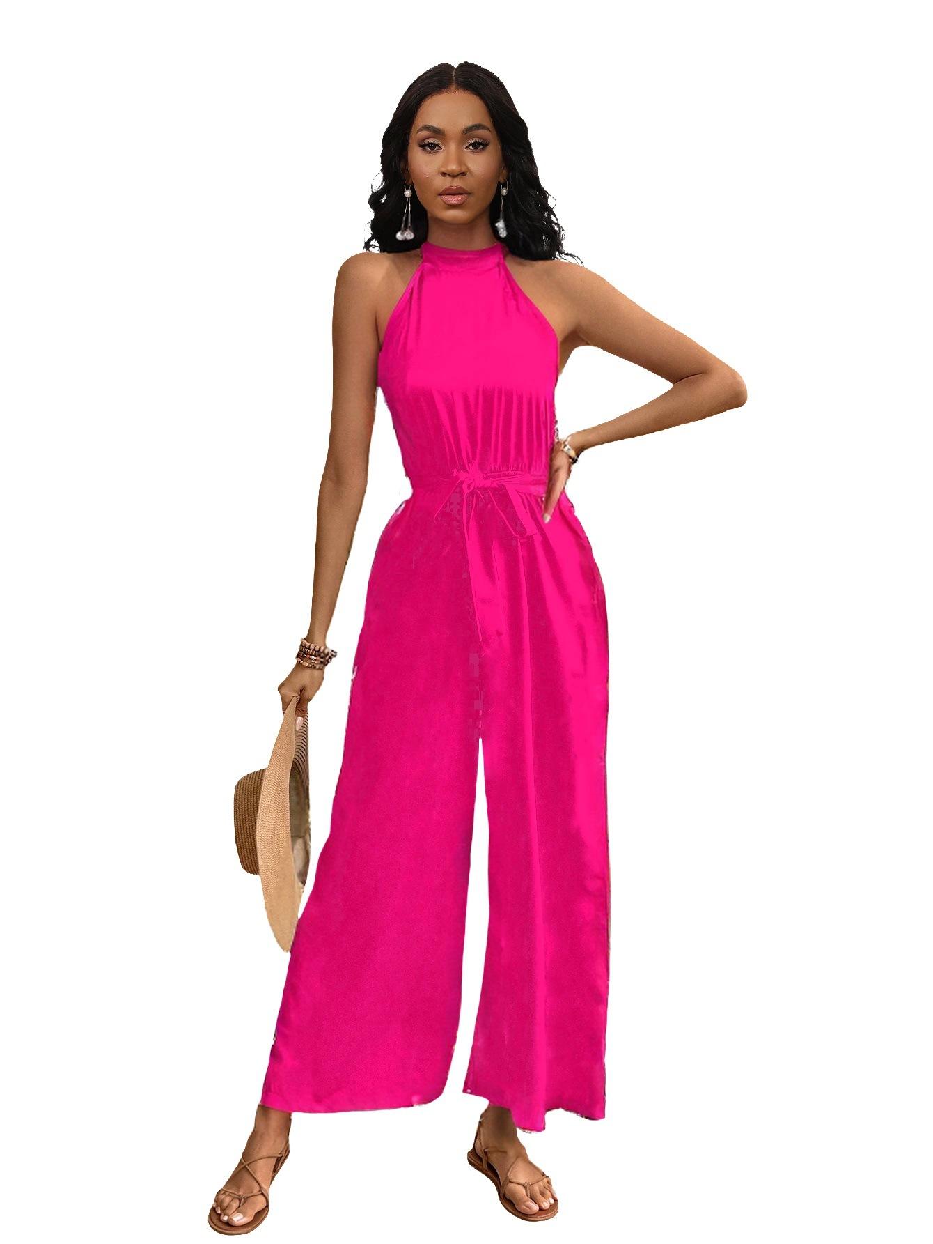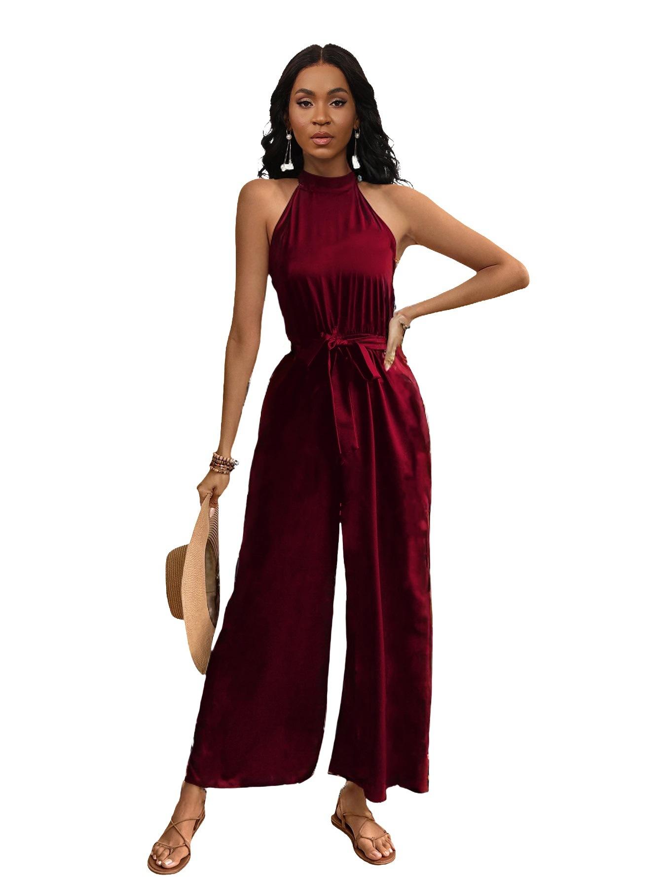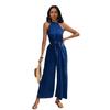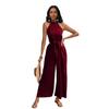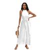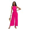 Jx5882 Amazon Estación Independiente Europeo y Americano Transfronterizo Sexy Moda Casual Color Puro Cuello Redondo Pierna Ancha Mono