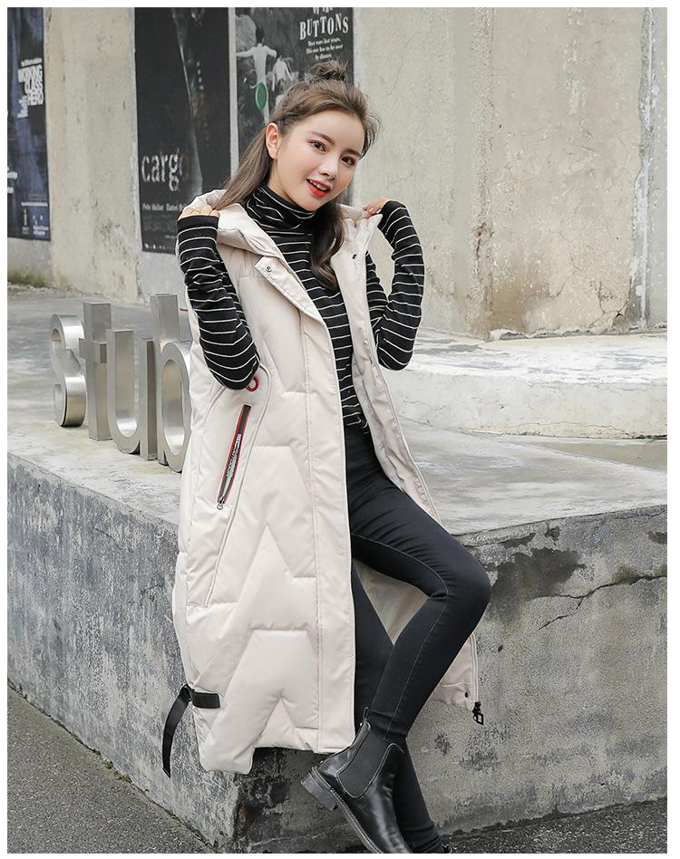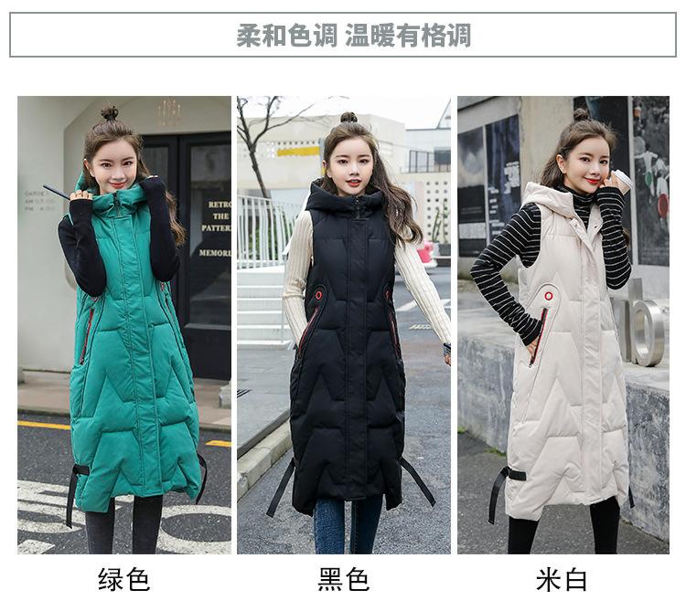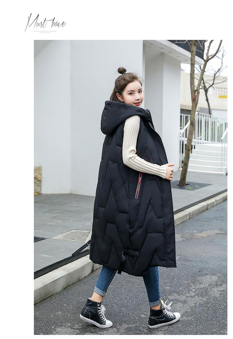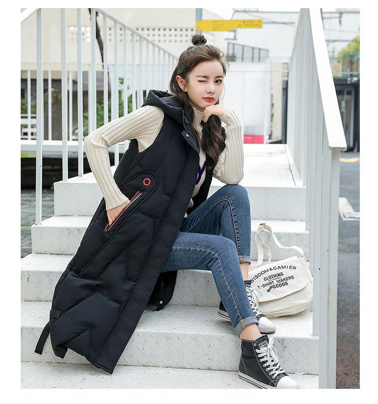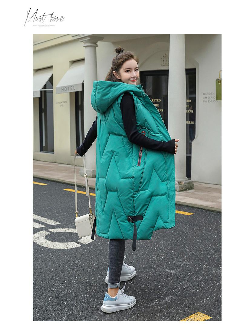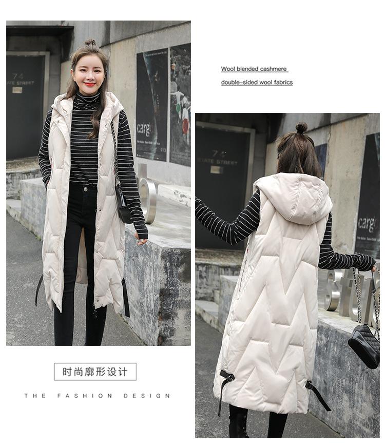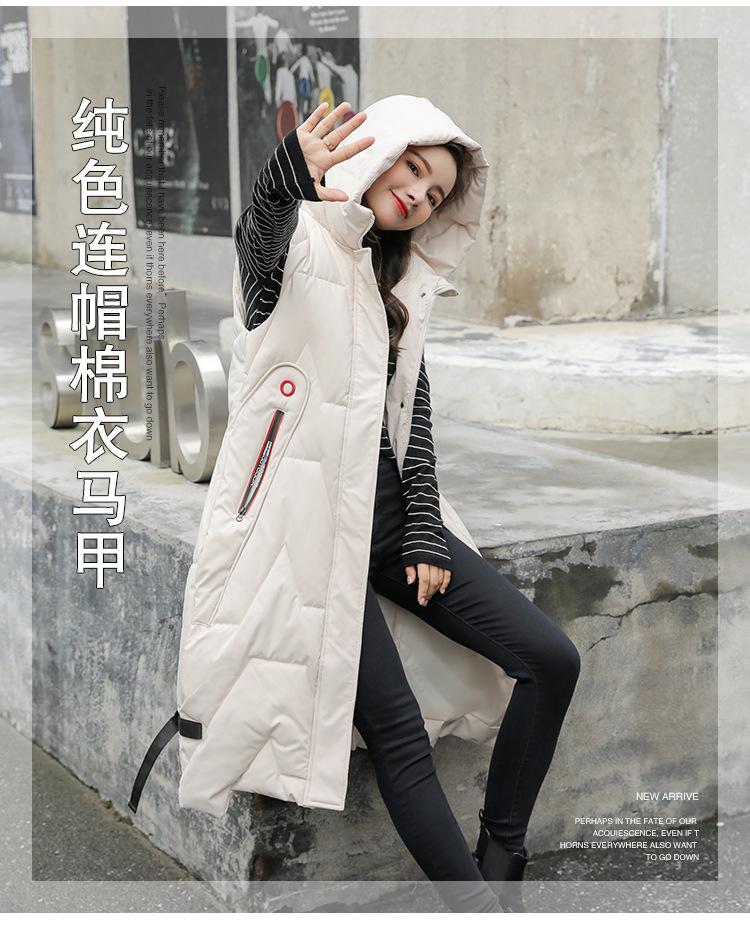 Chaleco de algodón acolchado estilo coreano fuera de temporada para mujer de longitud media 2023 moda otoño e invierno hasta la rodilla cálido con capucha