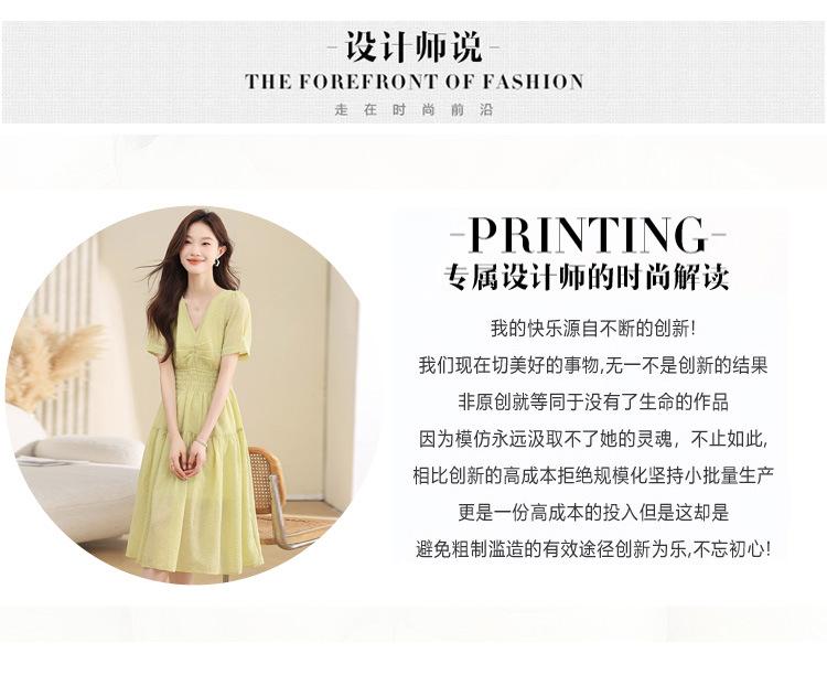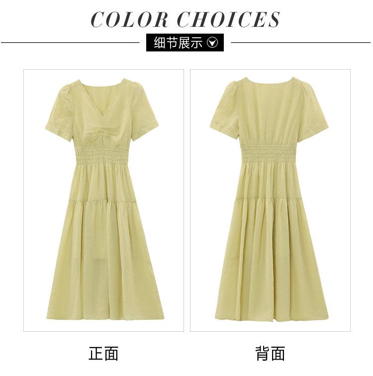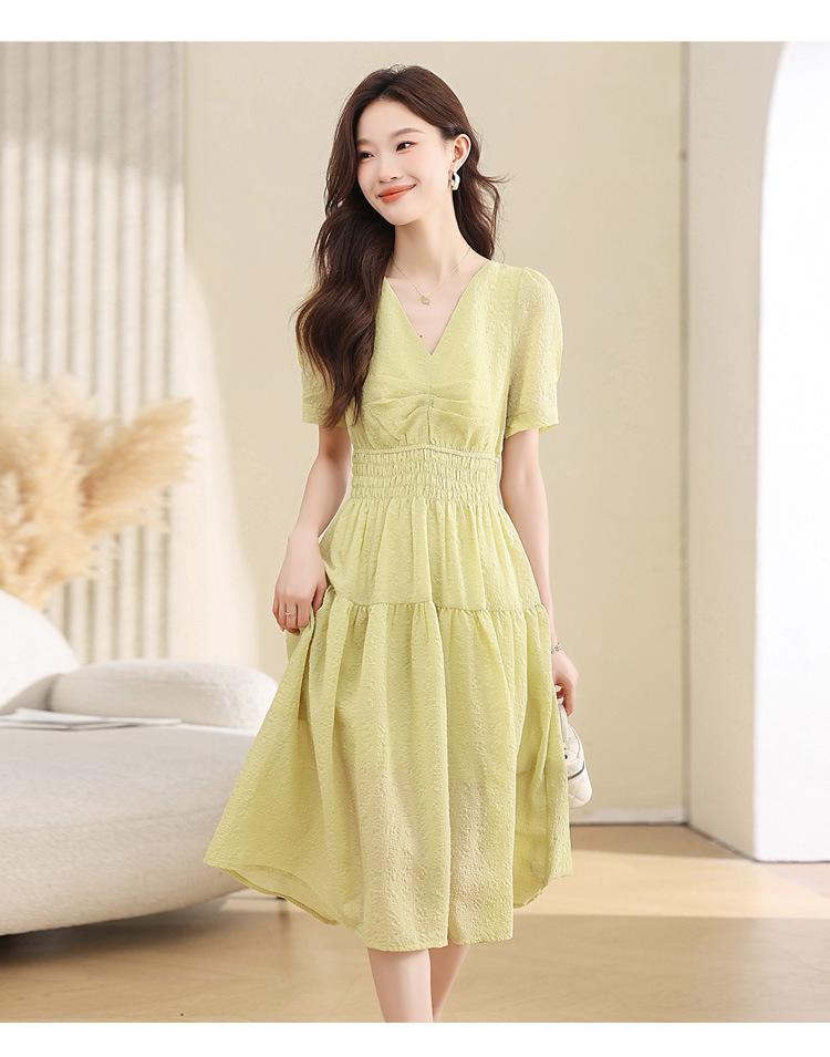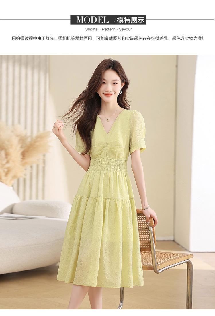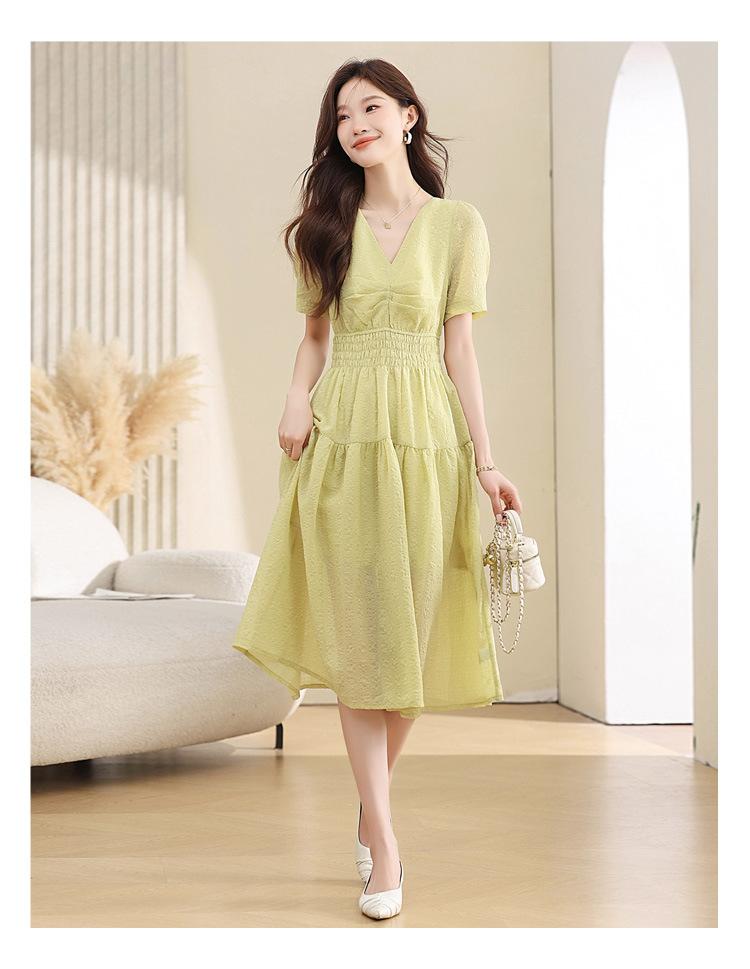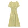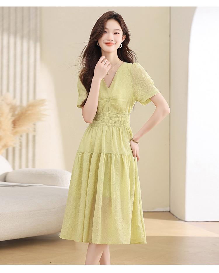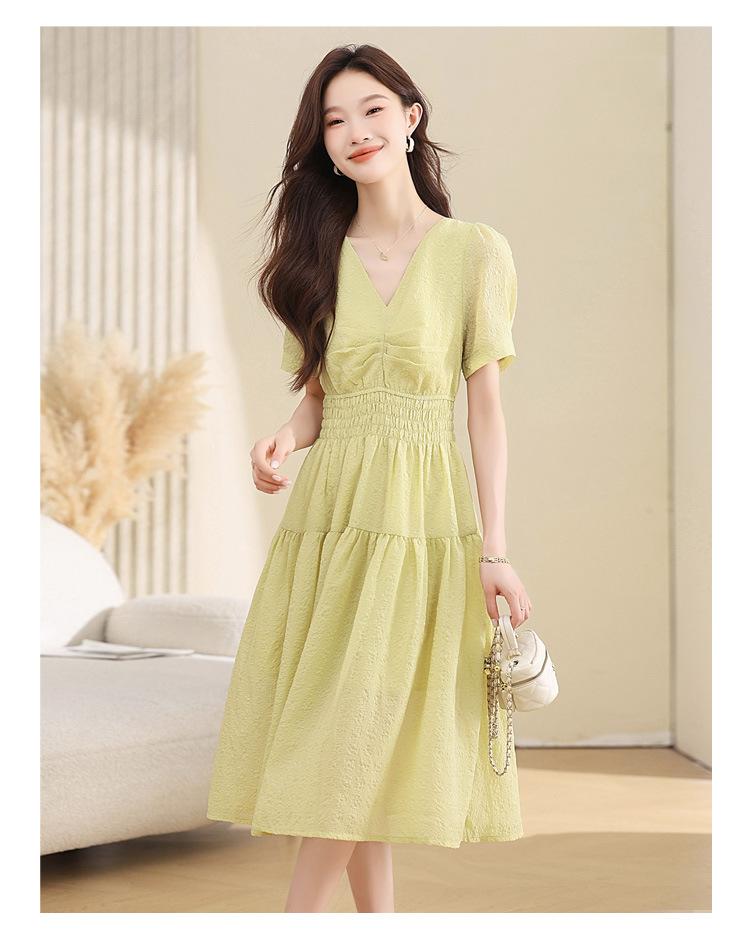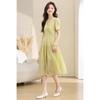 Pausa para el té Vestido verde francés para mujer Verano Nuevo estilo Elegante Suave Cuello en V Cintura Vestido de hadas hermoso