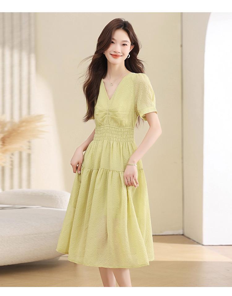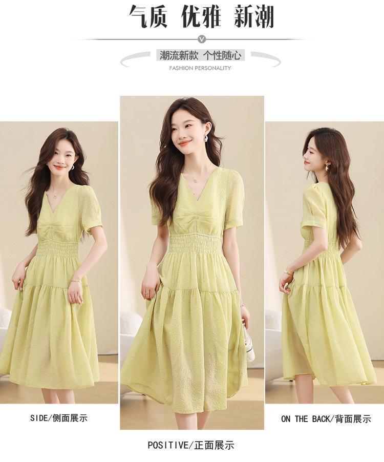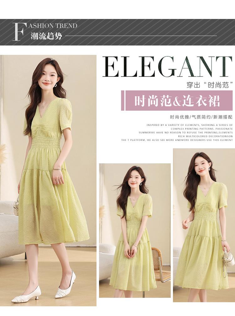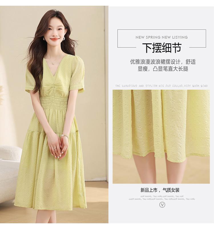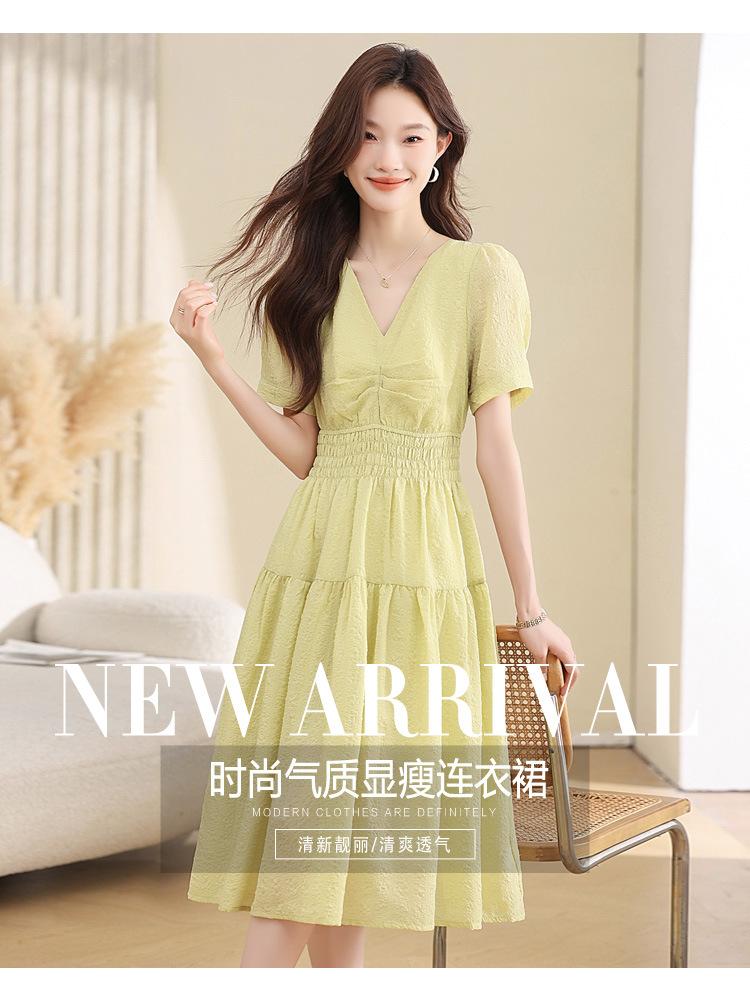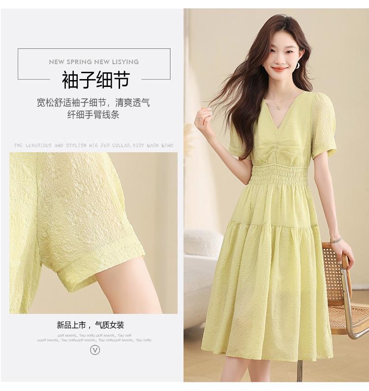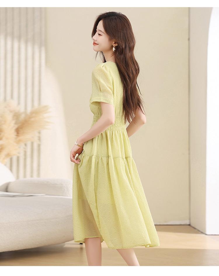 Pausa para el té Vestido verde francés para mujer Verano Nuevo estilo Elegante Suave Cuello en V Cintura Vestido de hadas hermoso