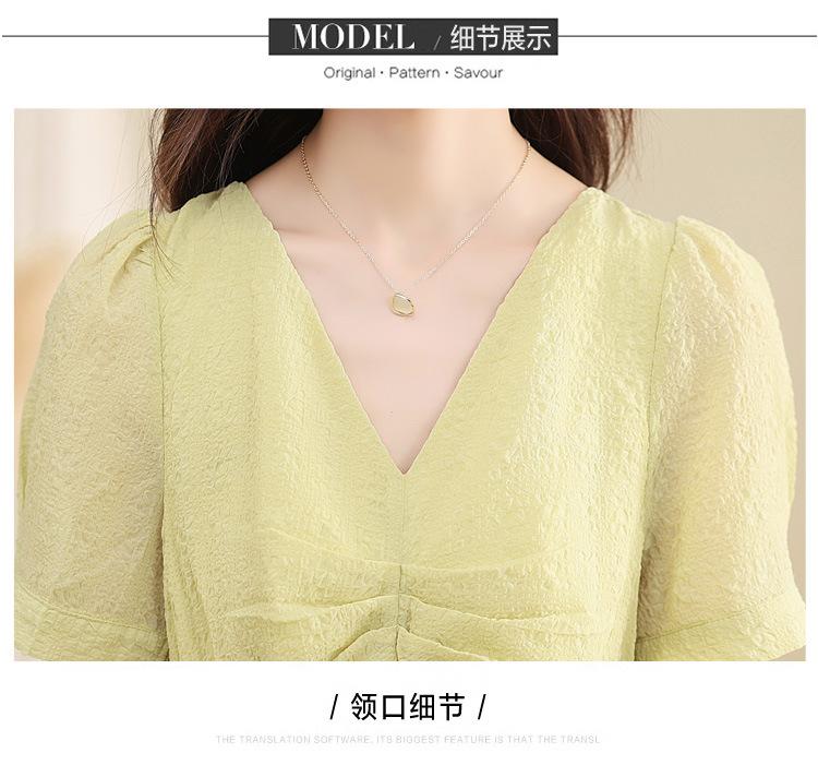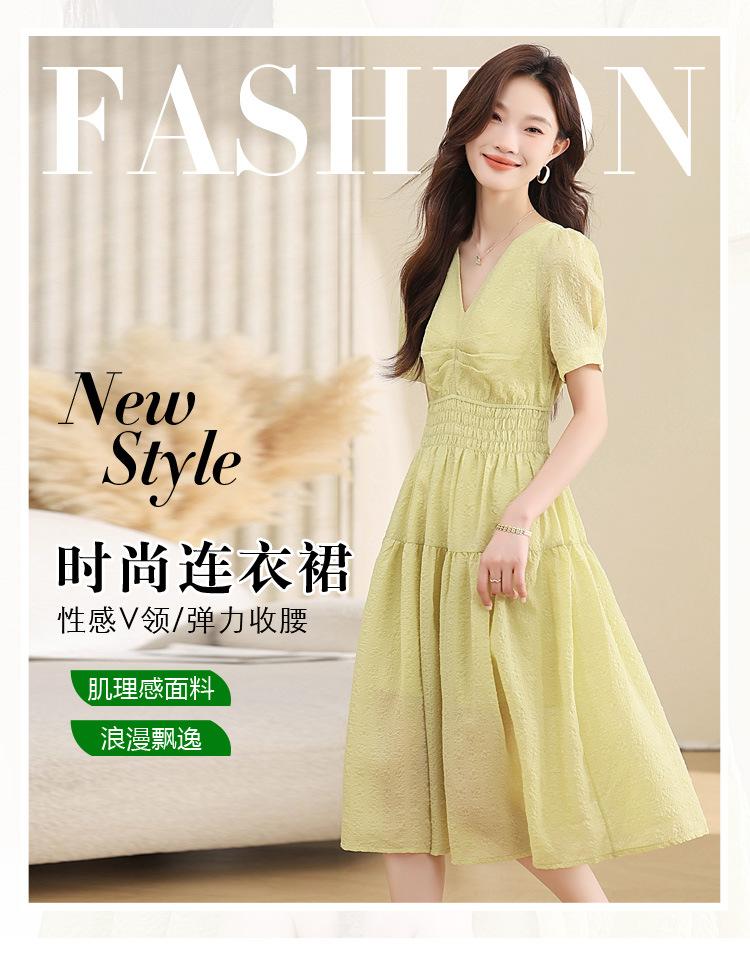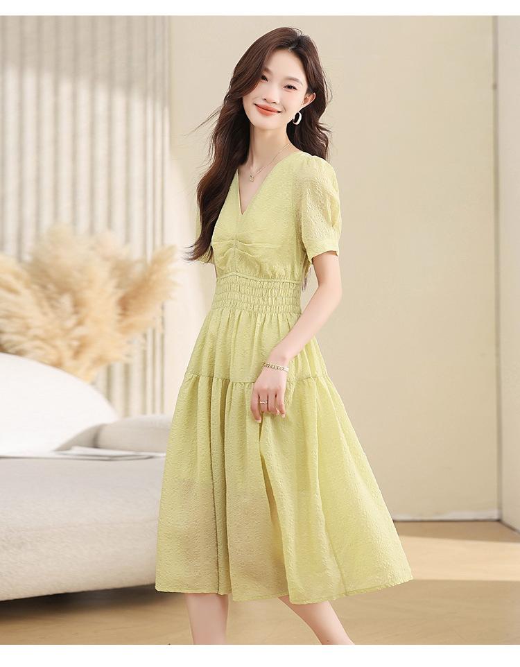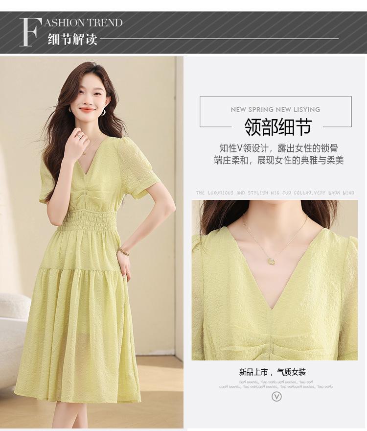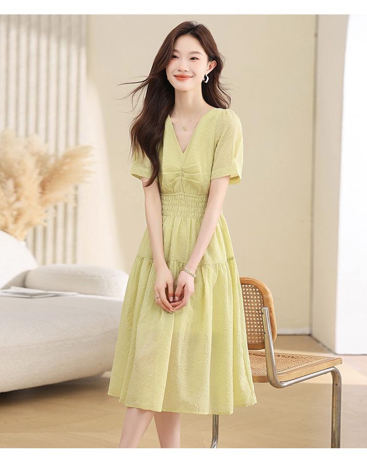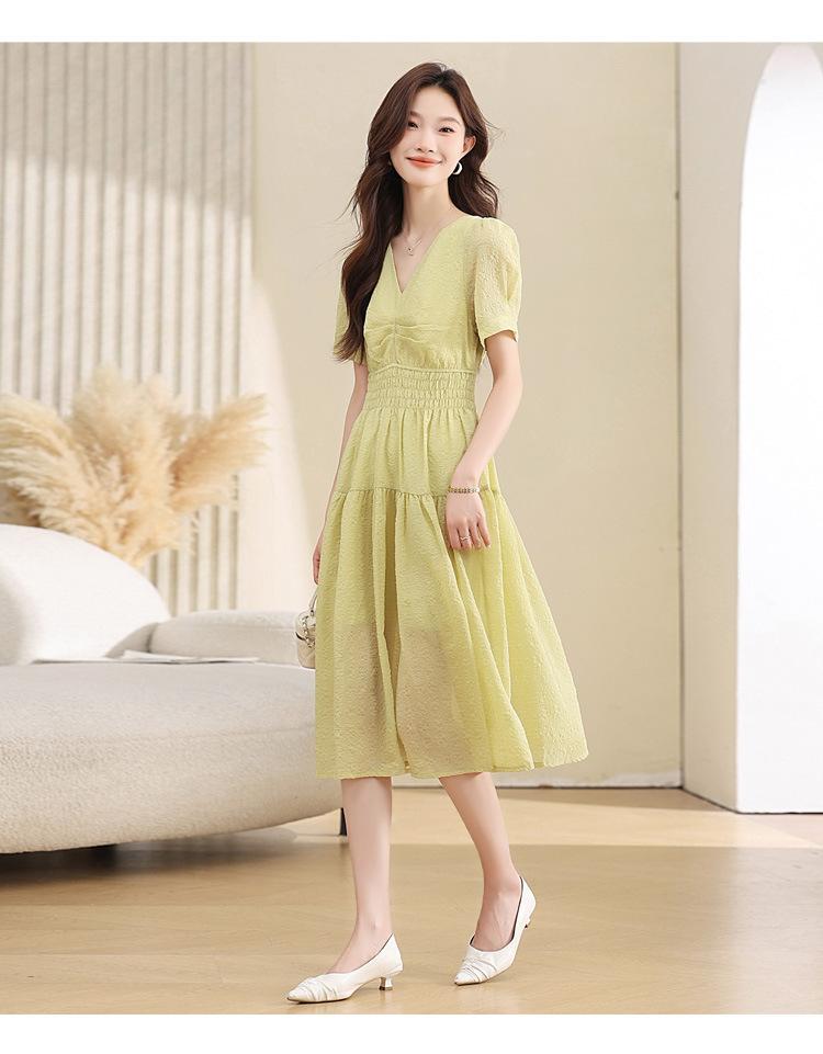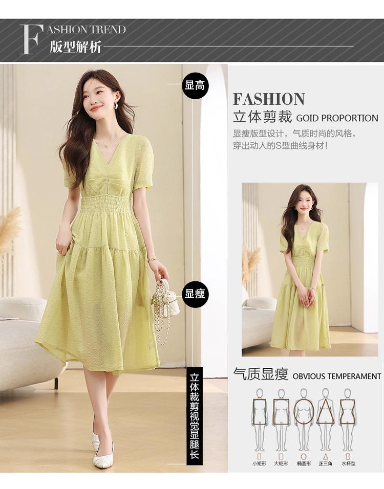 Pausa para el té Vestido verde francés para mujer Verano Nuevo estilo Elegante Suave Cuello en V Cintura Vestido de hadas hermoso