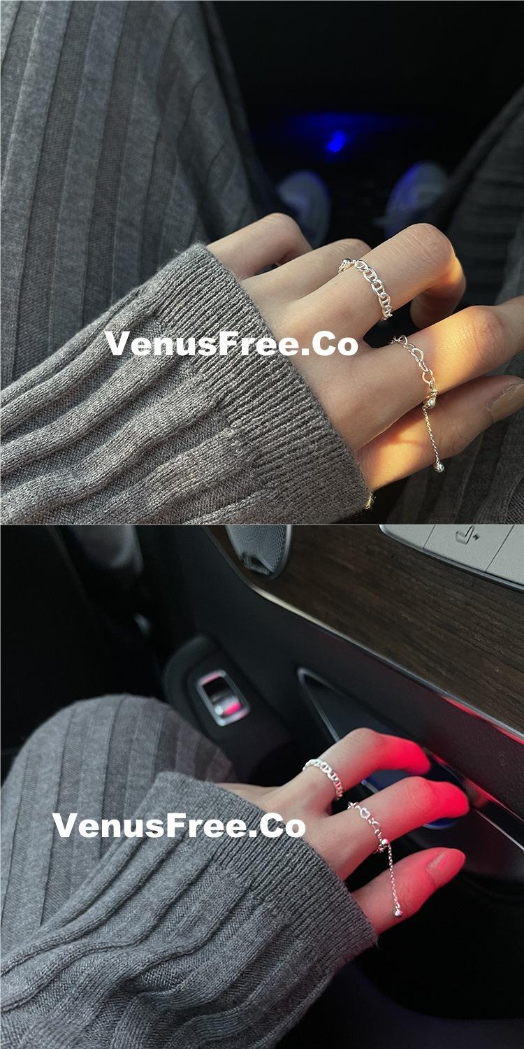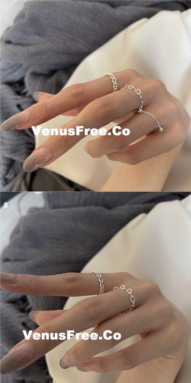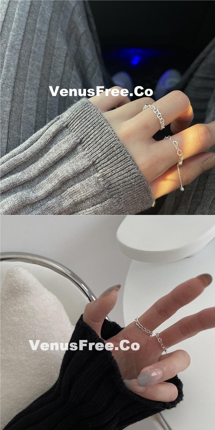Anillo Ajustable de Cadena Minimalista para Mujer, Anillo de Colección Hueca de Plata S925 Moderno y Elegante, Anillo de Dedo Índice a la Moda