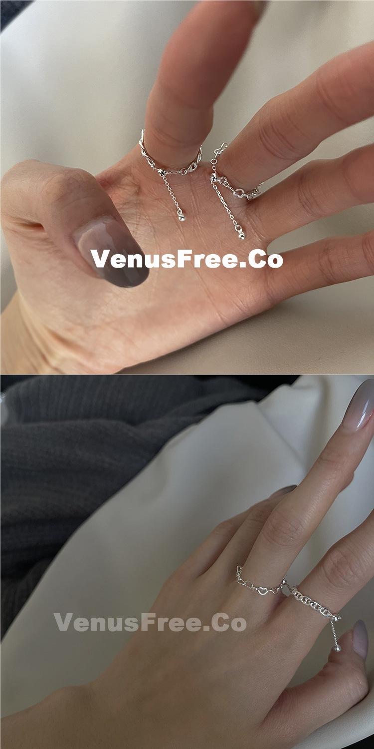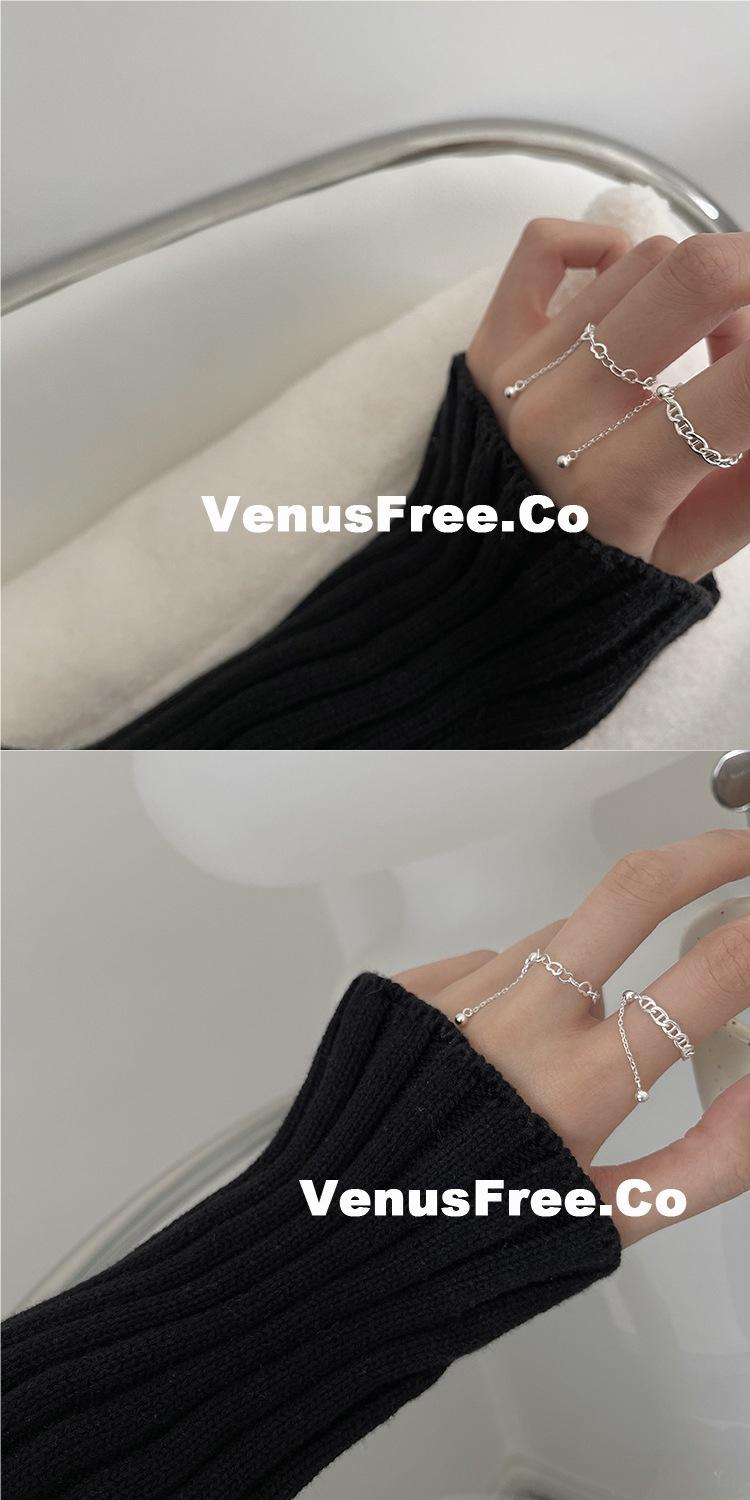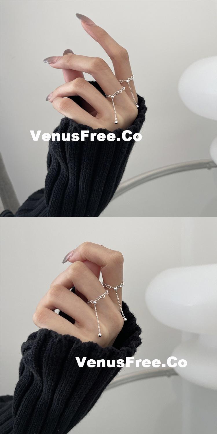 Anillo Ajustable de Cadena Minimalista para Mujer, Anillo de Colección Hueca de Plata S925 Moderno y Elegante, Anillo de Dedo Índice a la Moda