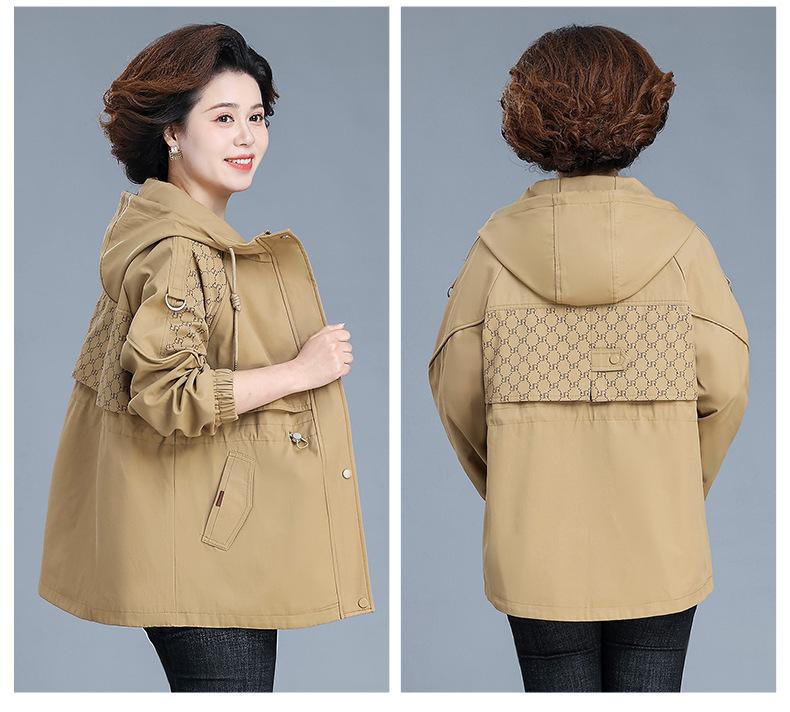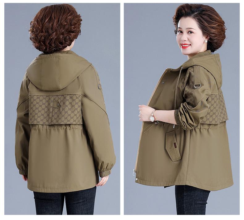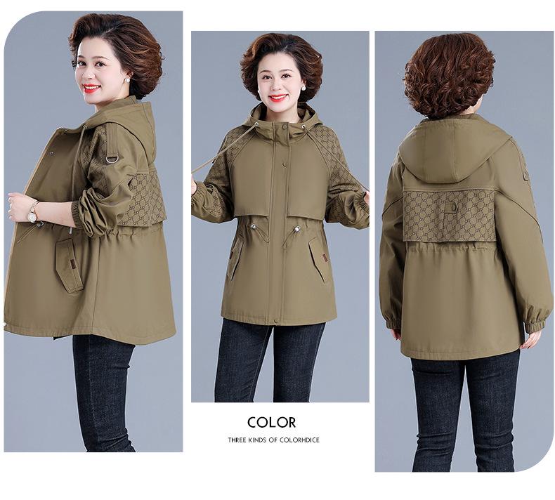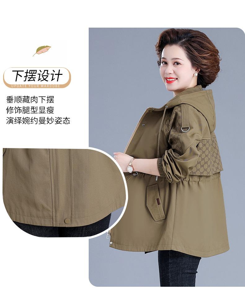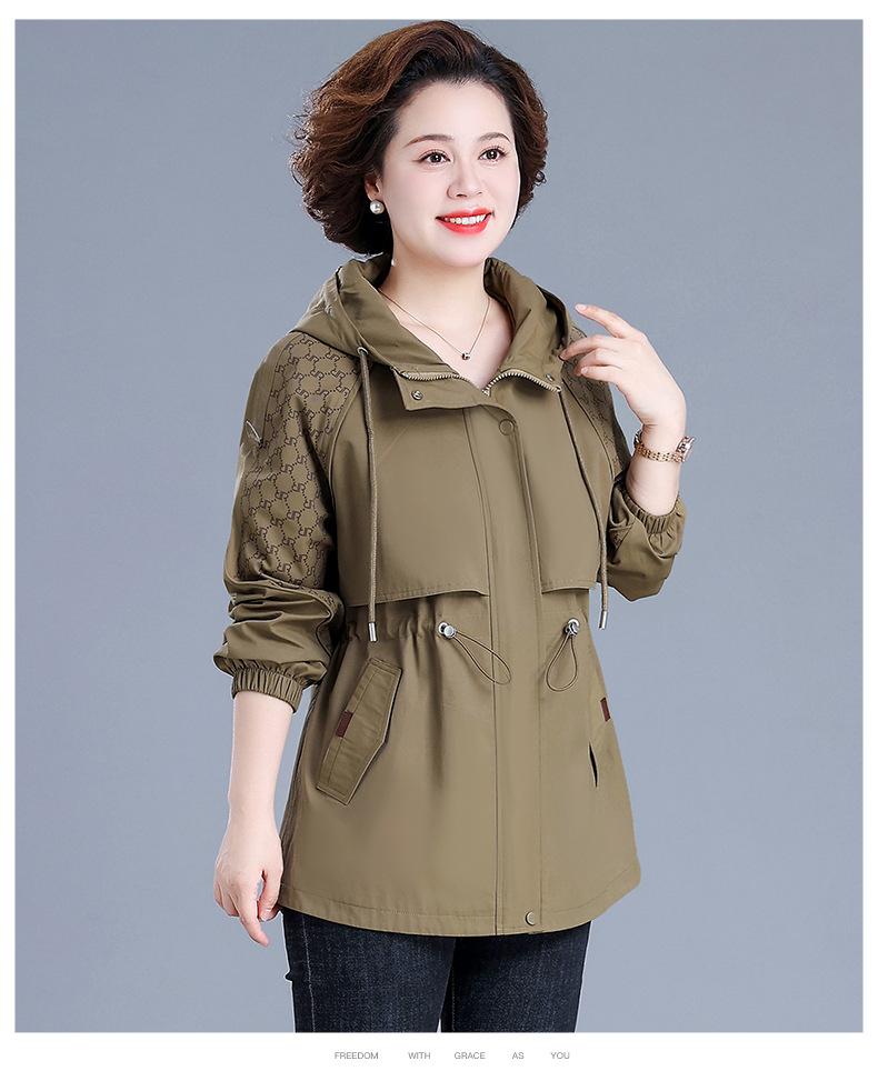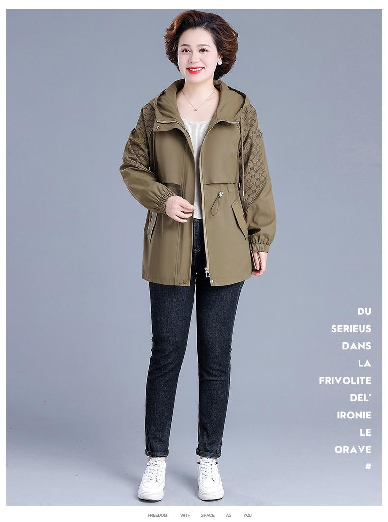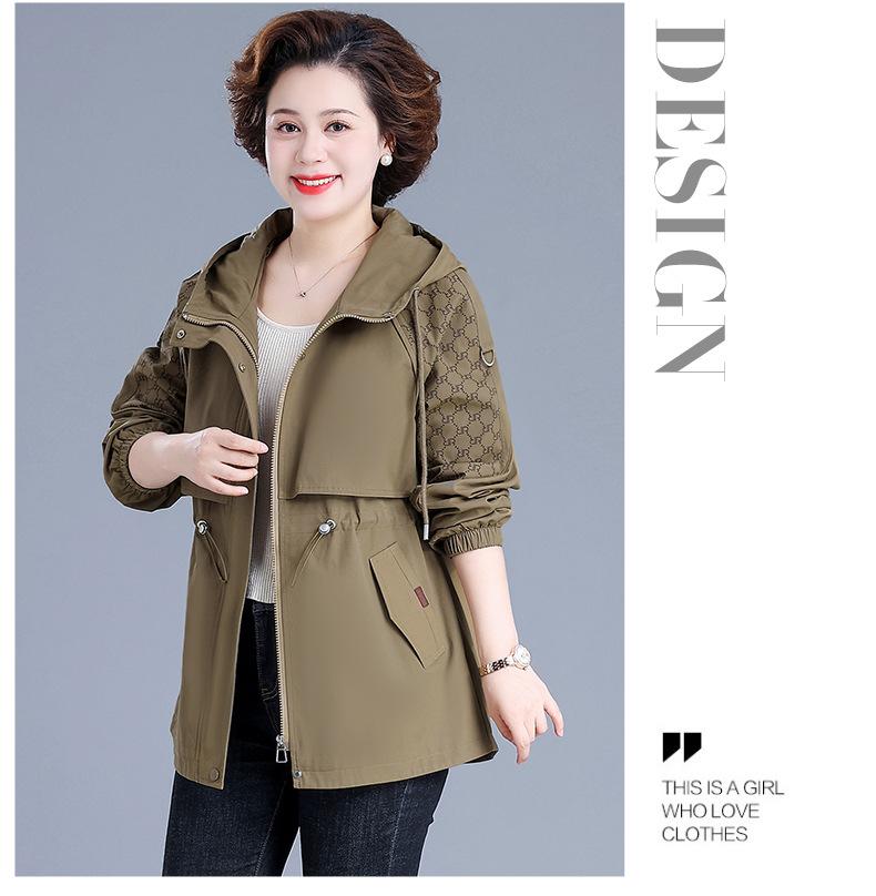 Recién Llegado Cortavientos Largo Medio Estilo Coreano Madre de Mediana Edad Abrigo de Primavera Talla Grande Chaqueta de Primavera y Otoño para Mujeres de Mediana Edad