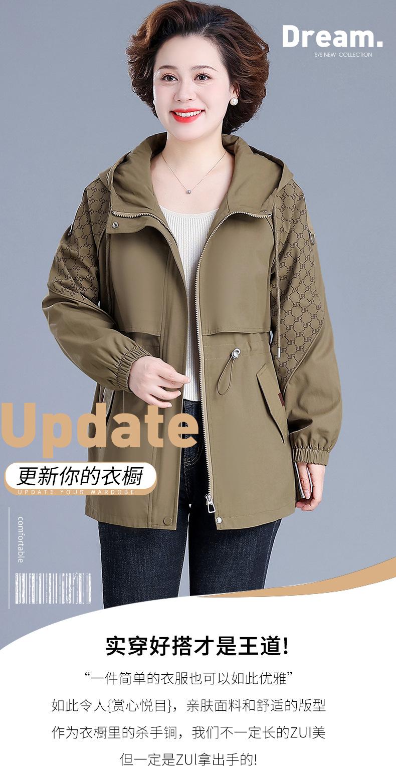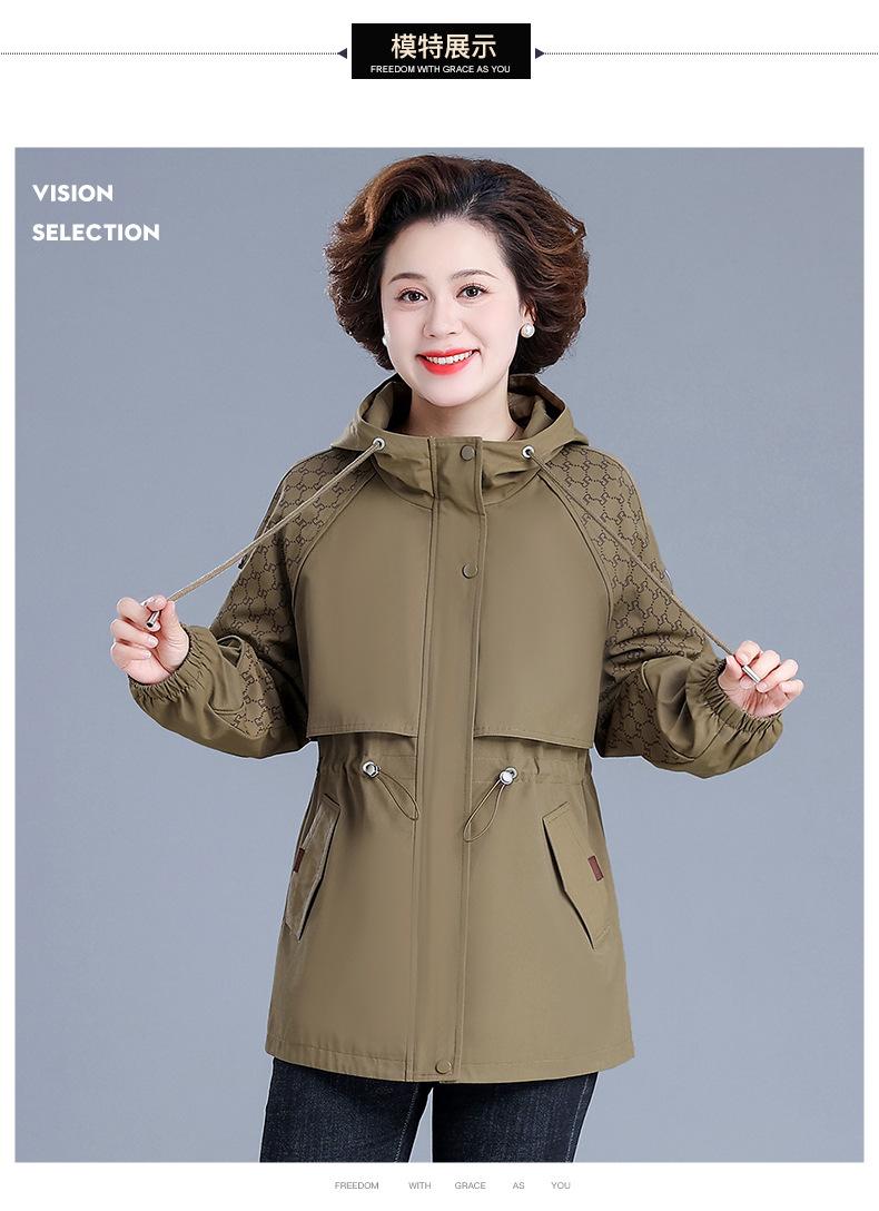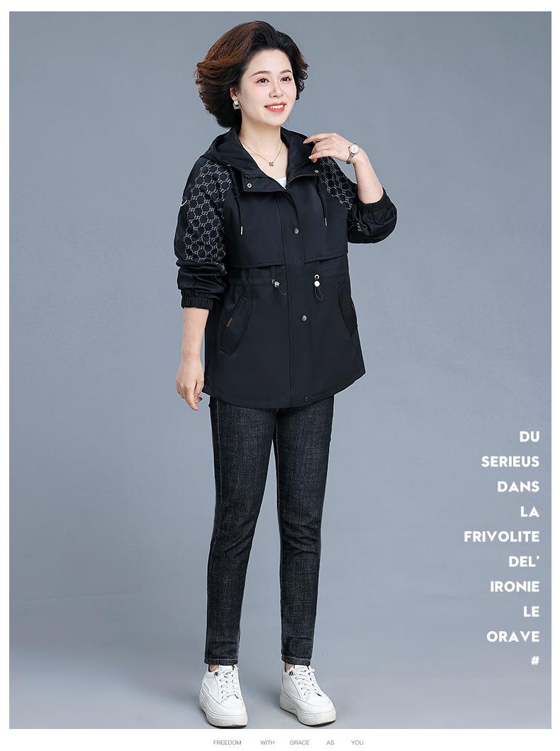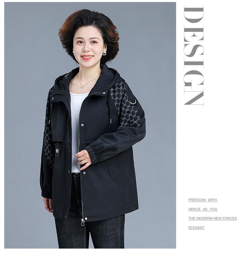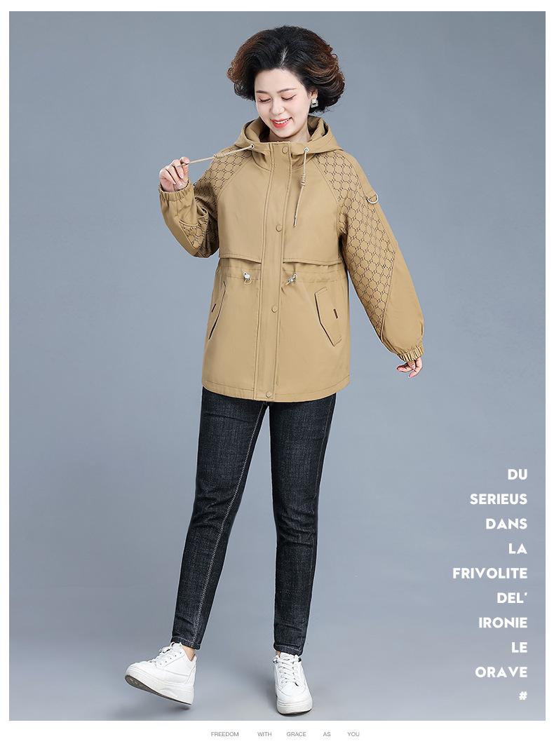 Recién Llegado Cortavientos Largo Medio Estilo Coreano Madre de Mediana Edad Abrigo de Primavera Talla Grande Chaqueta de Primavera y Otoño para Mujeres de Mediana Edad