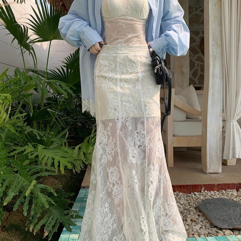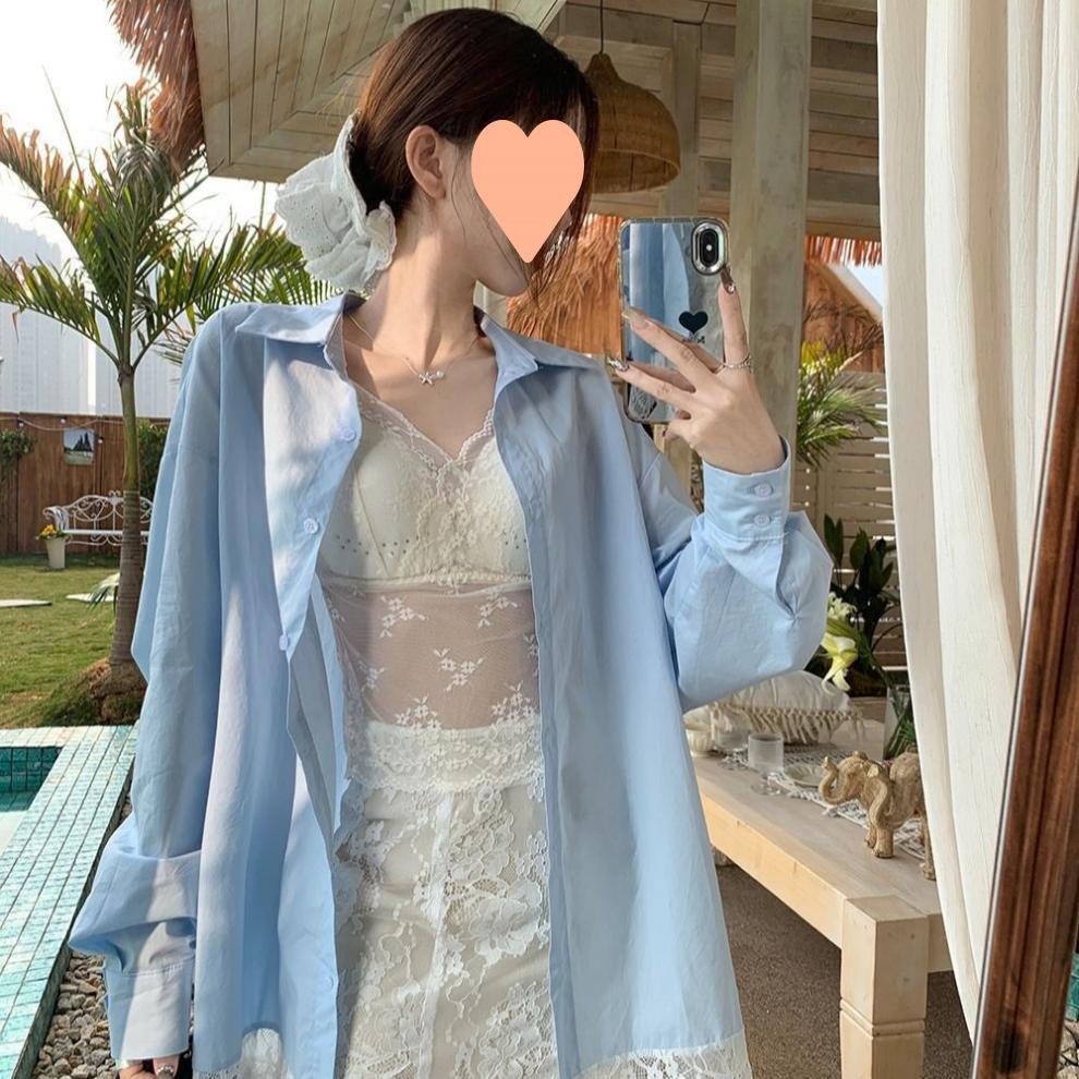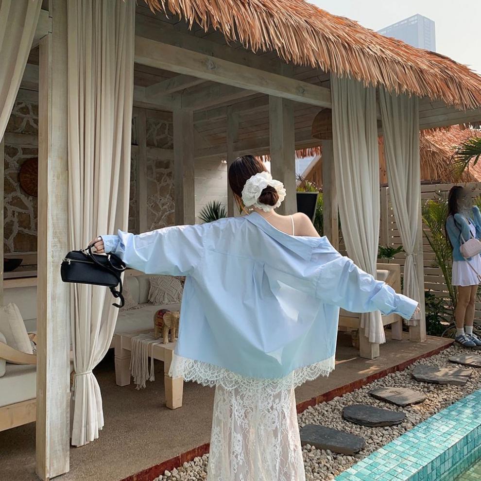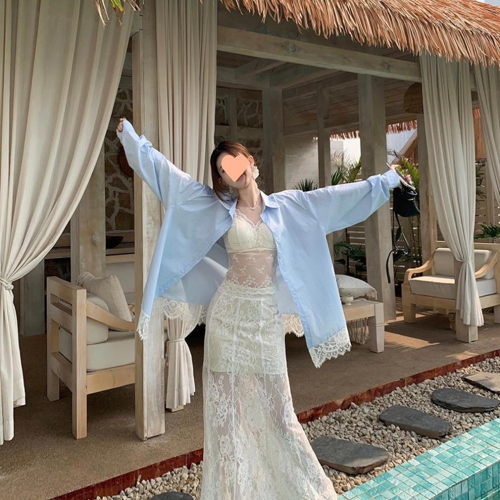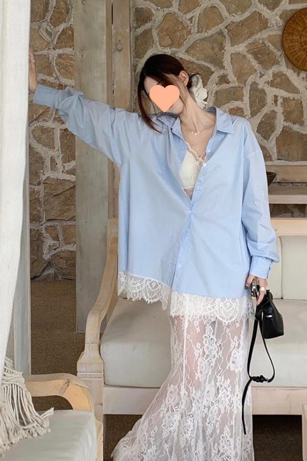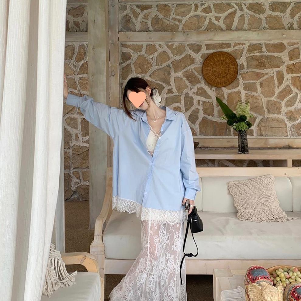 Camisa de Encaje Holgada y Versátil para Mujer Primavera y Verano Nuevo Traje Delgado Largo de Encaje