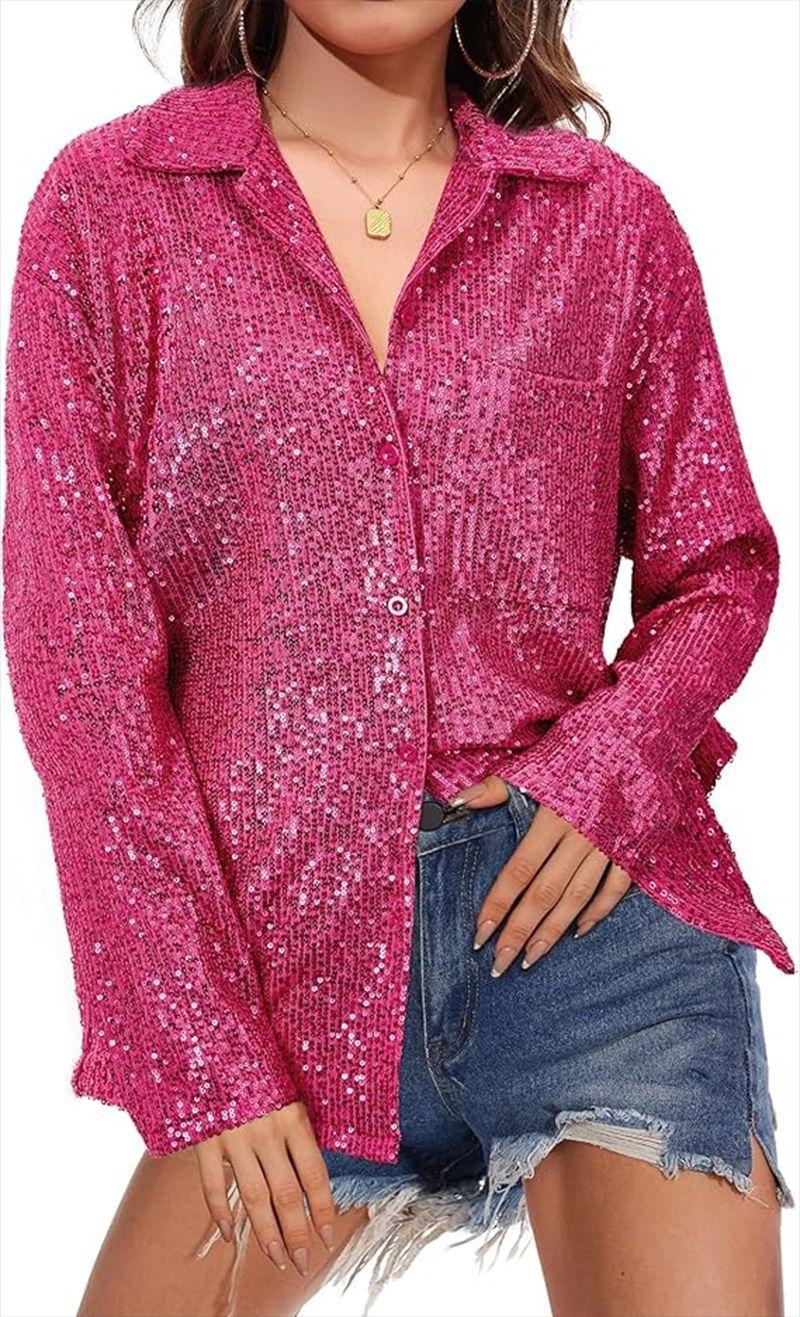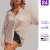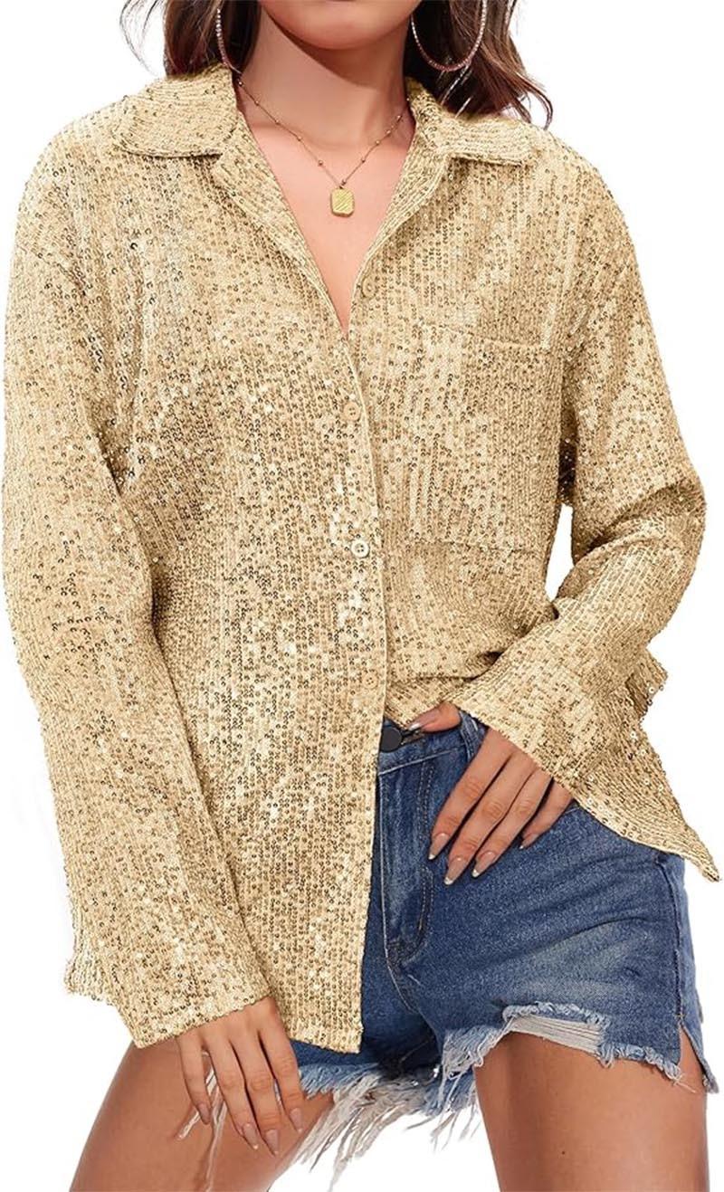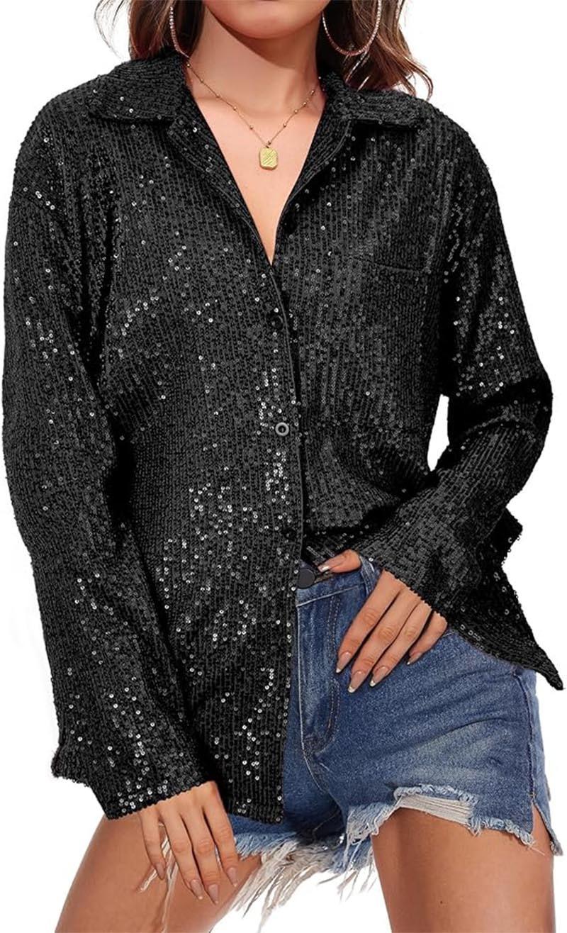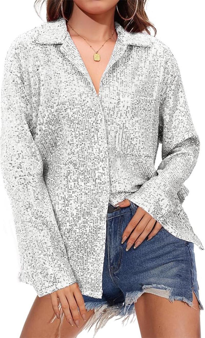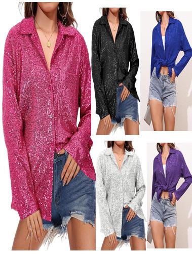 Ropa de Mujer Transfronteriza Europea y Americana Primavera 2025 Amazon Nueva Moda Lentejuelas Solapa Manga Larga Camisa Elegante Casual