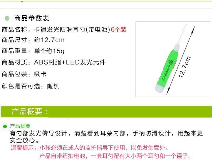 Cucharilla para oídos luminosa, Cucharilla para oídos de moda, Nueva cucharilla para oídos, Cucharilla para oídos antideslizante para niños, Limpiador de oídos de moda