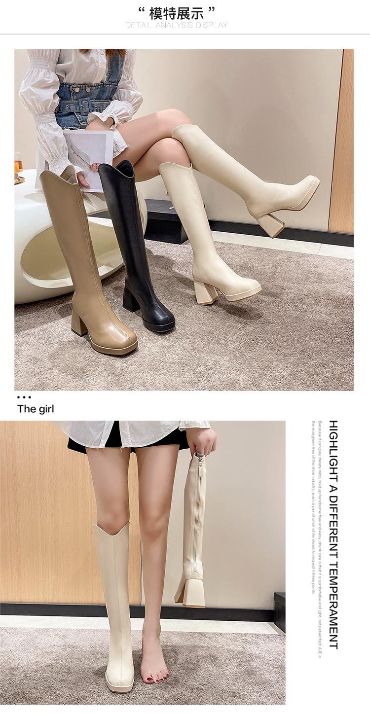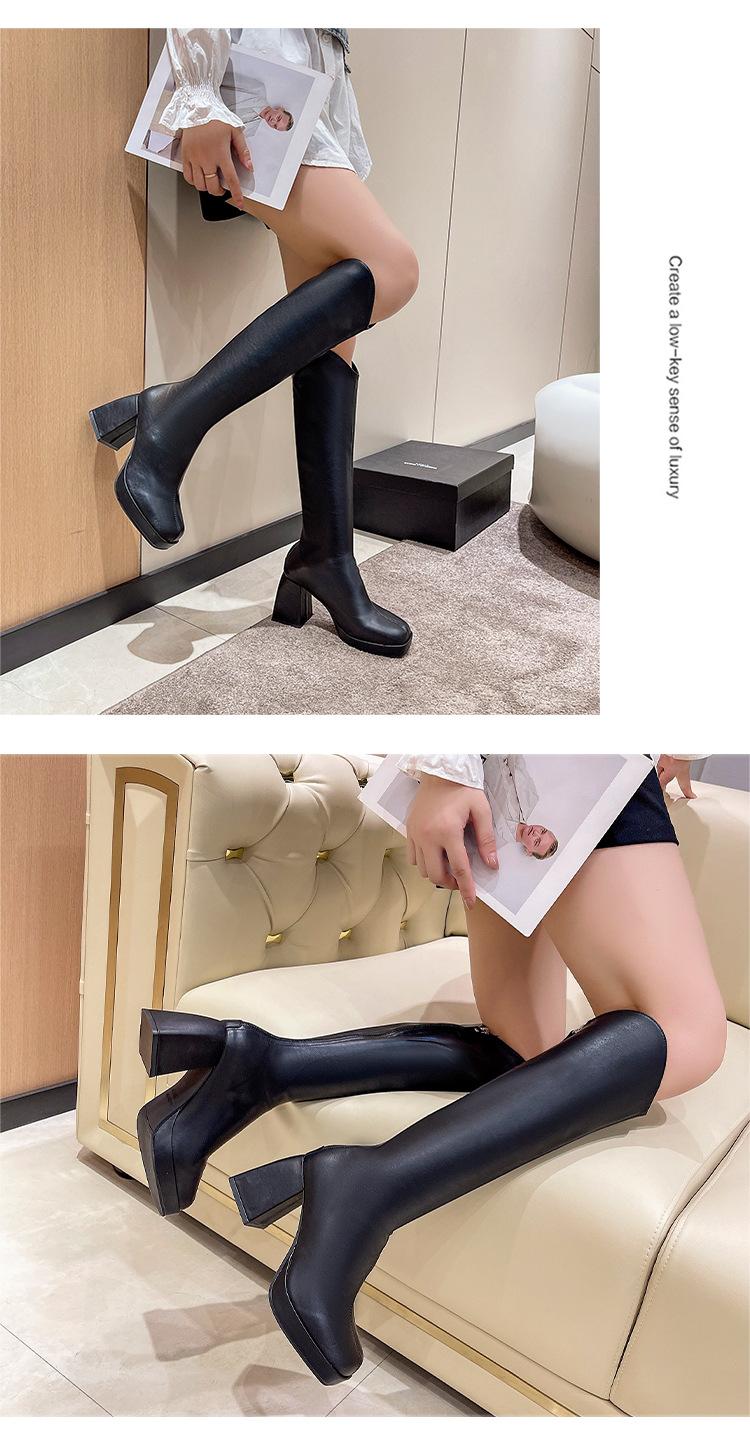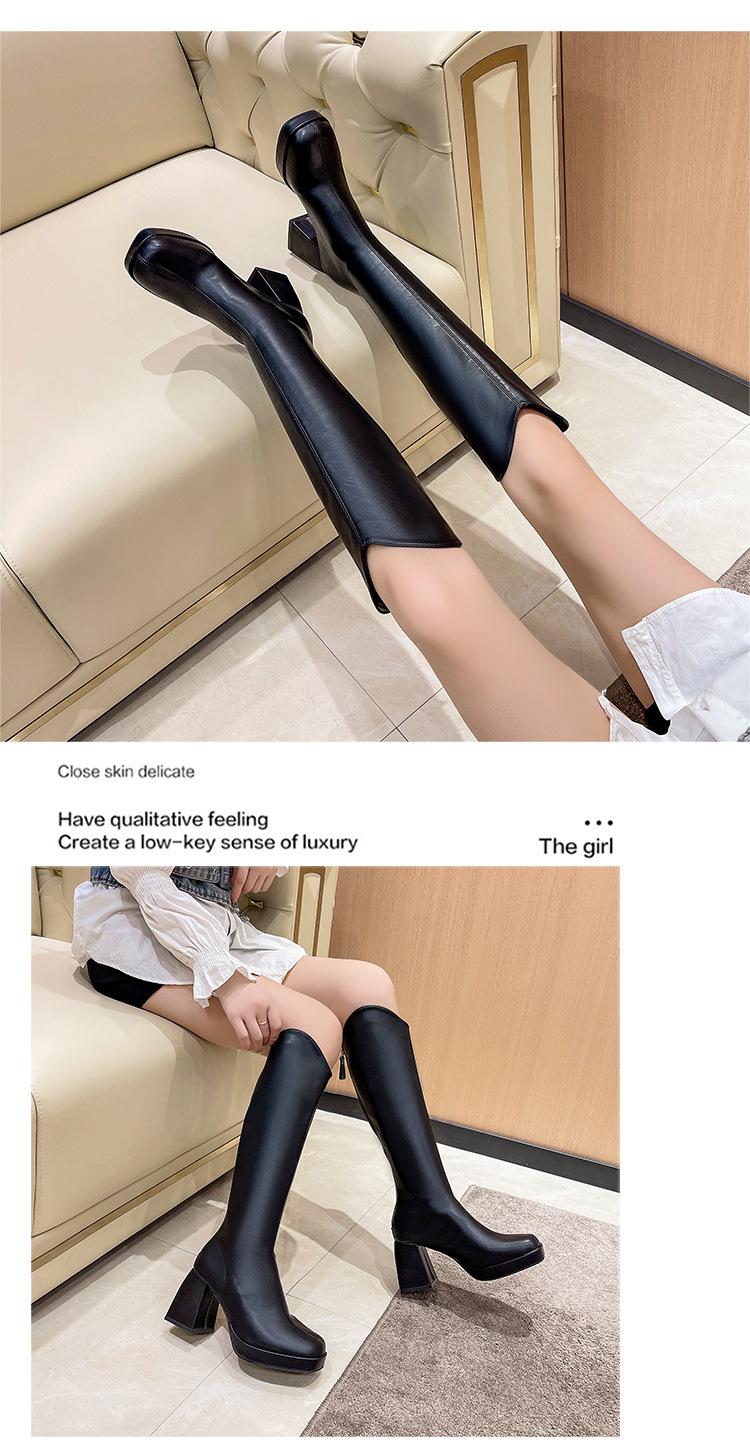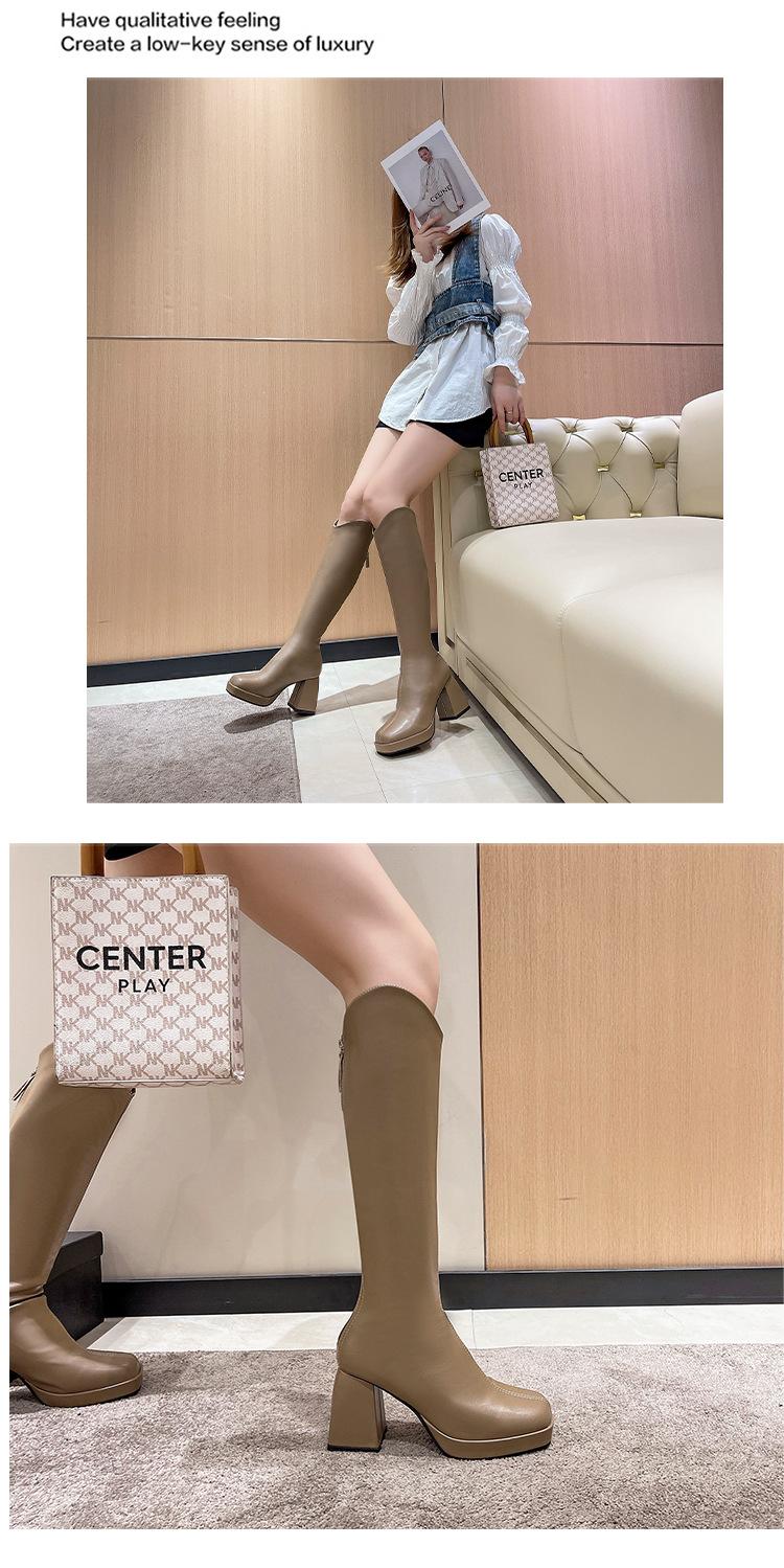 Pero botas altas hasta la rodilla para mujer nuevas de punta cuadrada tacón alto botas de caballero para otoño e invierno 2024 tacón grueso plataforma impermeable botas altas con boca en V