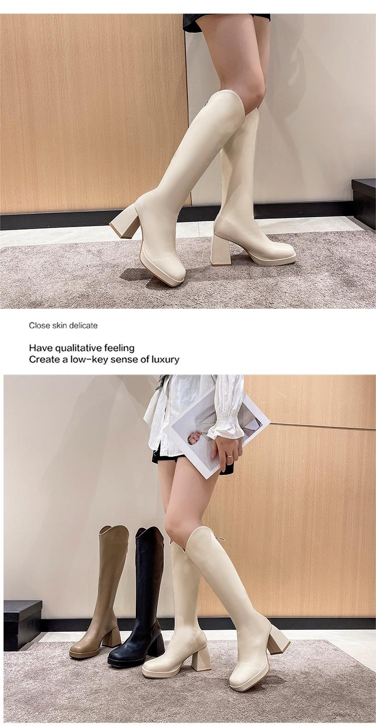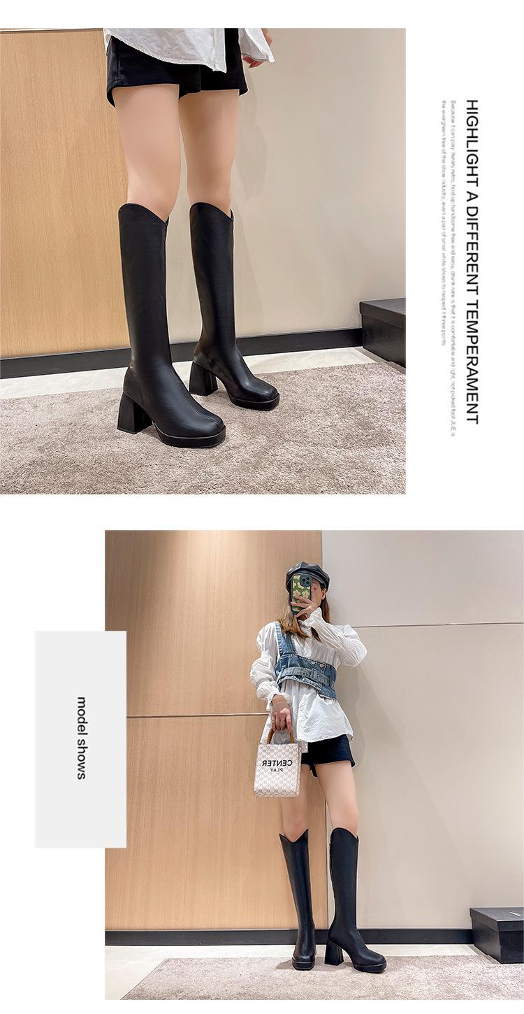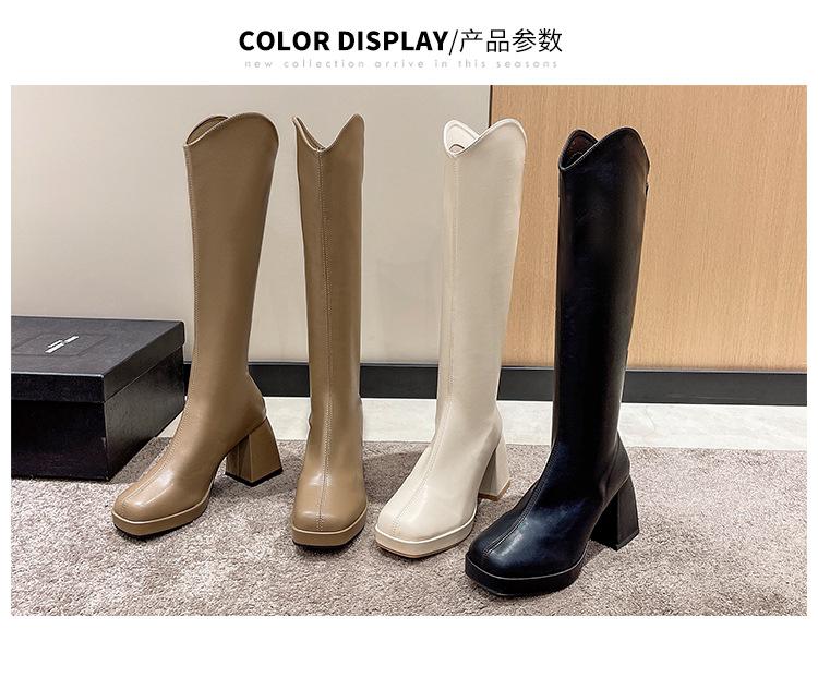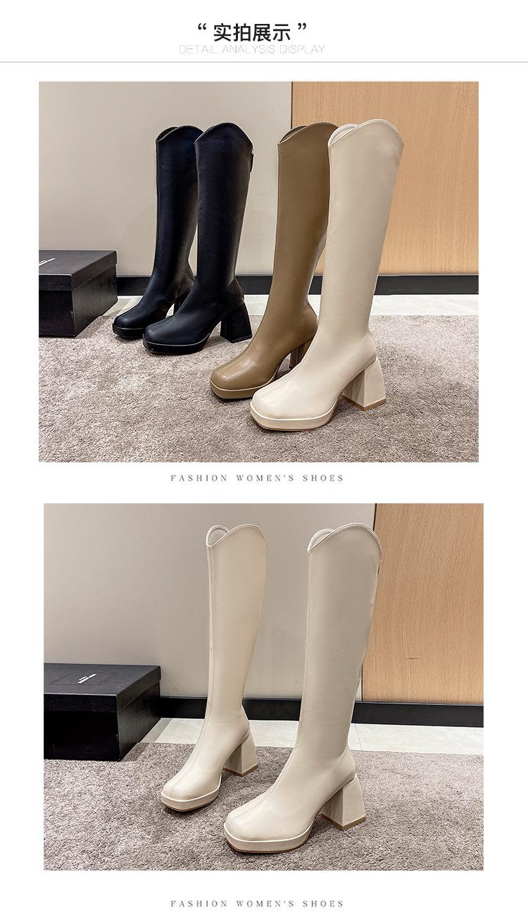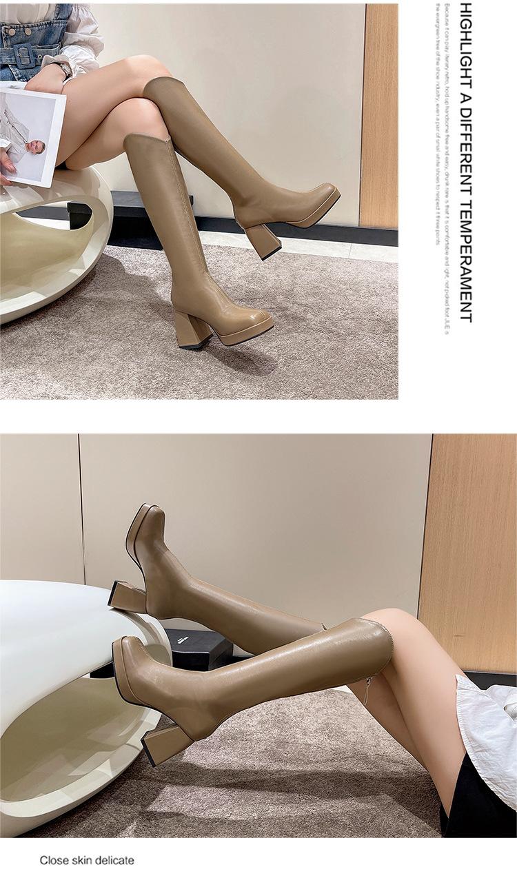 Pero botas altas hasta la rodilla para mujer nuevas de punta cuadrada tacón alto botas de caballero para otoño e invierno 2024 tacón grueso plataforma impermeable botas altas con boca en V