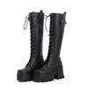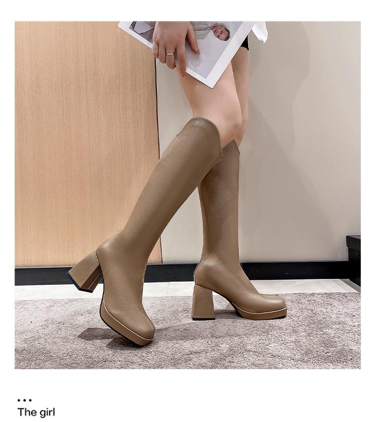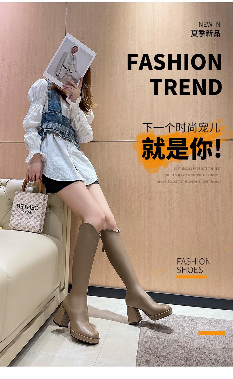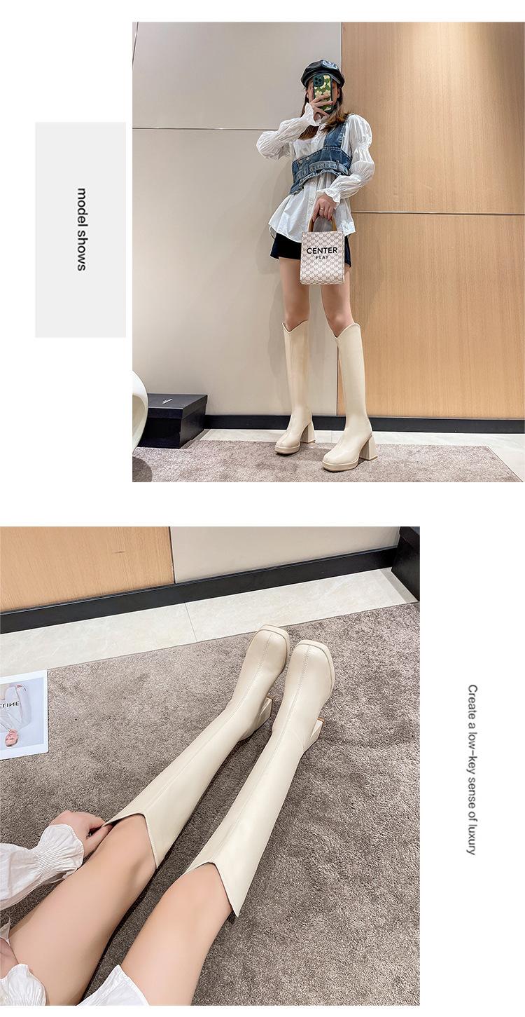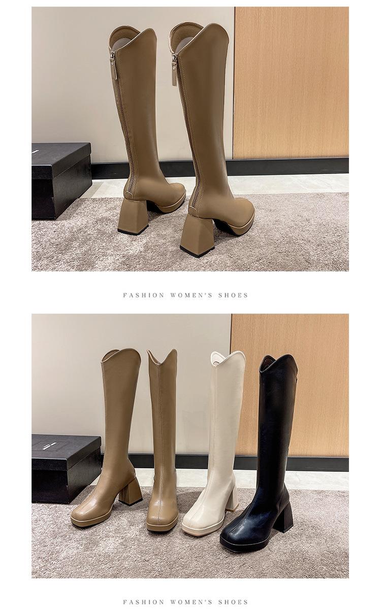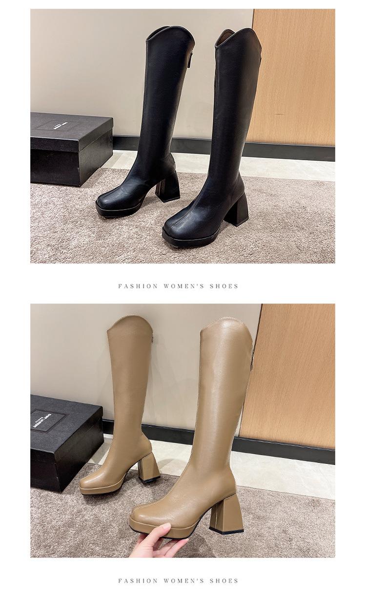 Pero botas altas hasta la rodilla para mujer nuevas de punta cuadrada tacón alto botas de caballero para otoño e invierno 2024 tacón grueso plataforma impermeable botas altas con boca en V