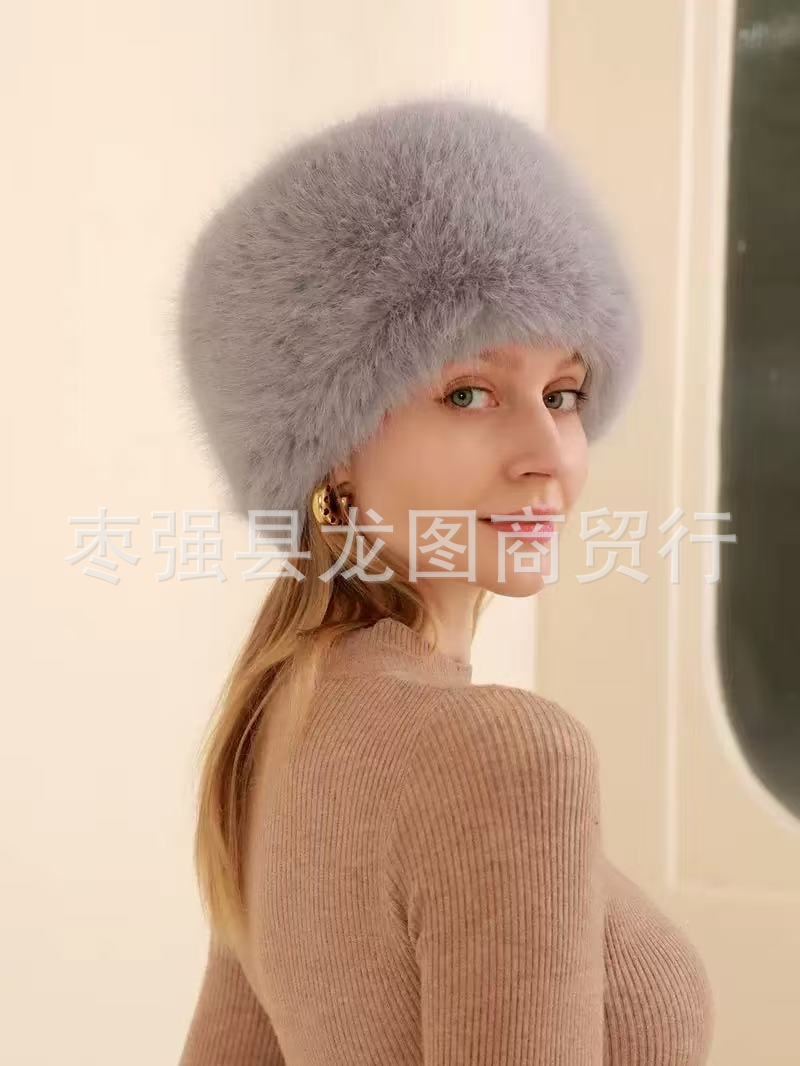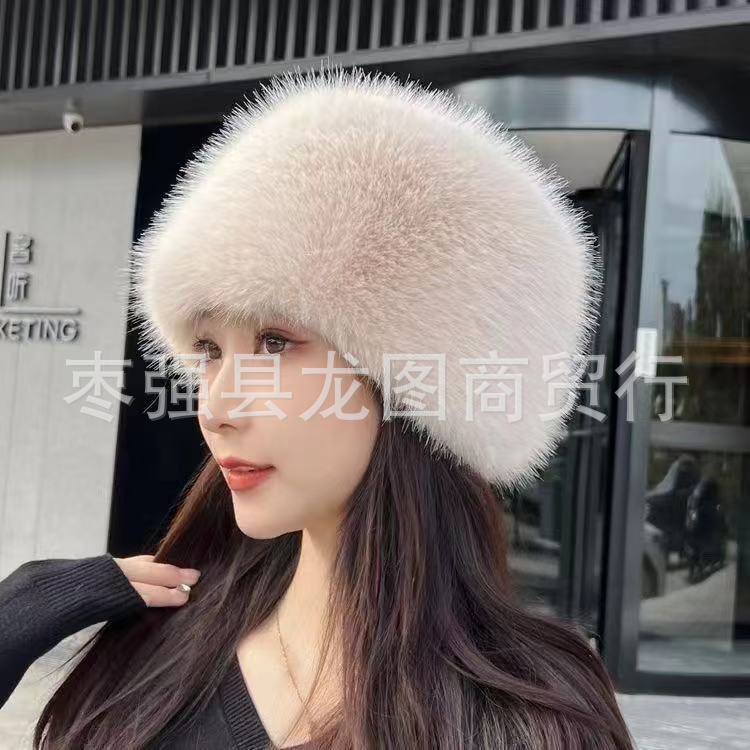 2025 nuevo sombrero plano de piel sintética de zorro, sombrero de cubo de felpa, sombrero de cúpula cálido engrosado con protección para las orejas, sombrero de hada