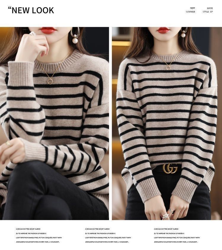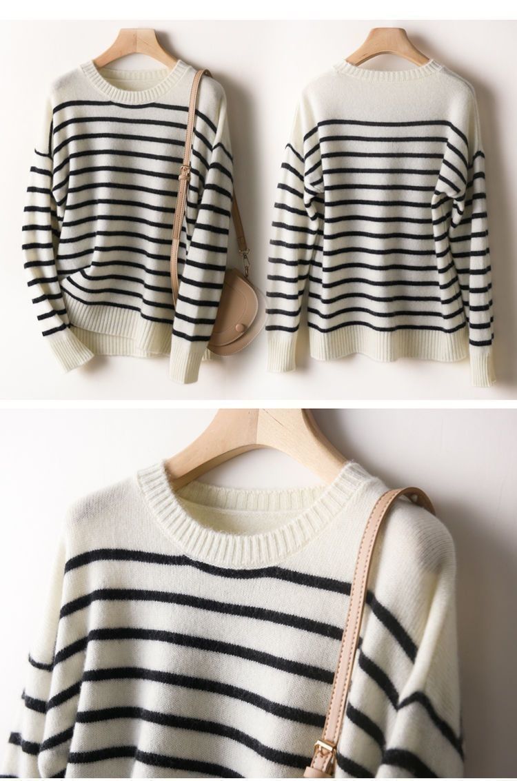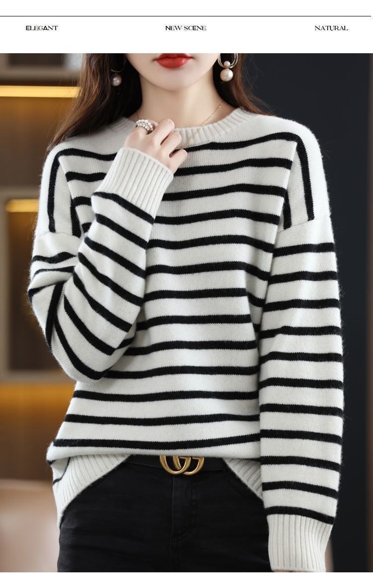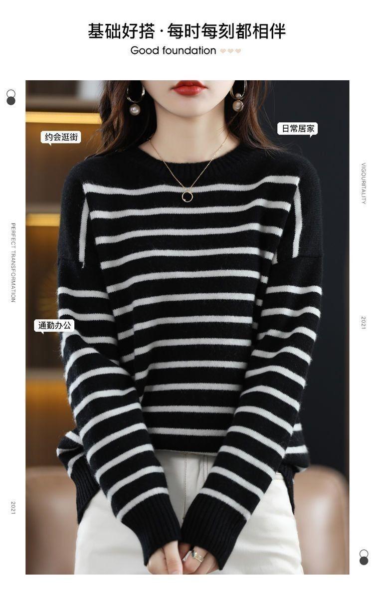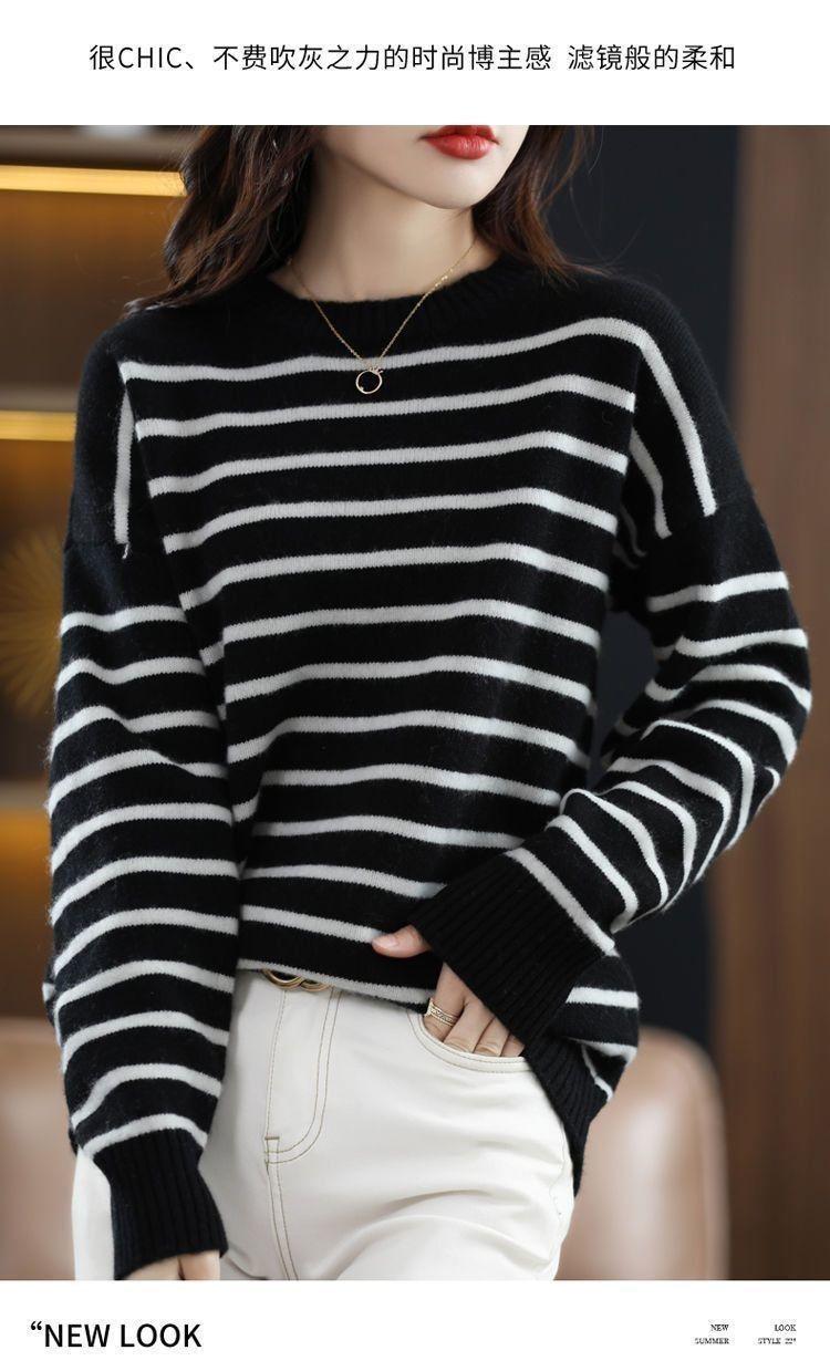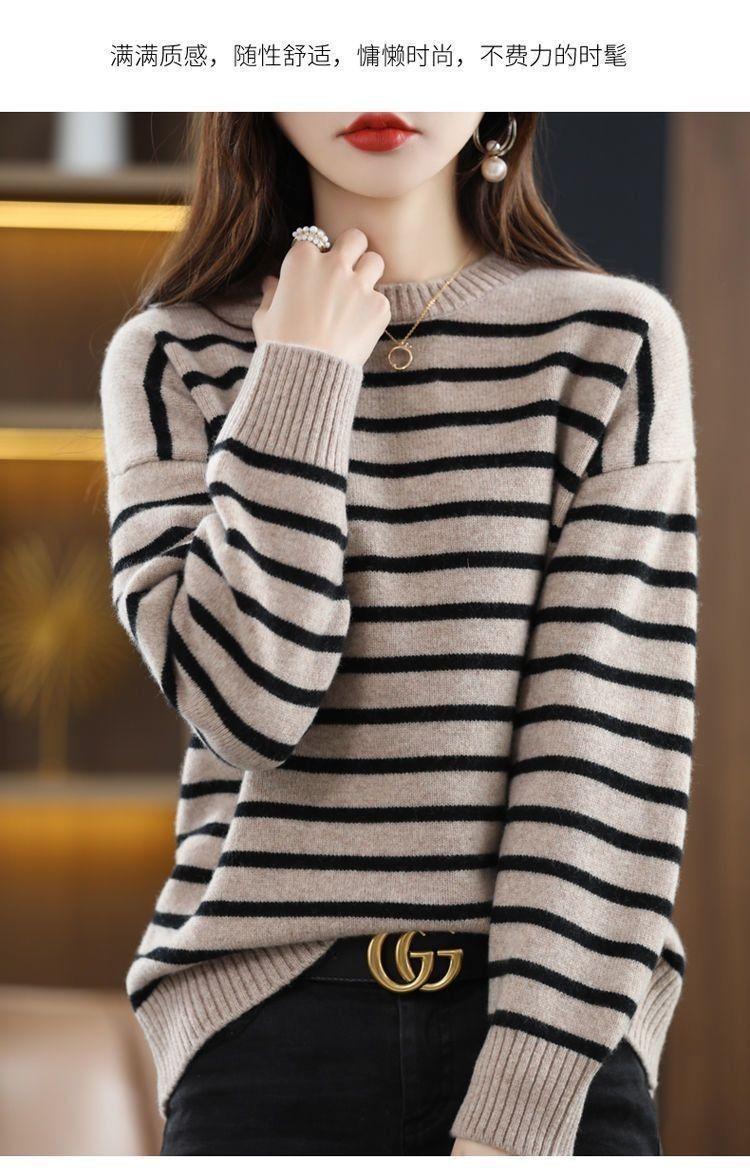 Suéter de Cuello Redondo a Rayas para Mujer Holgado Ropa Exterior Otoño e Invierno Nuevo Estilo Estilo Perezoso Top de Punto Moderno Combinable Básico