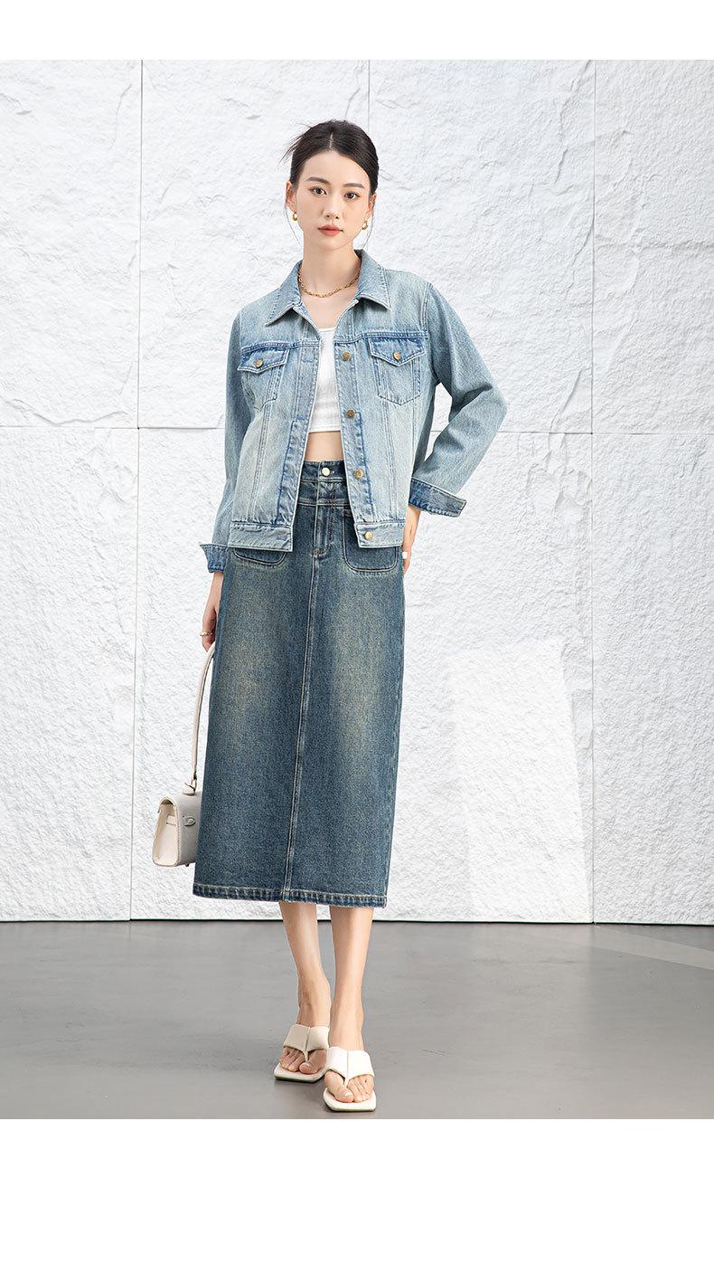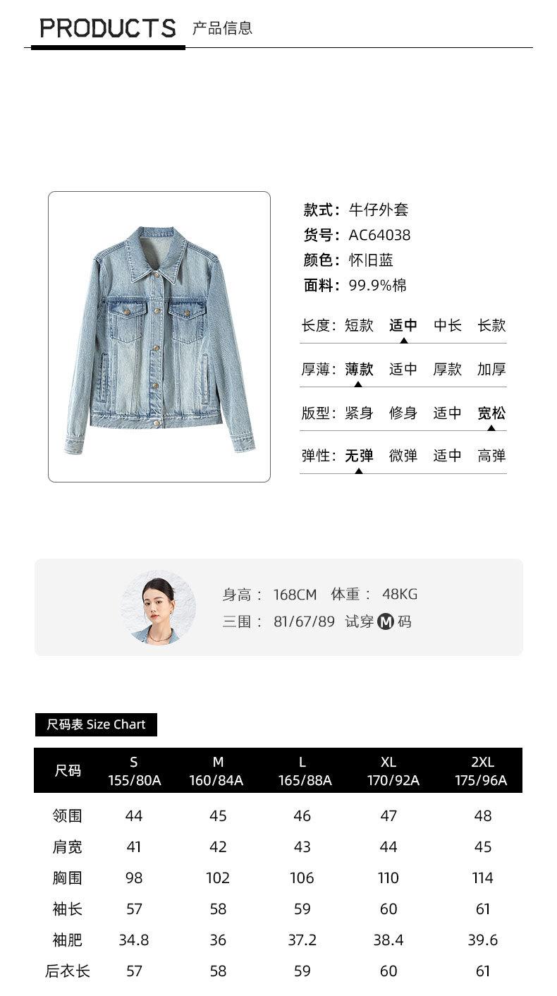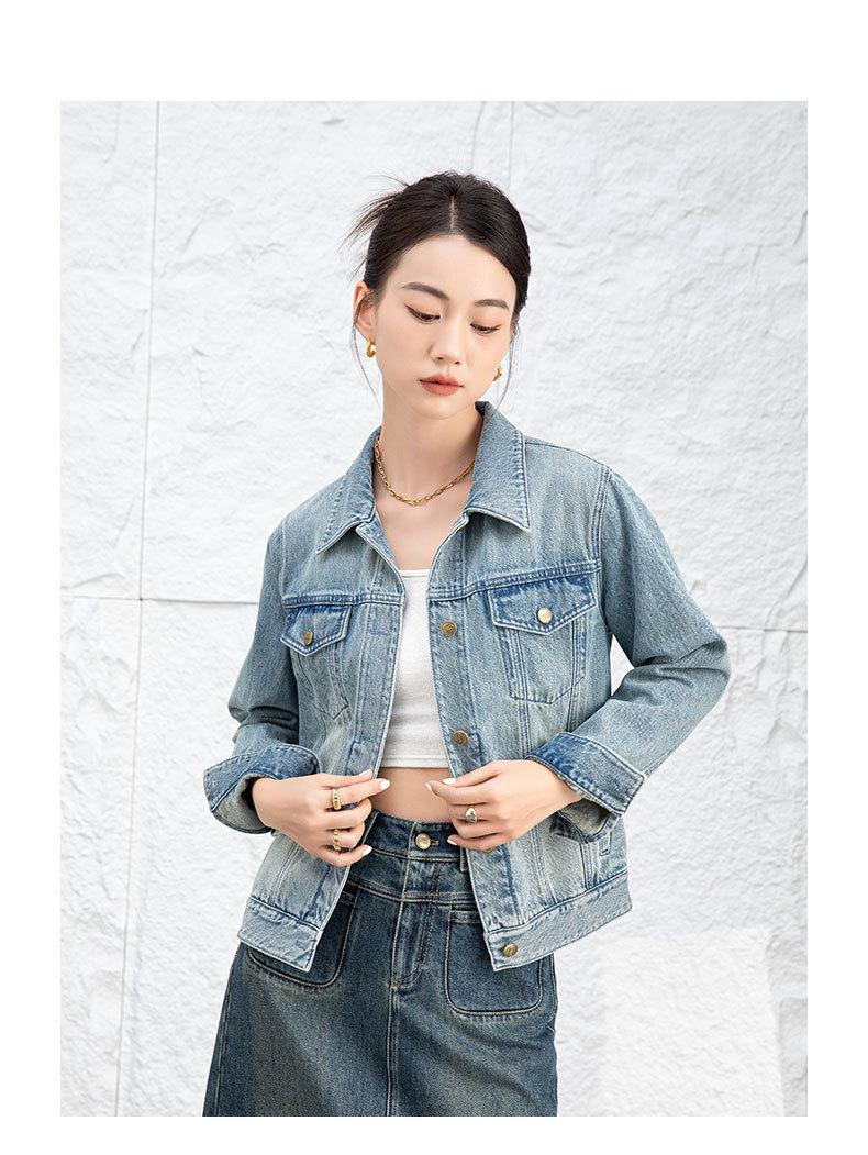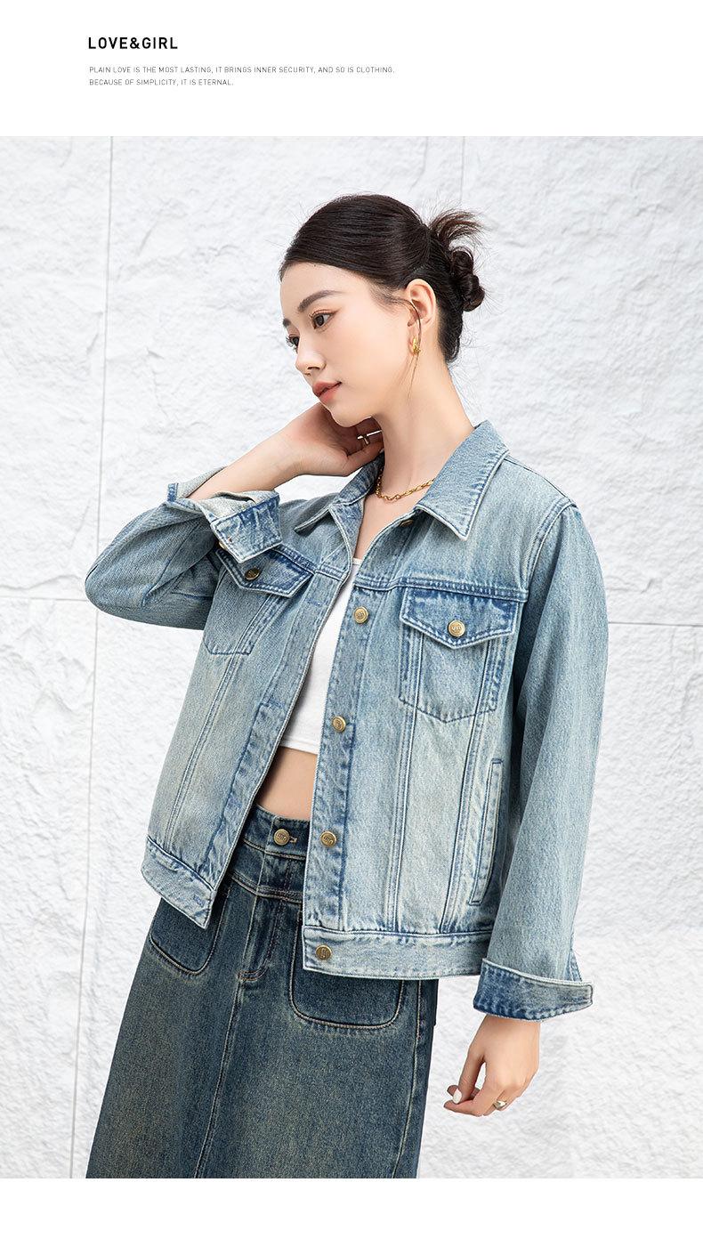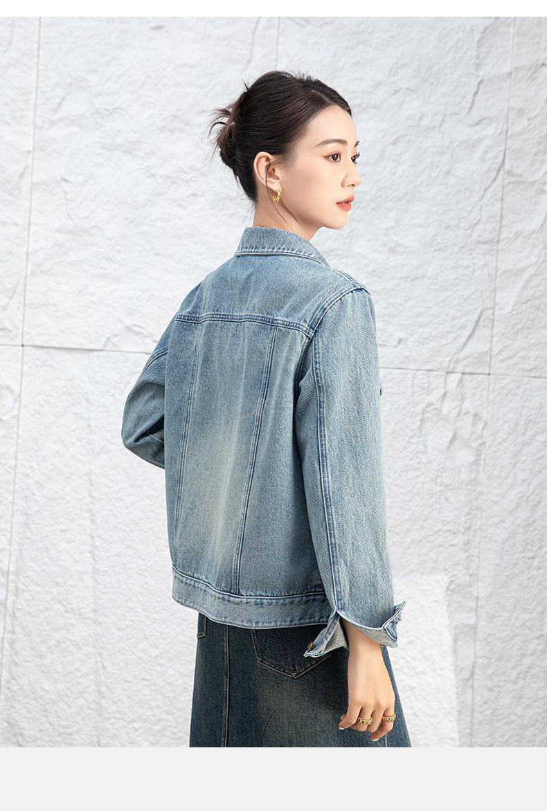 Abrigo de mezclilla casual Bai para mujer 2024 Nuevo nostálgico retro a la moda adelgazante simple casual chaqueta de mezclilla