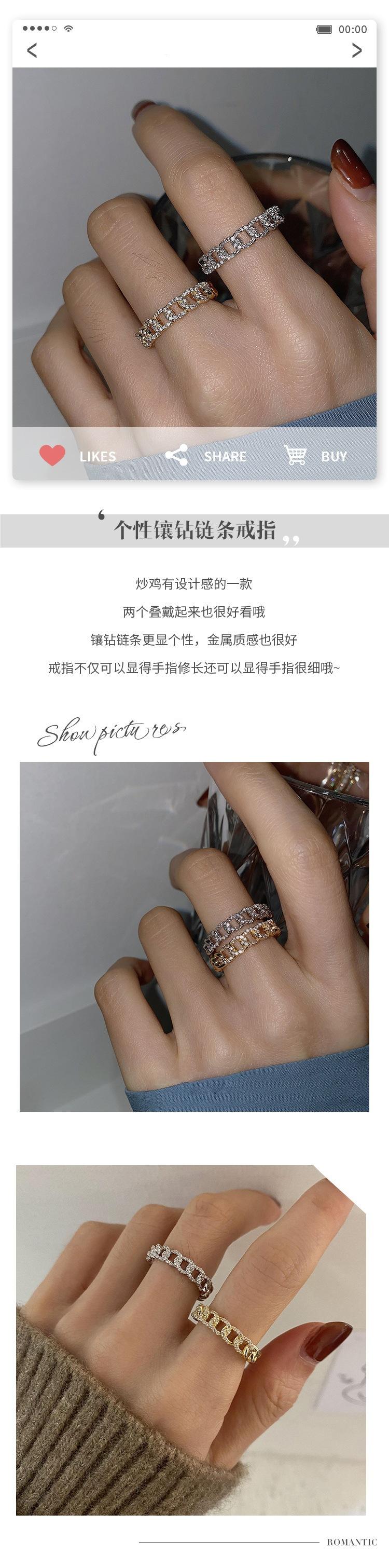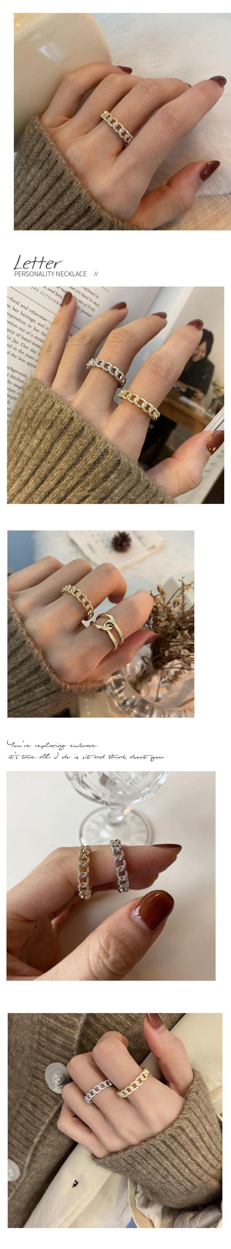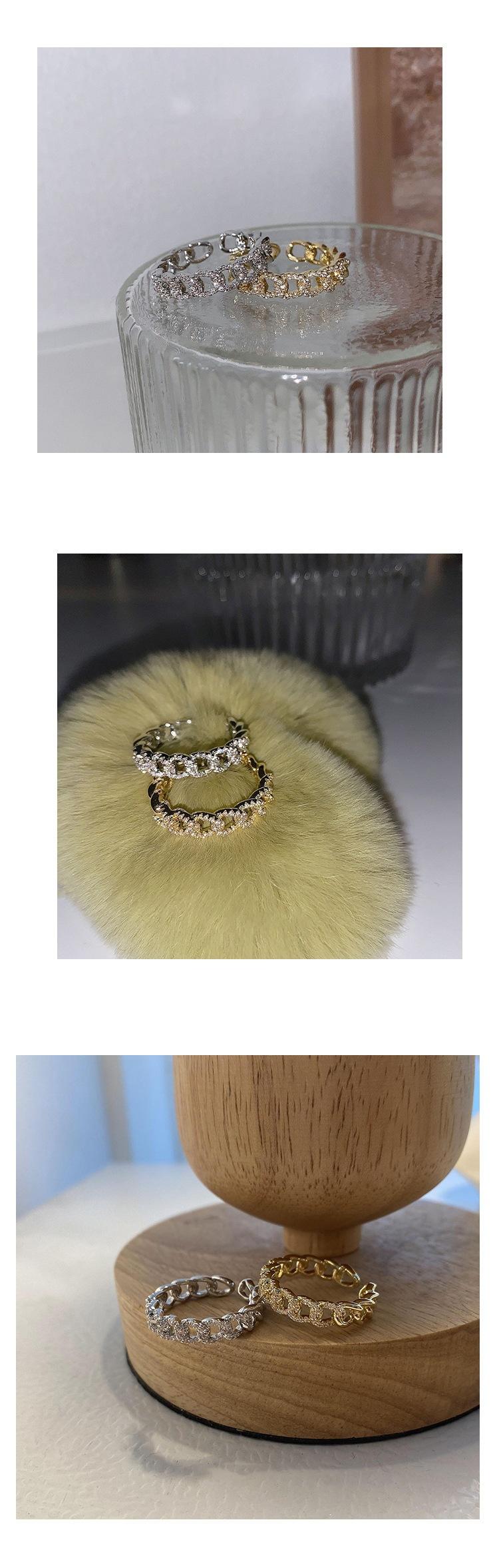 Anillo de Cadena Hueca de Plata S925 Versión Coreana para Mujer, Anillo Abierto Micro-Incrustado con Temperamento de Moda Vintage, Anillo de Dedo Índice Creativo Trendy