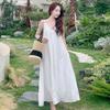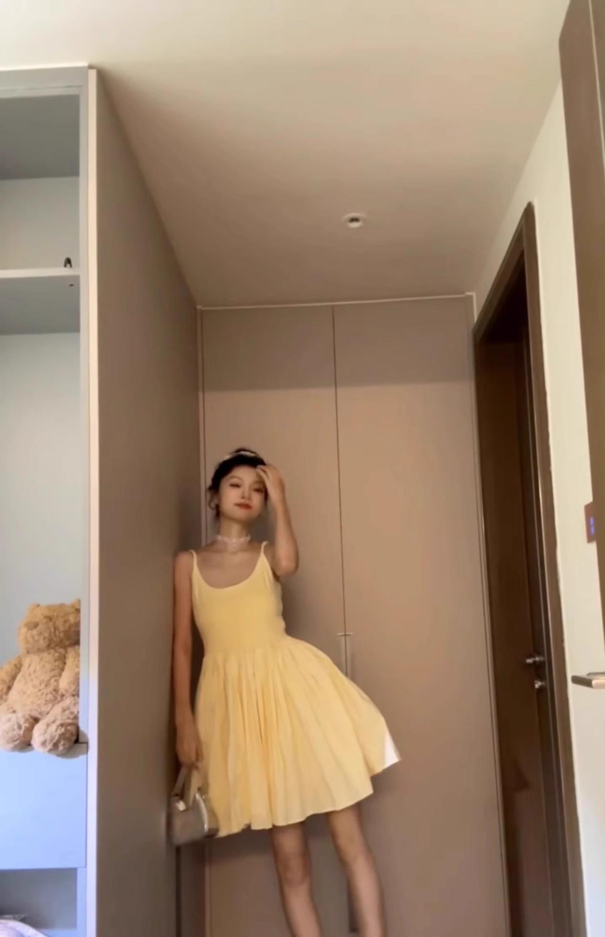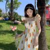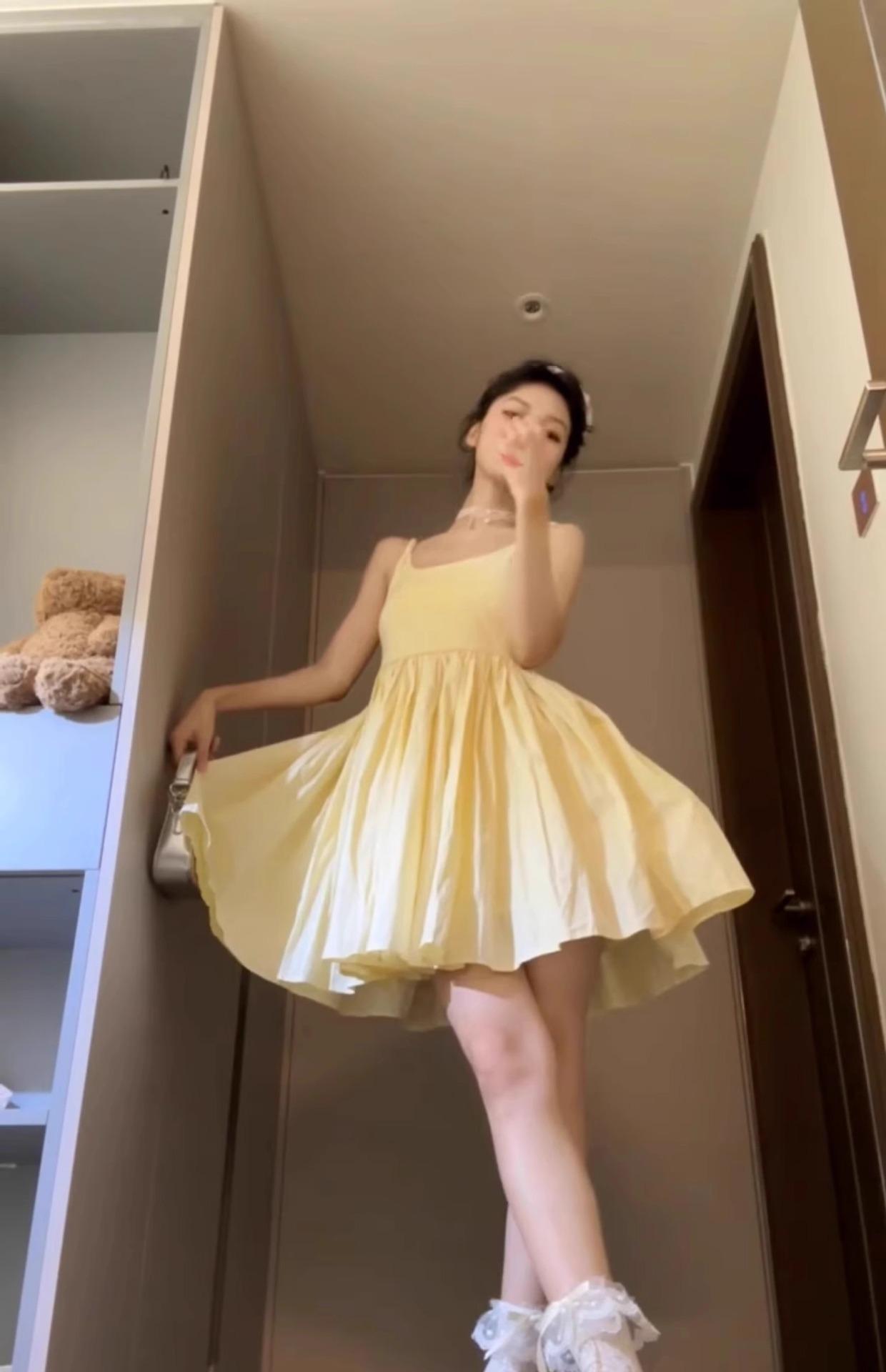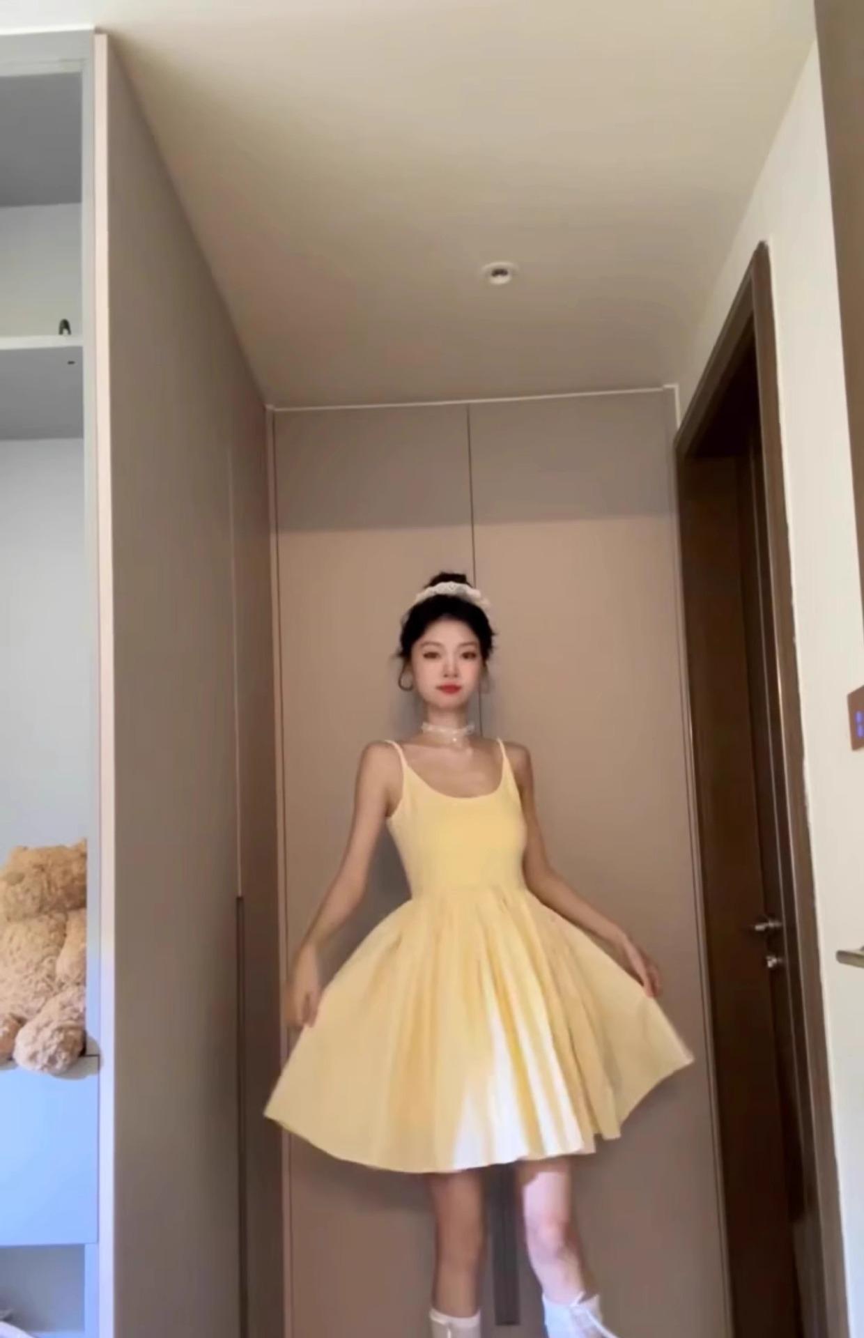 Vestido Amarillo de Tirantes Finos Estilo Francés para Mujer, Verano 2025 Nuevo Petite Vacación de Playa Elegante Vestido Corto Abullonado