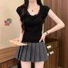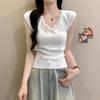 Verano Nuevo Diseño Nicho Estilo Lujuria Pura Chic y Hermoso Estilo Francés Lazo Versátil Top Corto para Mujer