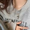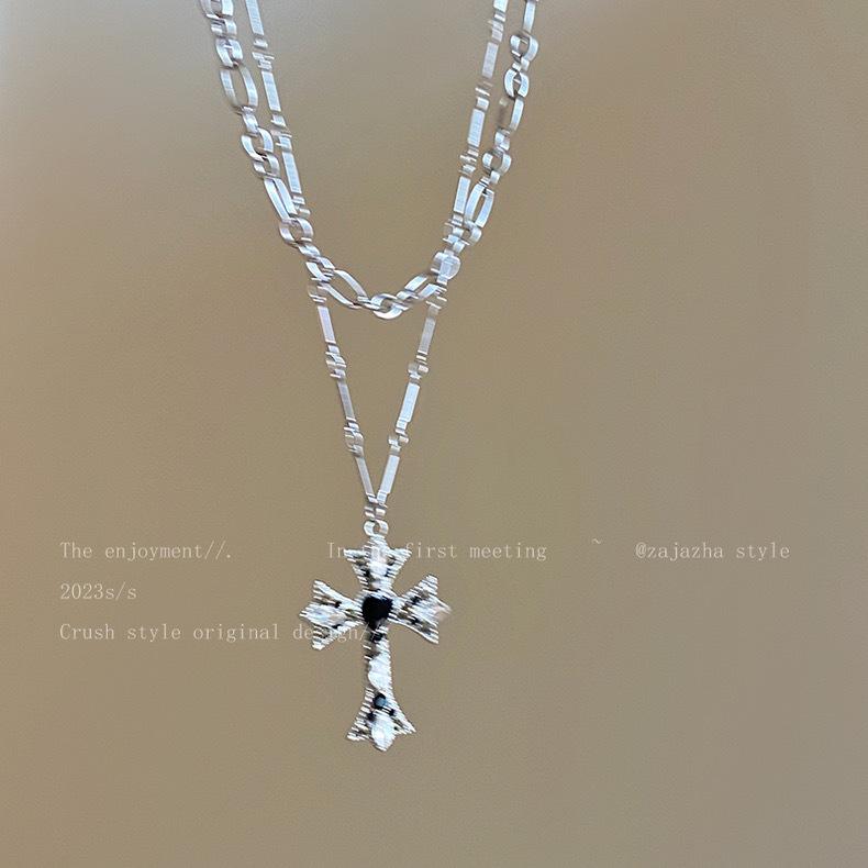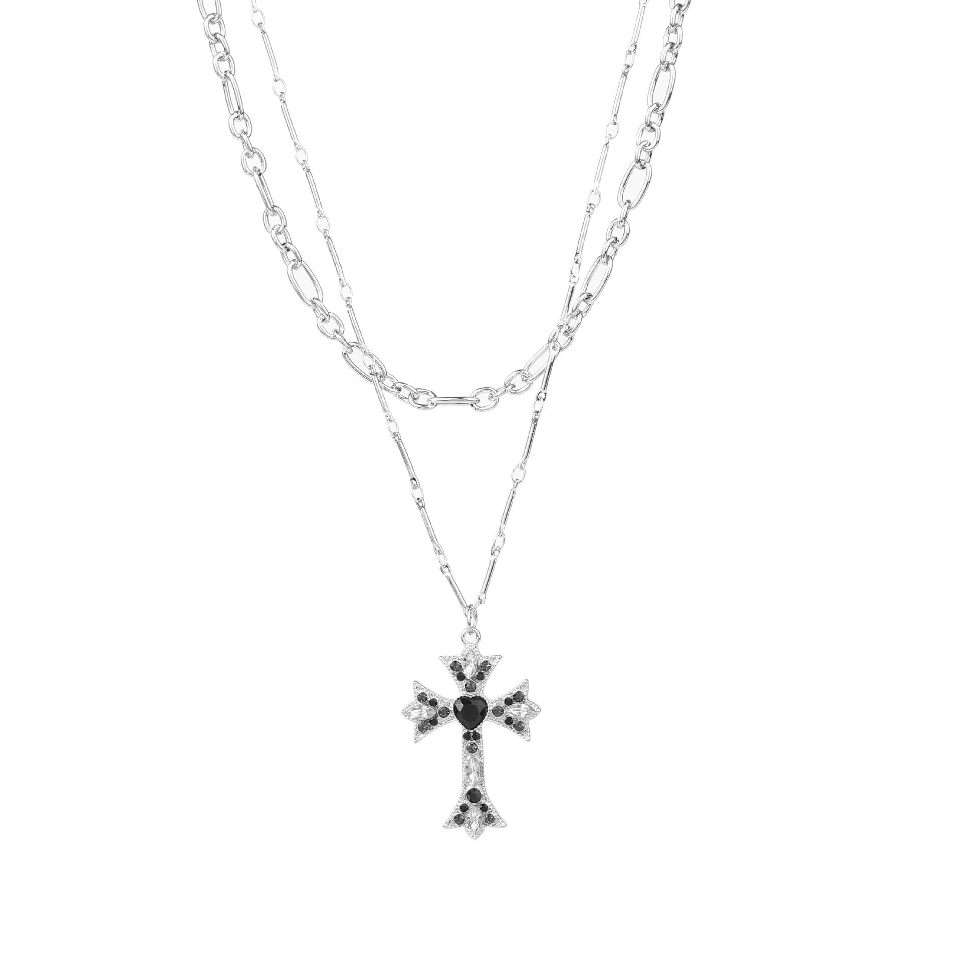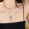 Collar de Cadena Clavicular Europea y Americana de Hip-Hop con Colgante de Cruz de Diamantes de Doble Capa con Borla para Mujer, Estilo Oscuro Retro Personalizado Versátil