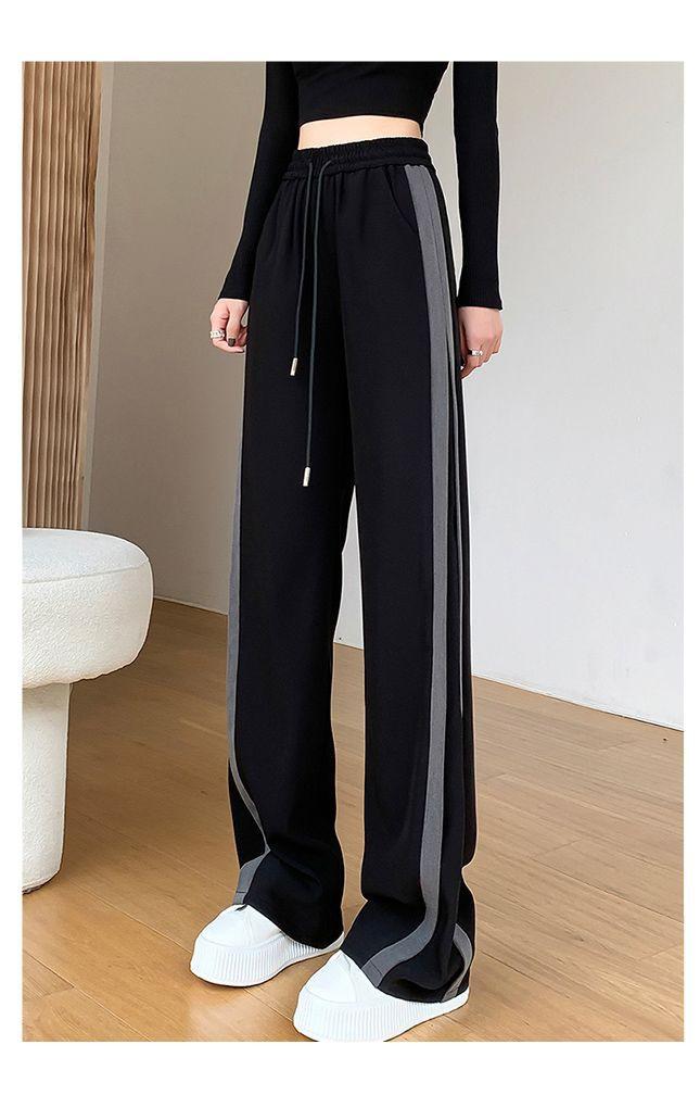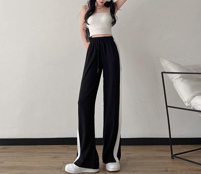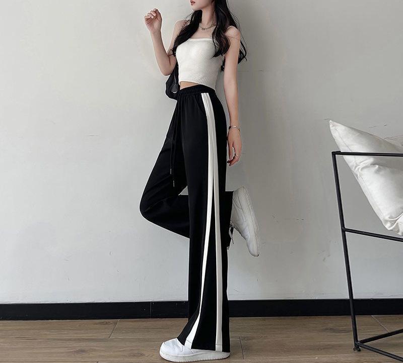 Pantalones de Pierna Ancha para Mujer Primavera y Verano Estilo Coreano Talla Grande Aspecto Delgado Pantalones de Pierna Recta Sueltos Casuales Pequeño Estudiante Deportes Pantalones de Moda