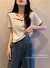 Verão Novo Suéter Vintage com Gola Polo Estilo Coreano Design Casual Fino Manga Curta Combina com Tudo Cor Sólida Top