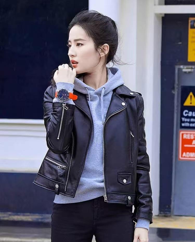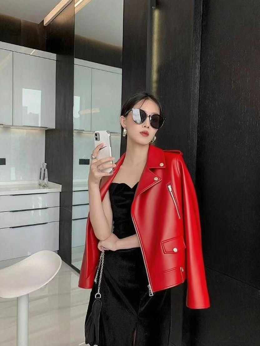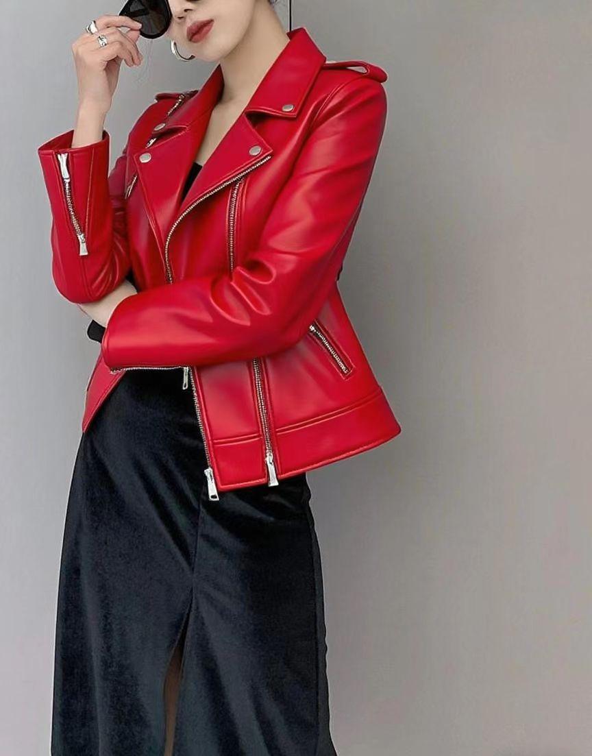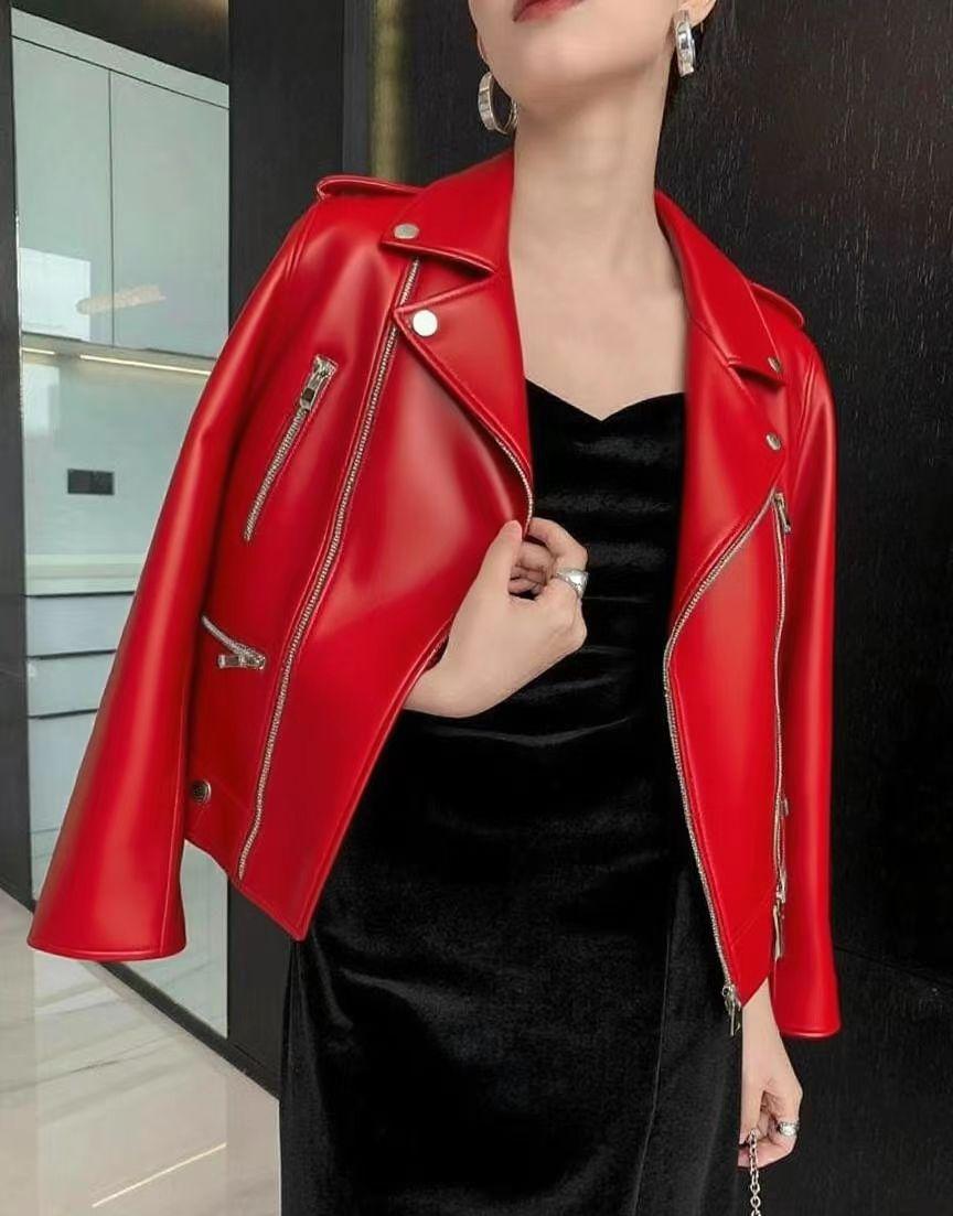 Chaqueta de Cuero Negra Retro Estilo Americano Abrigo para Mujer Otoño e Invierno Chaqueta Gruesa de Cuero PU Top Sensación de Alta Gama Traje Holgado de Biker